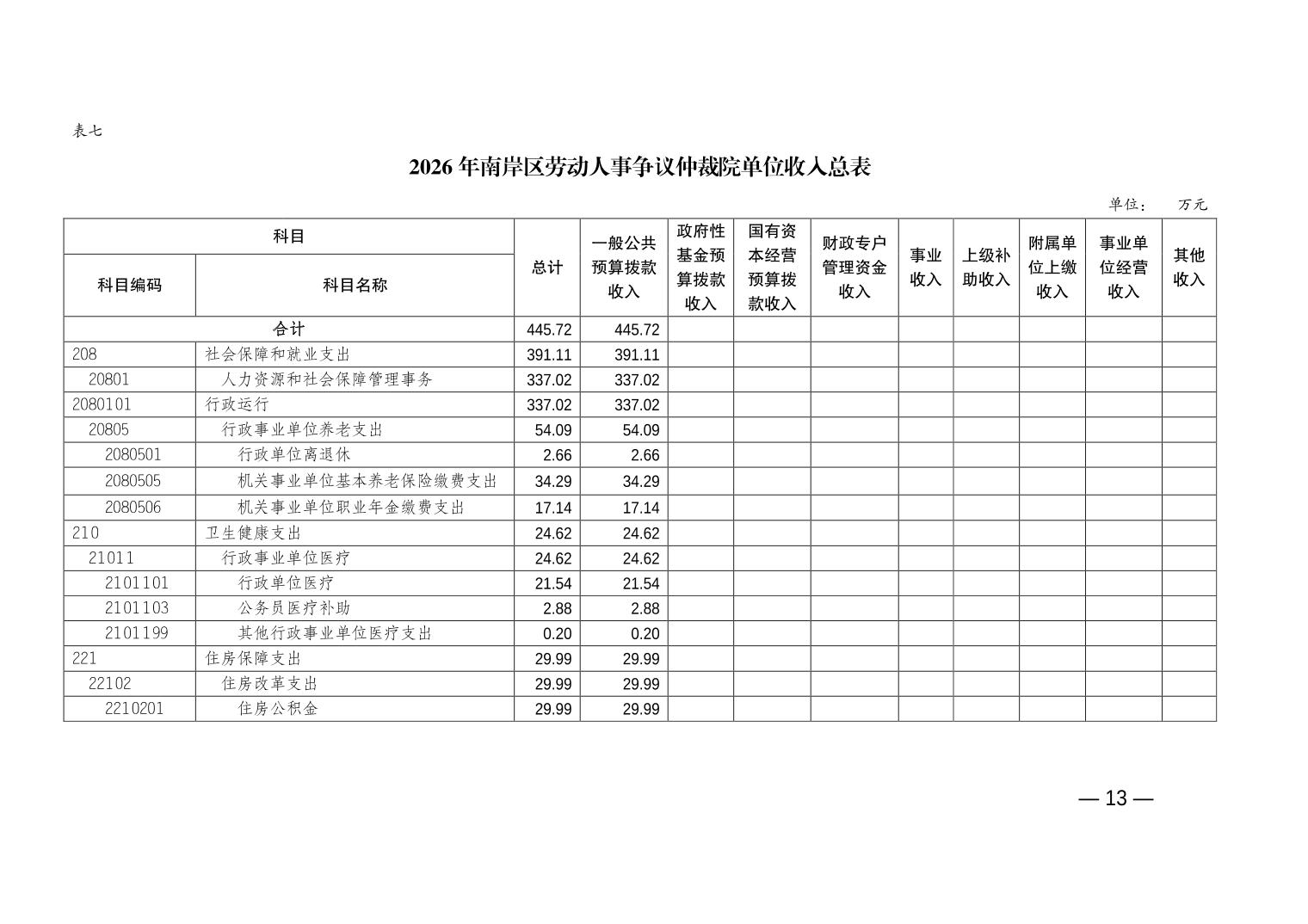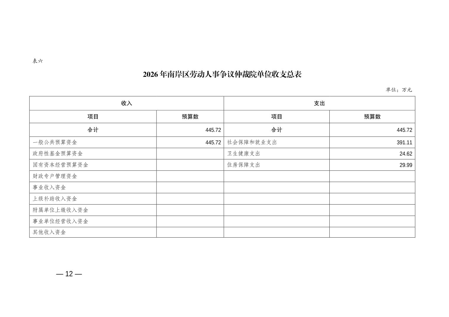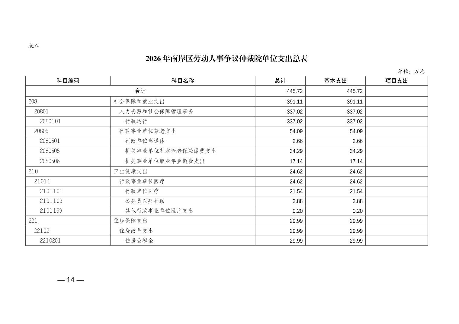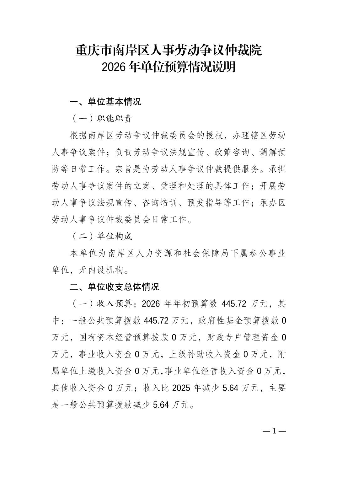 重庆市南岸区人事劳动争议仲裁院2026年单位预算情况说明