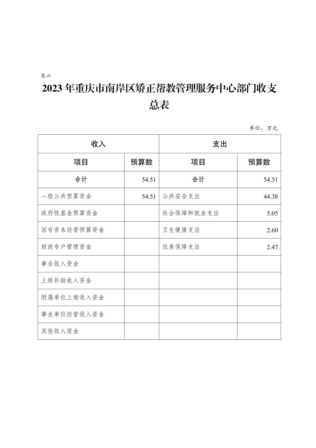 重庆市南岸区矫正帮教管理服务中心2023年部门预算公开