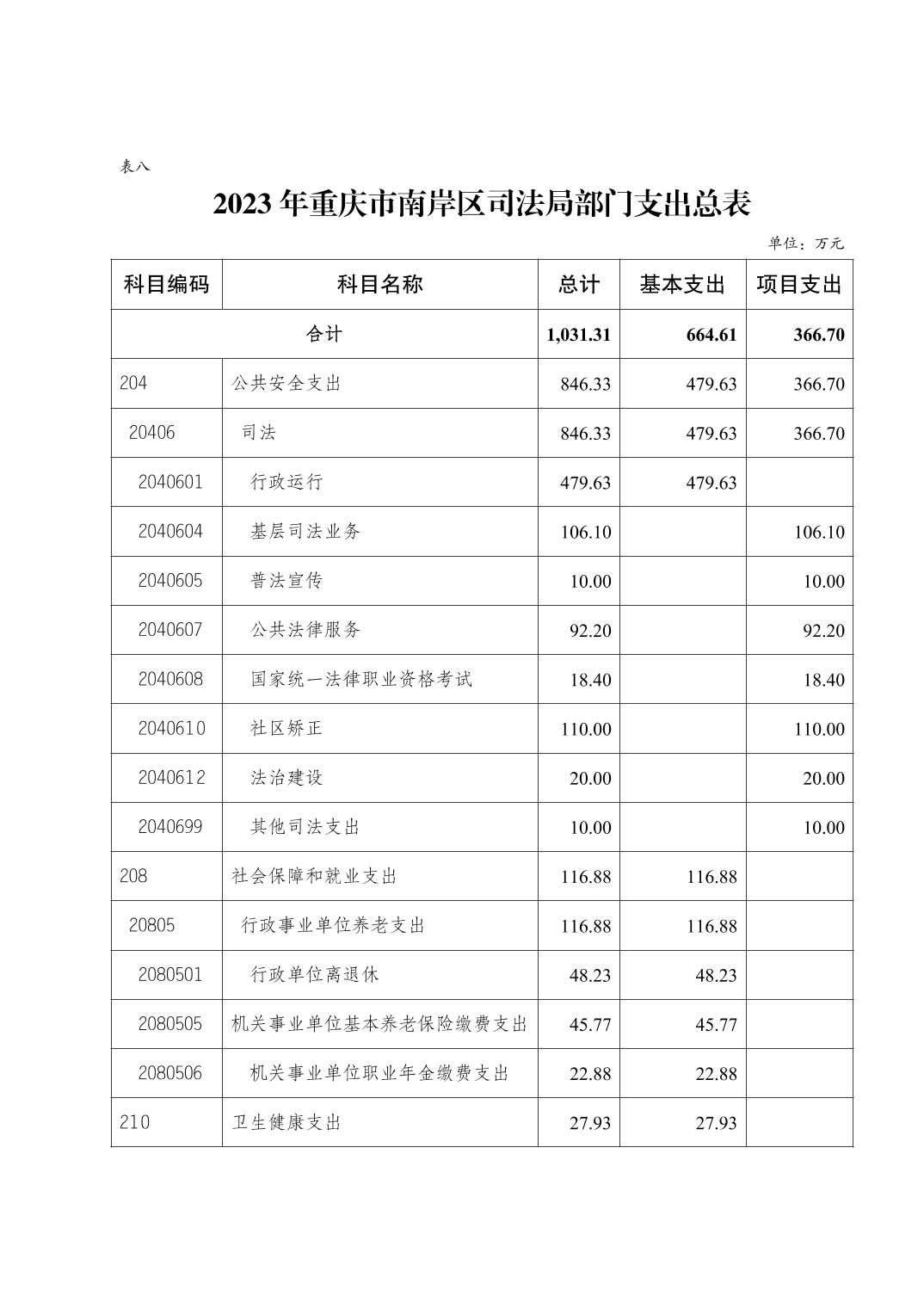 重庆市南岸区司法局(本级)2023年部门预算公开