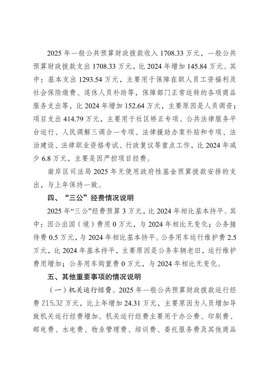 重庆市南岸区司法局(本级)2025年单位预算情况说明