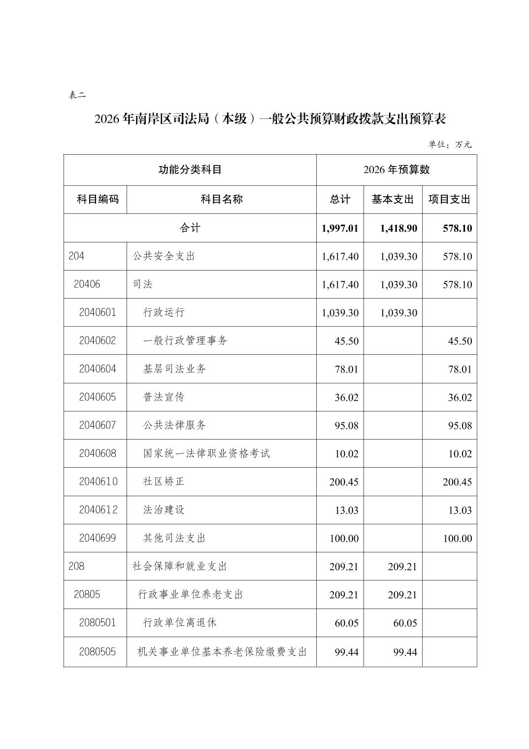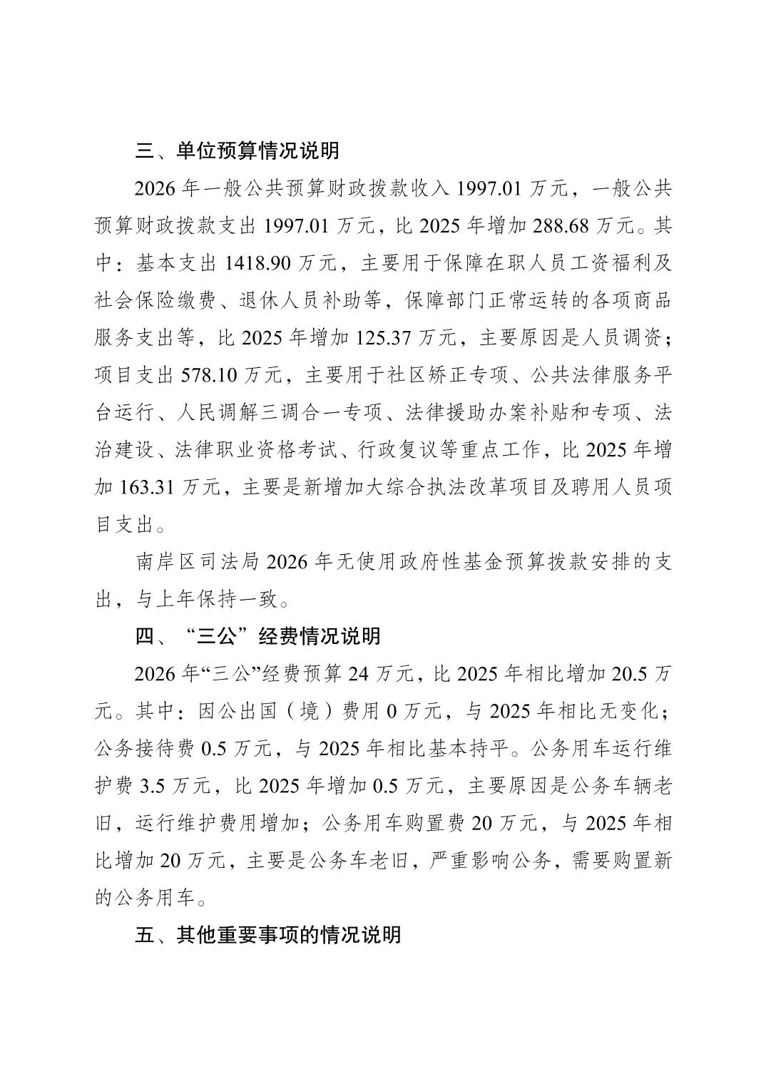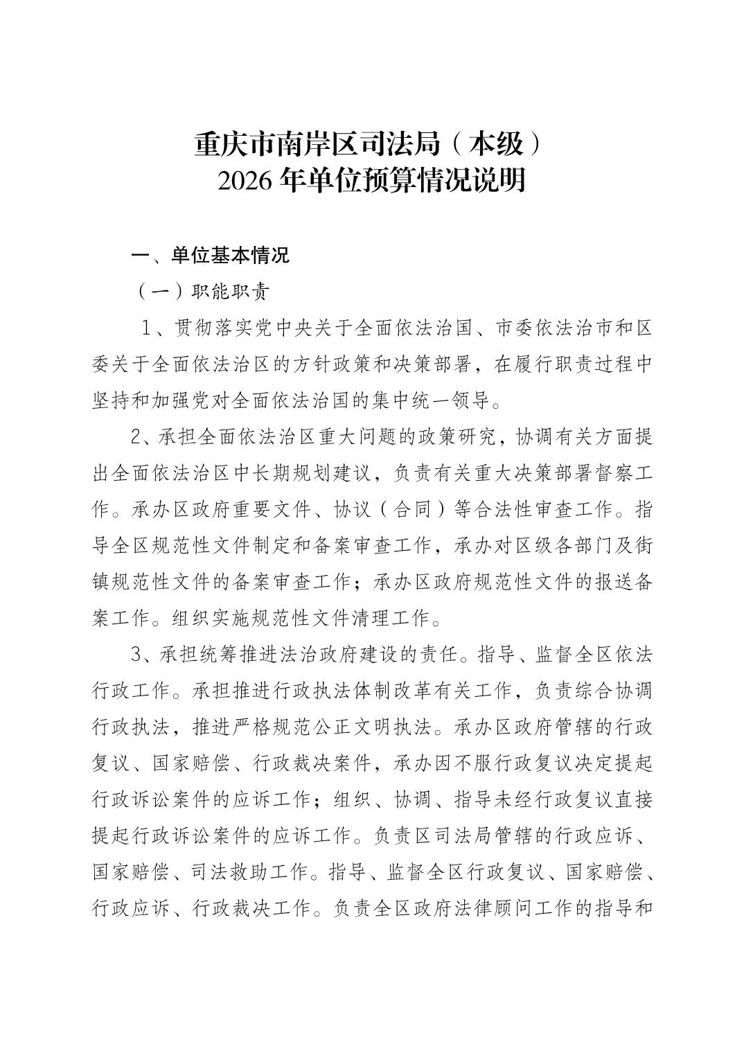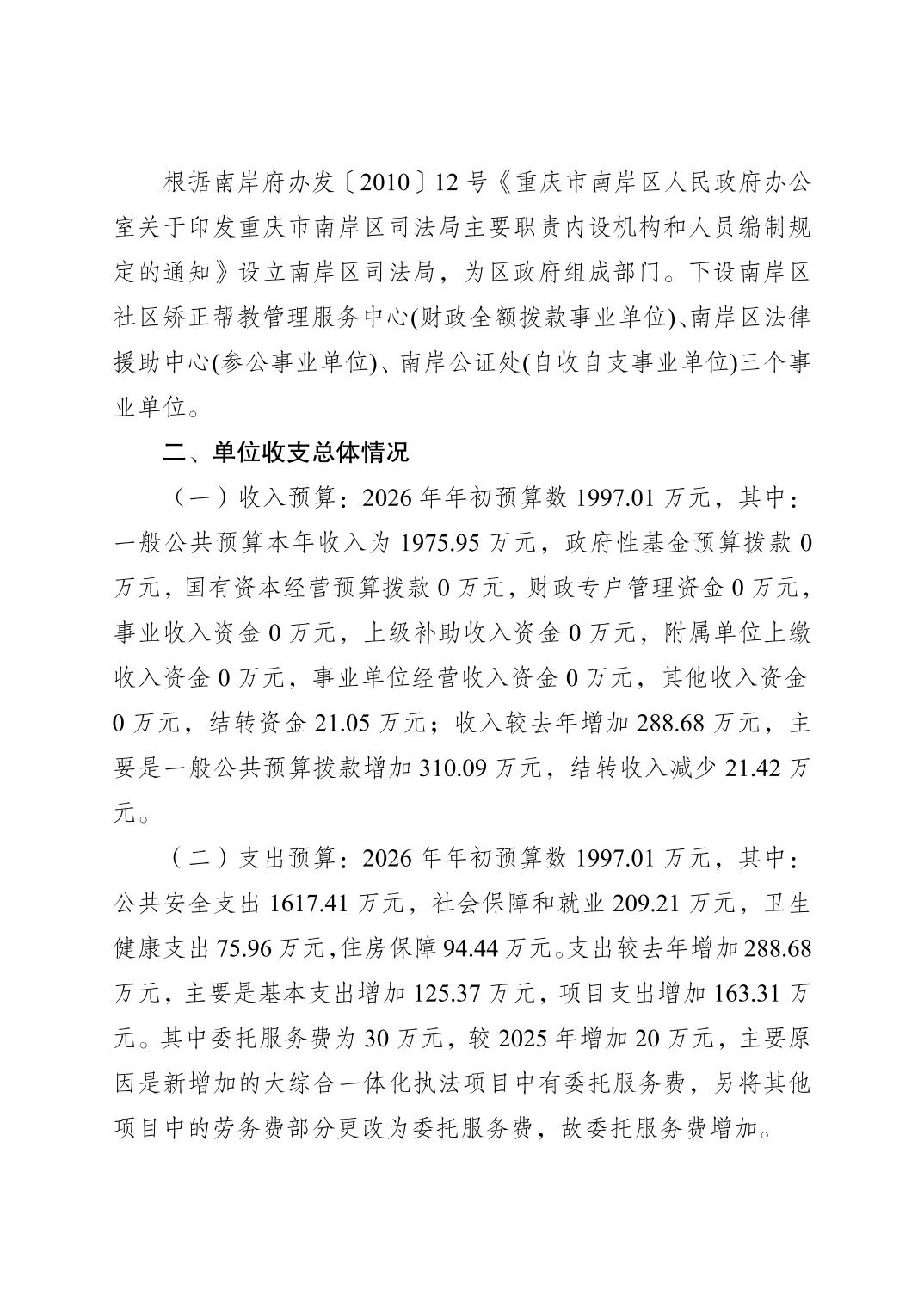 重庆市南岸区司法局(本级)2026年单位预算情况说明