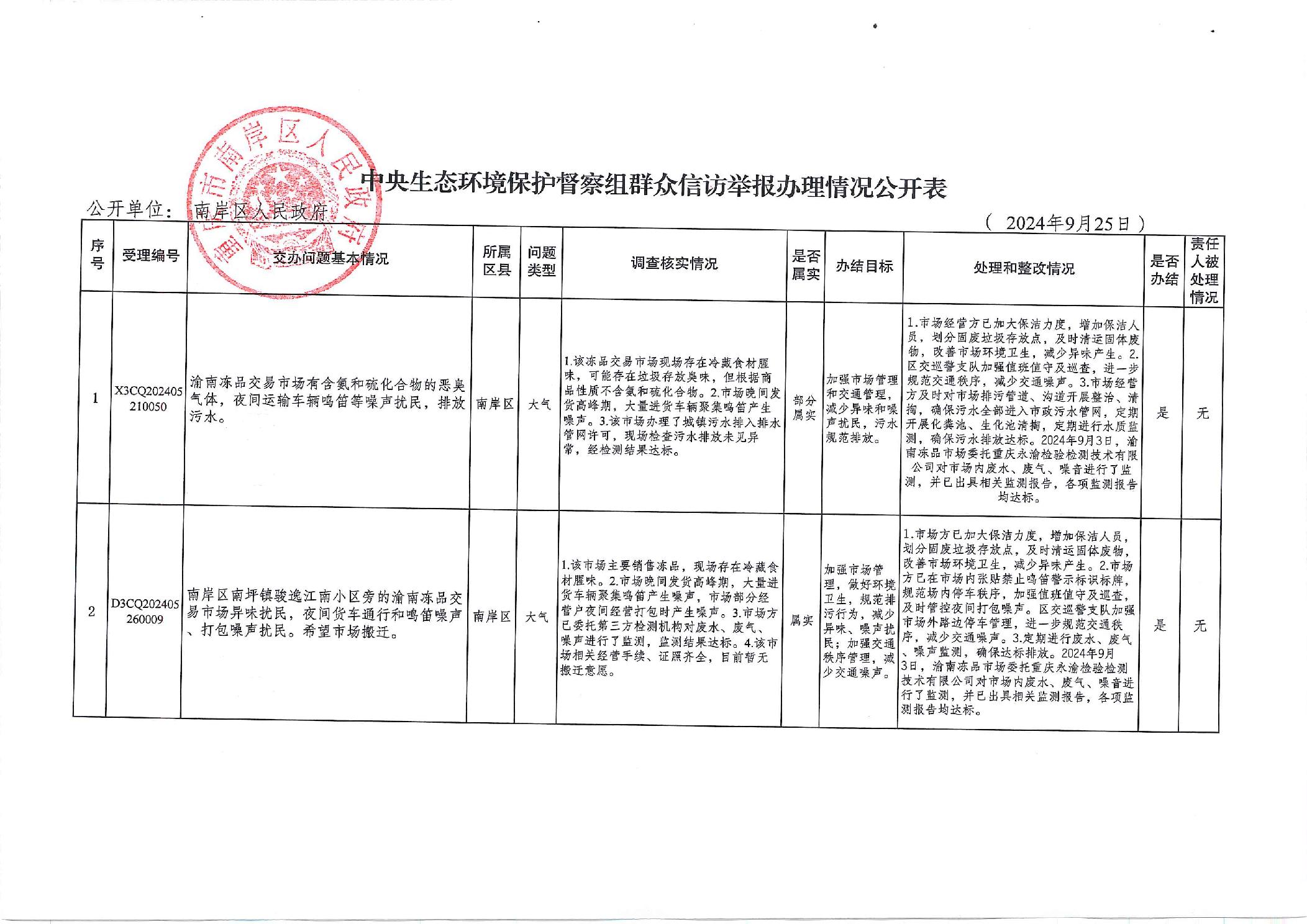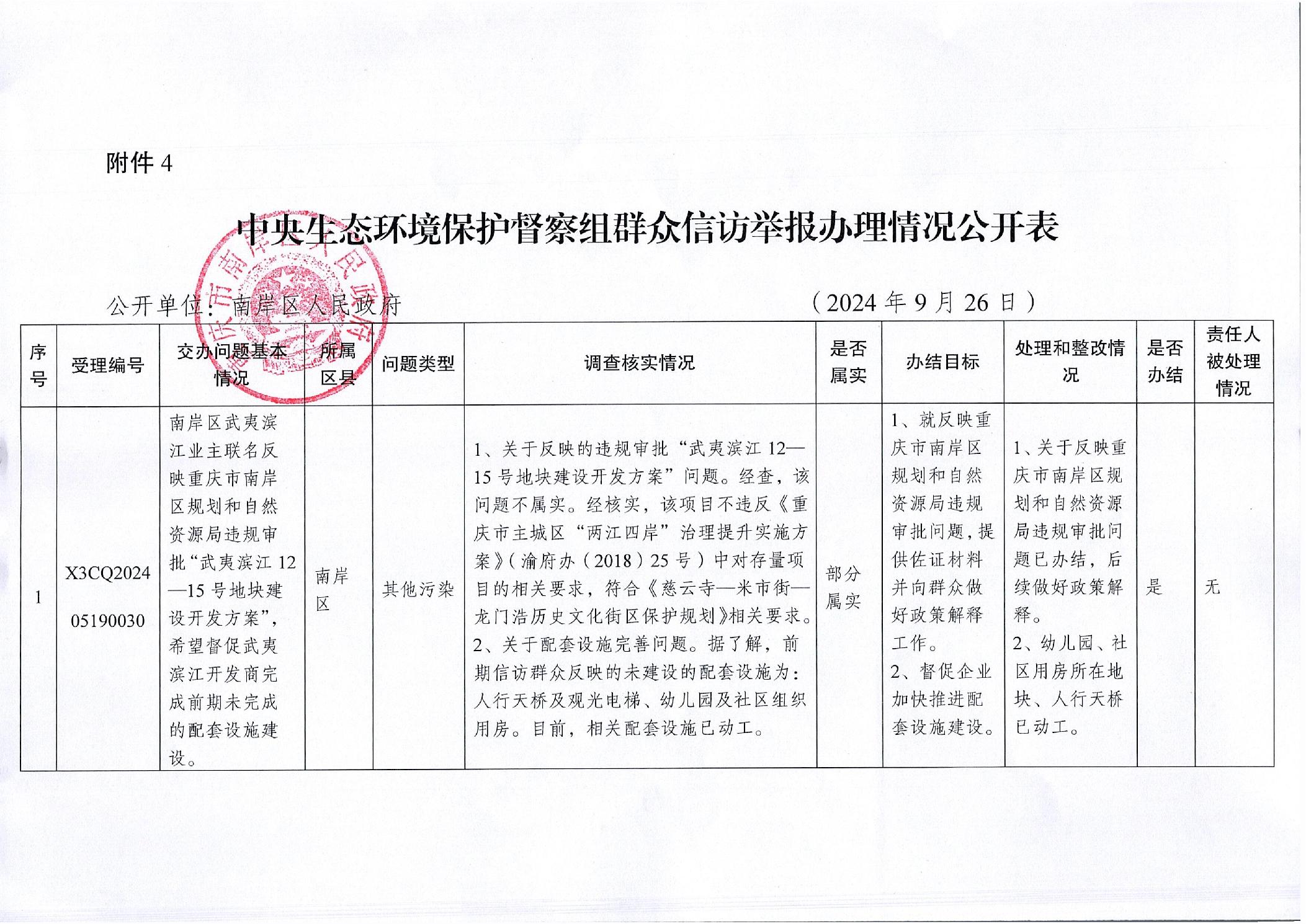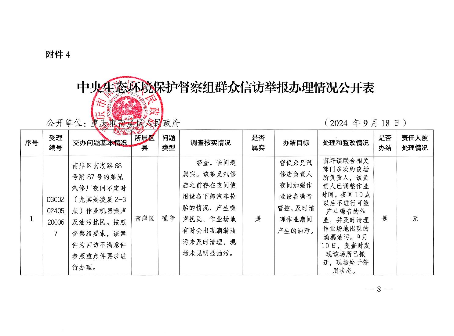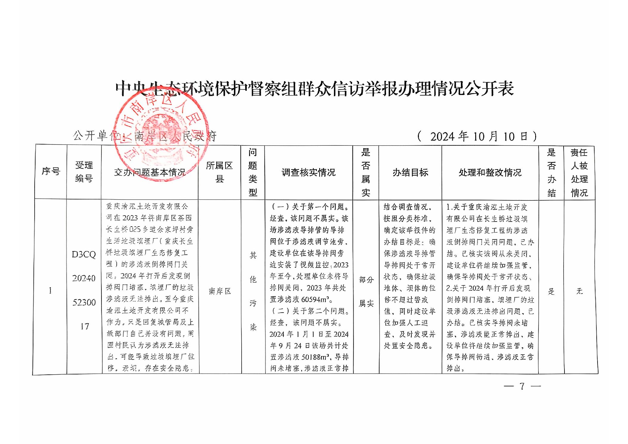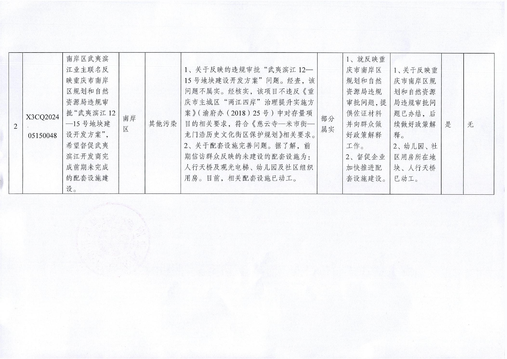 中央生态环境保护督察组群众信访举报办理情况公开表(X3CQ202405280024、X3CQ202405270012、X3CQ202405150048、X3CQ202405210050、D3CQ202406080032、D3CQ202405260010、D3CQ202405260009、D3CQ202405260008、D3CQ202405260006、D3CQ202405200067、D3CQ202405230017、X3CQ202405190030)