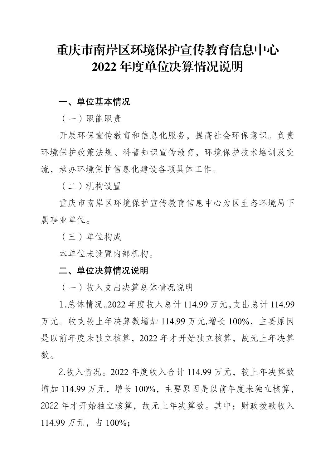 重庆市南岸区环境保护宣传教育信息中心2022年度单位决算情况说明