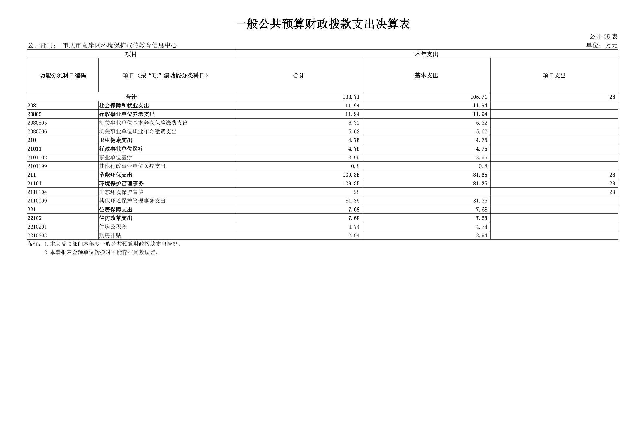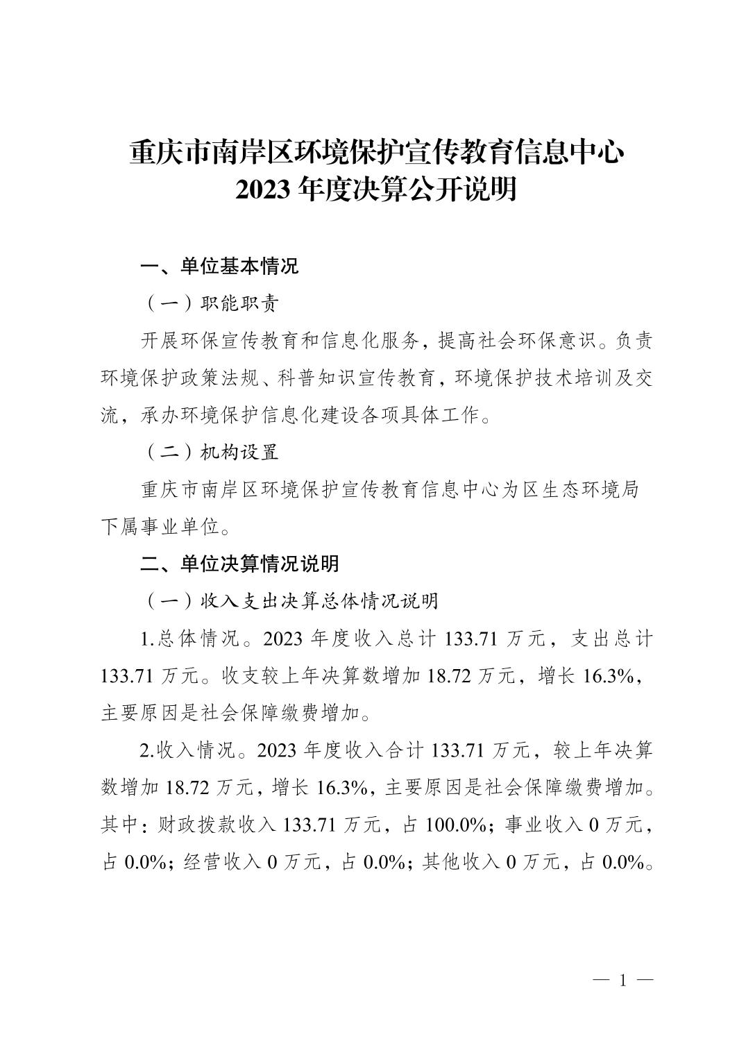 重庆市南岸区环境保护宣传教育信息中心2023年度决算公开说明