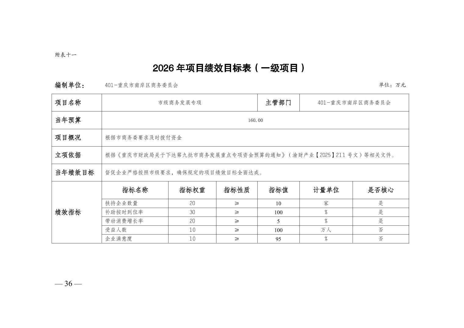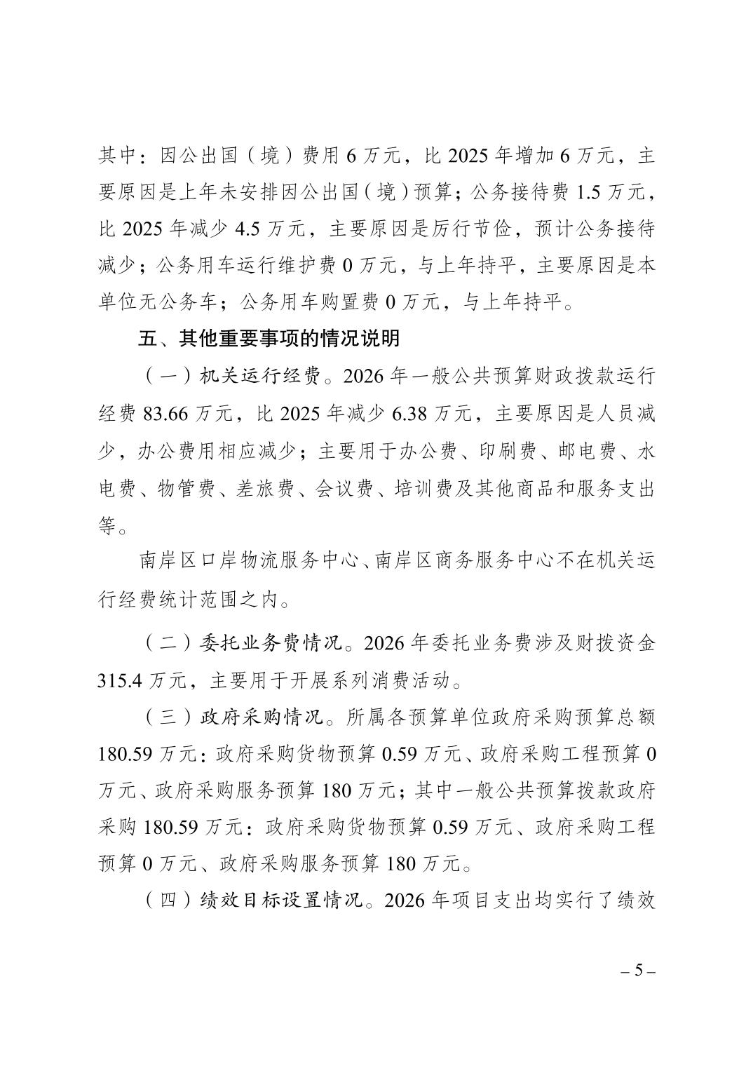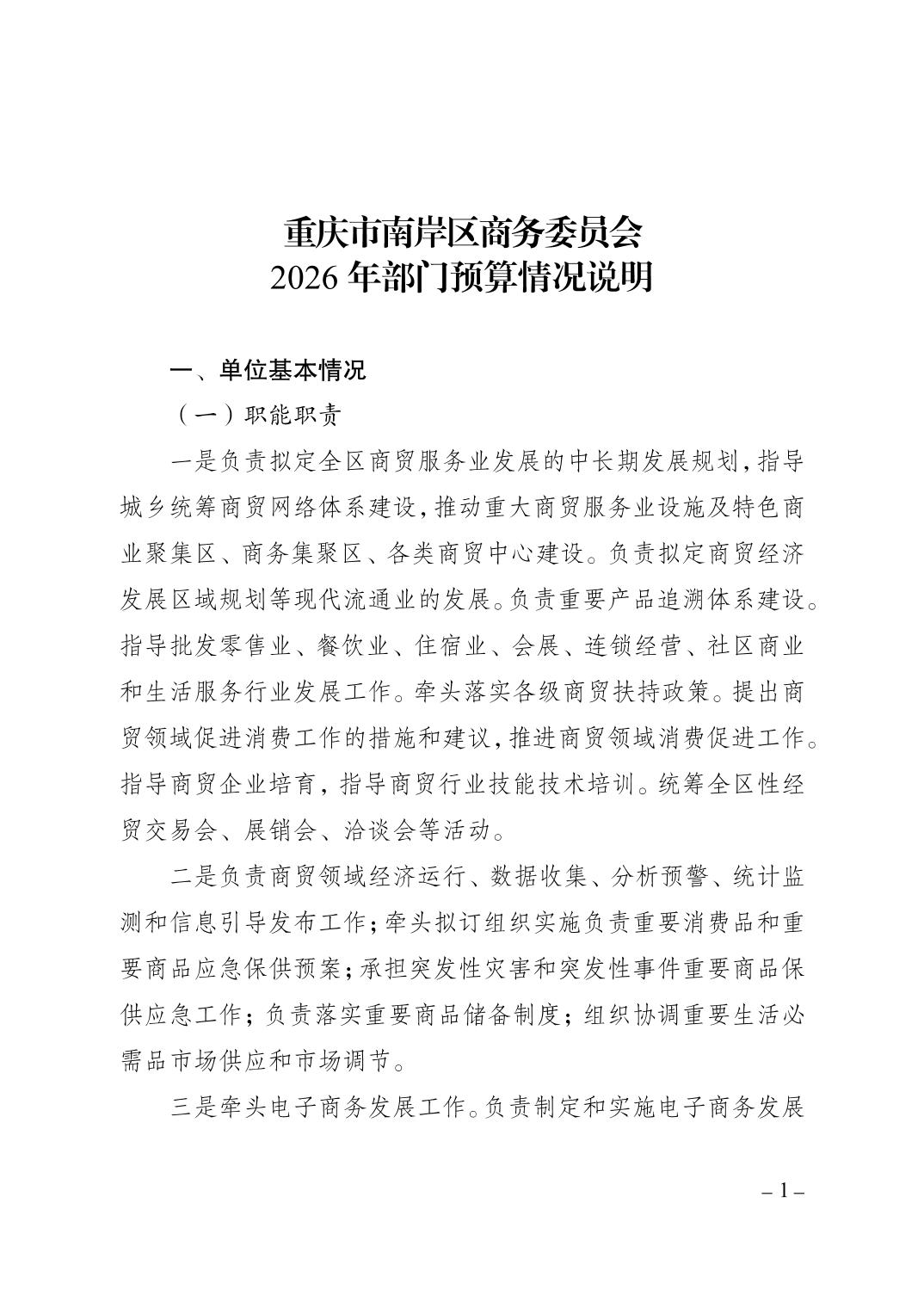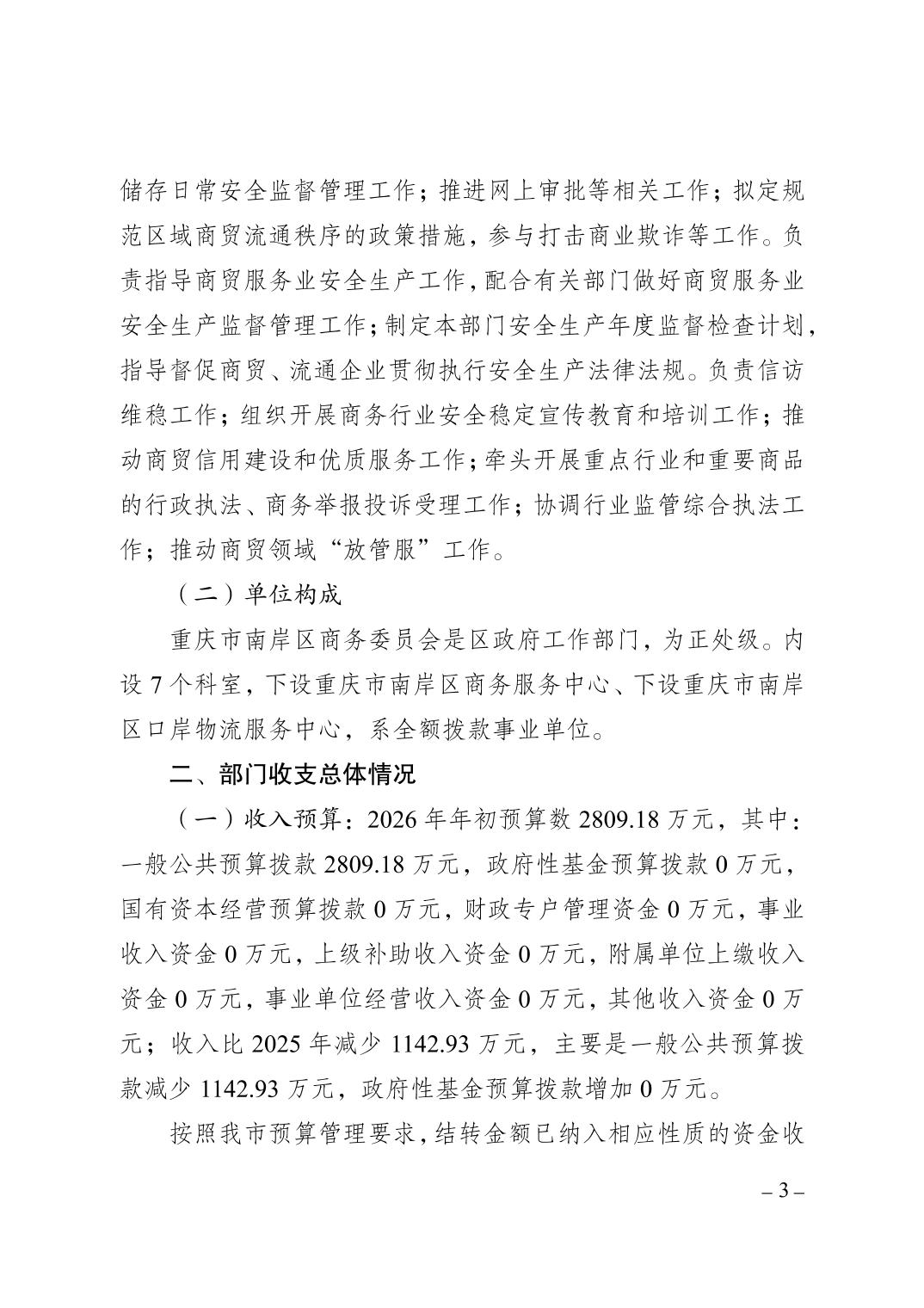 重庆市南岸区商务委员会2026年部门预算情况说明