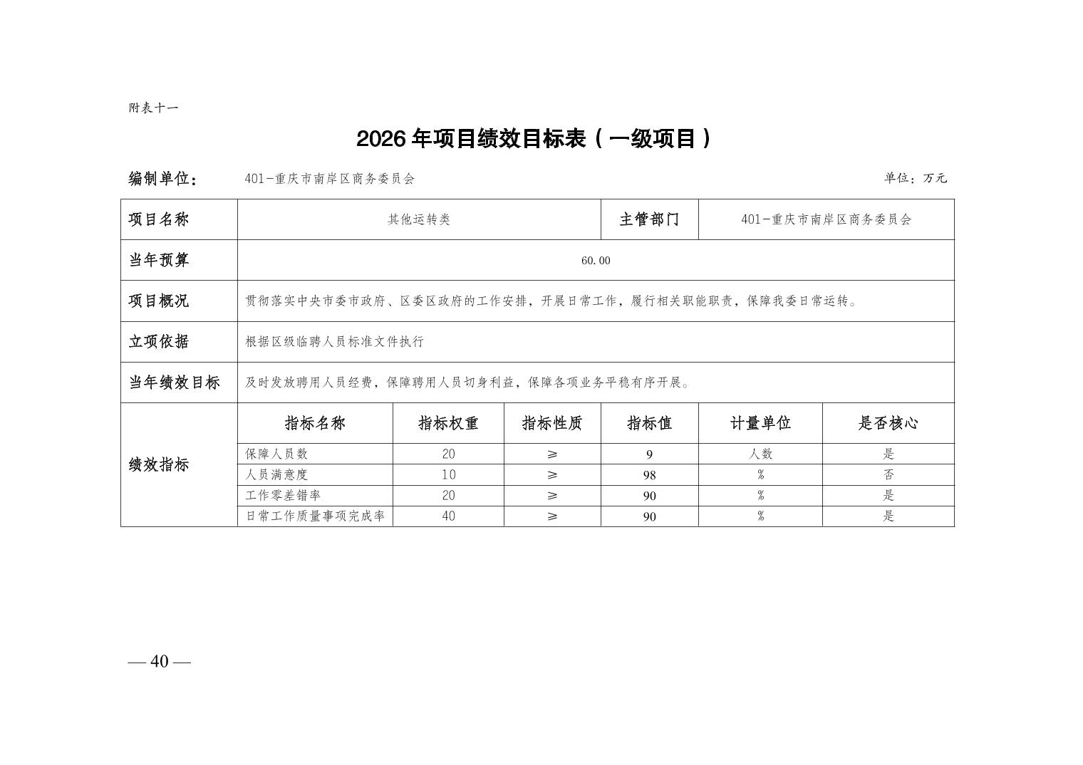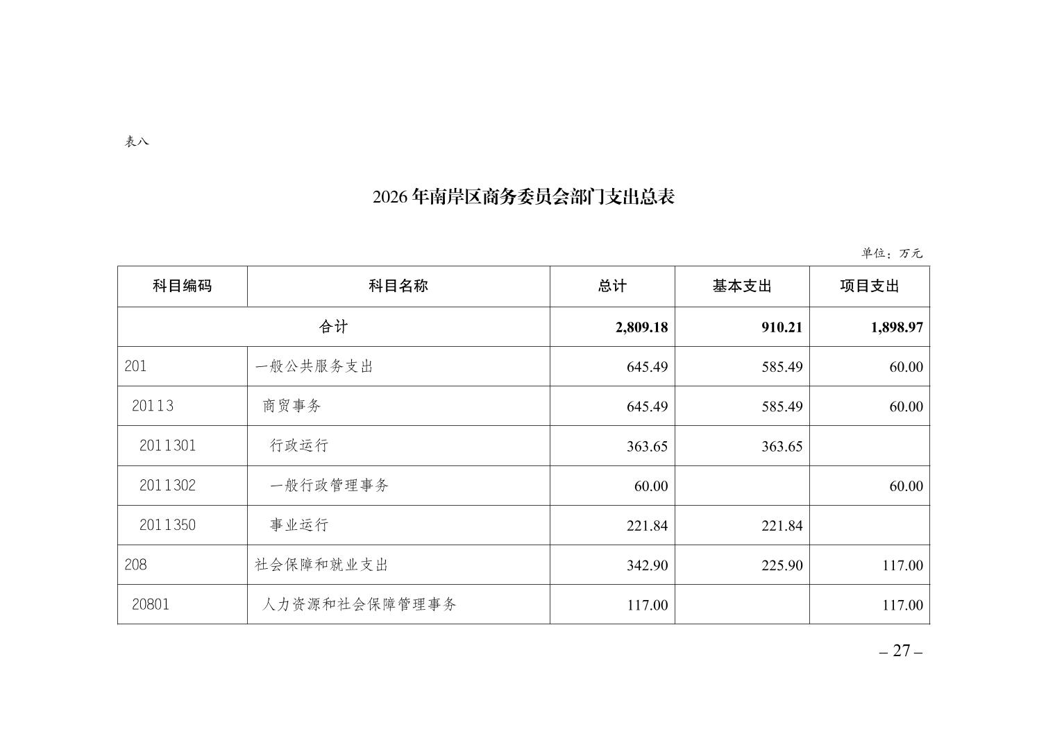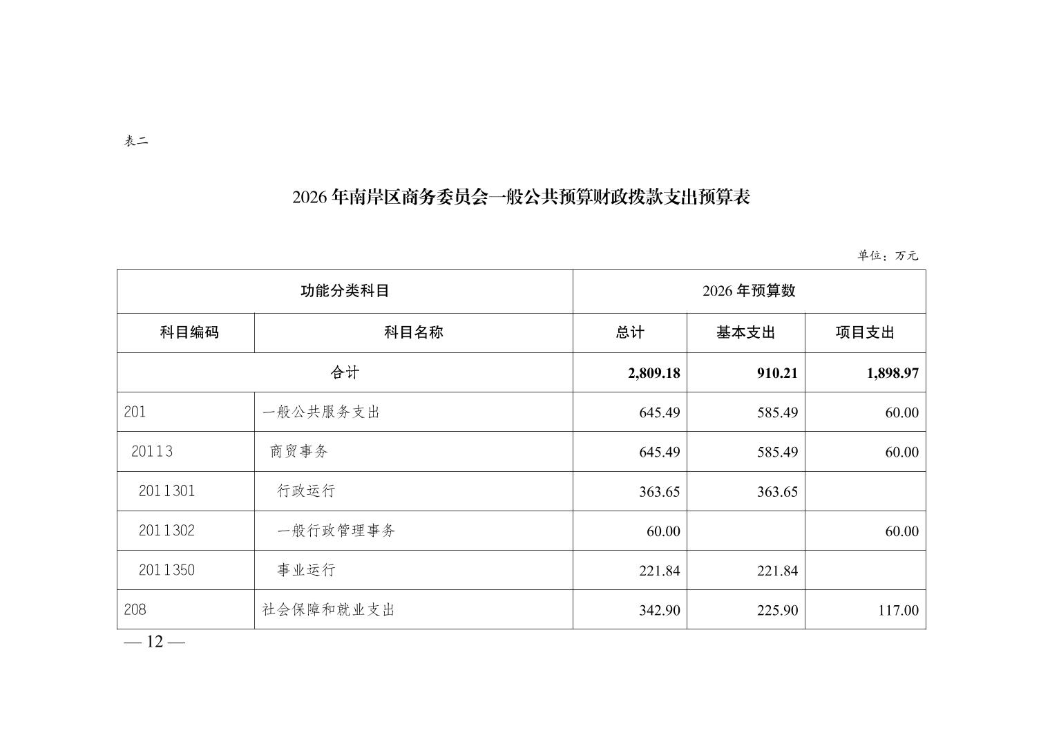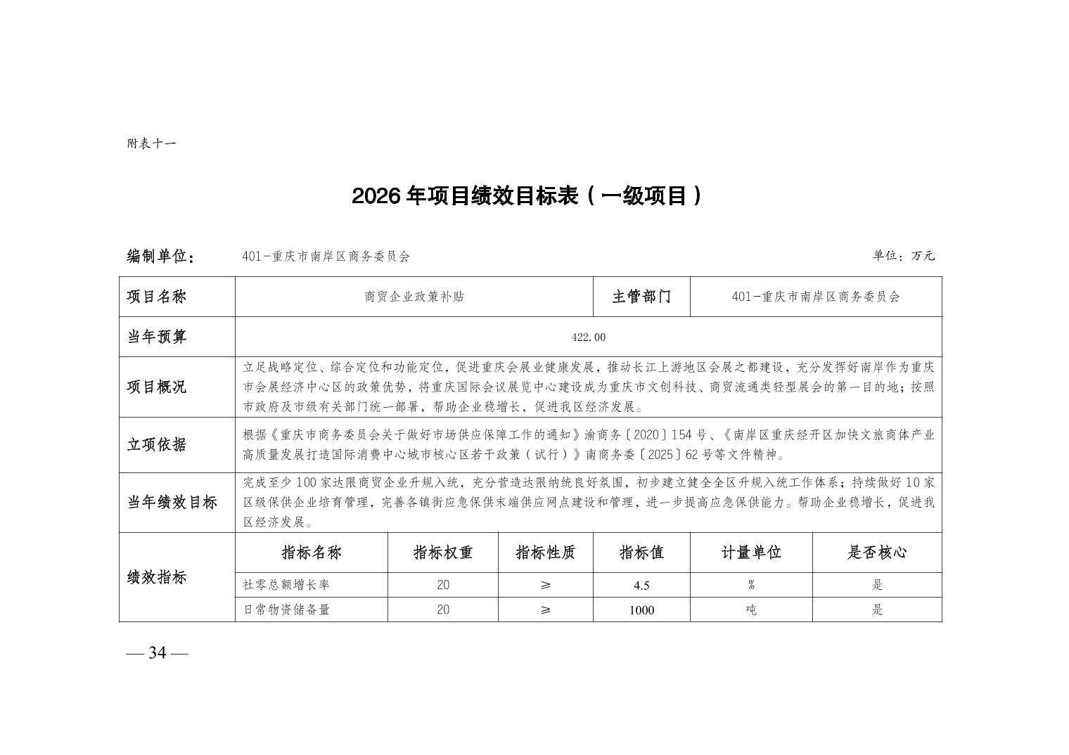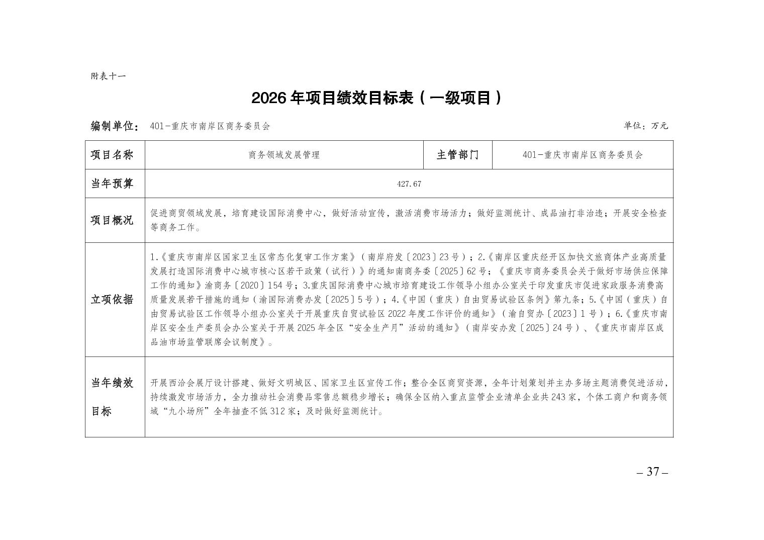 重庆市南岸区商务委员会2026年部门预算情况说明