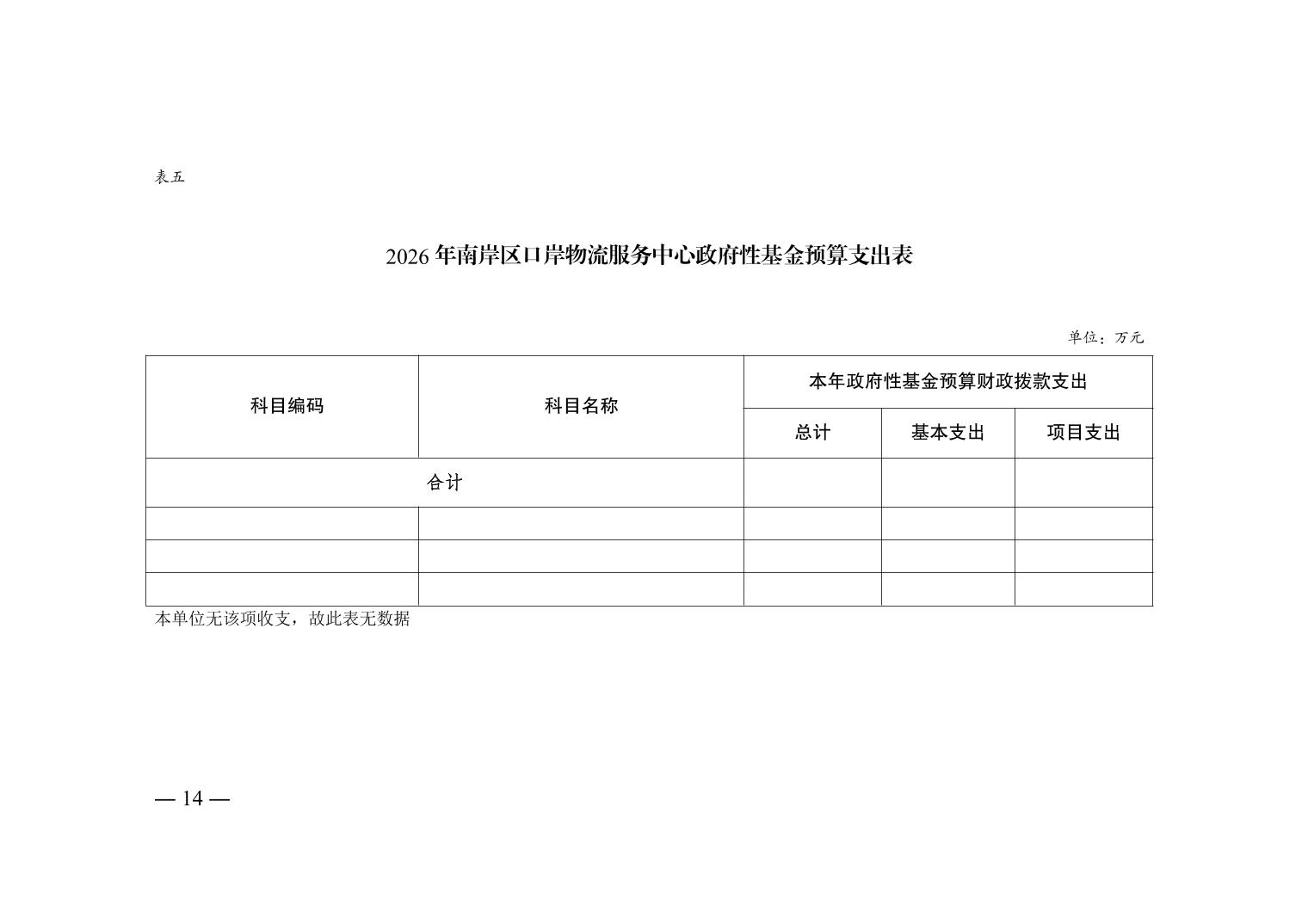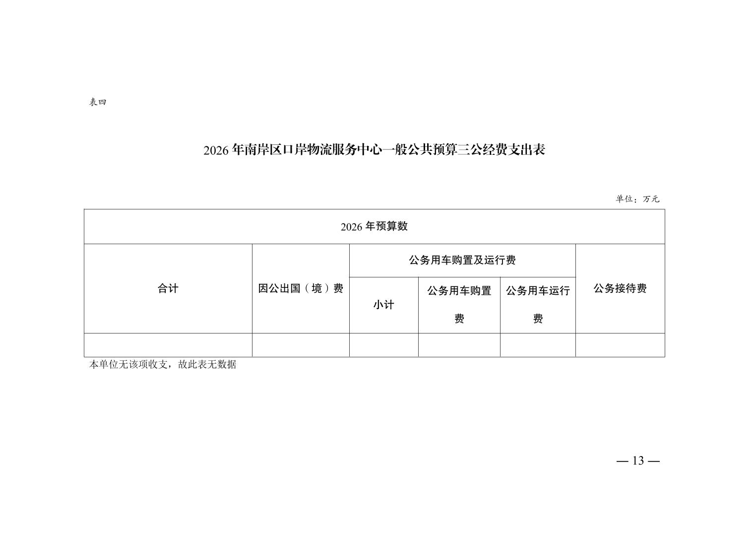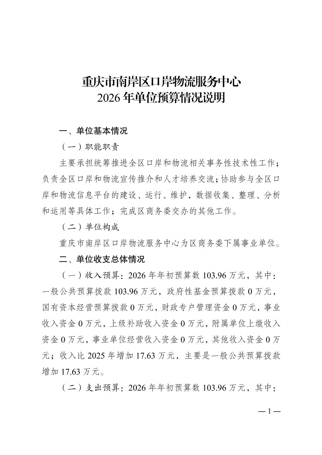 重庆市南岸区口岸物流服务中心2026年单位预算情况说明
