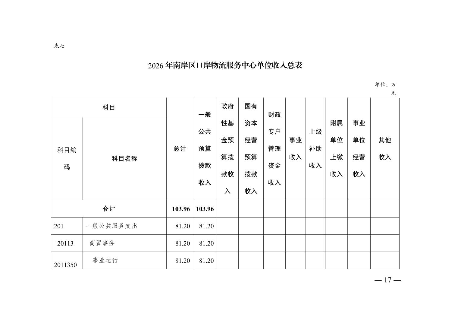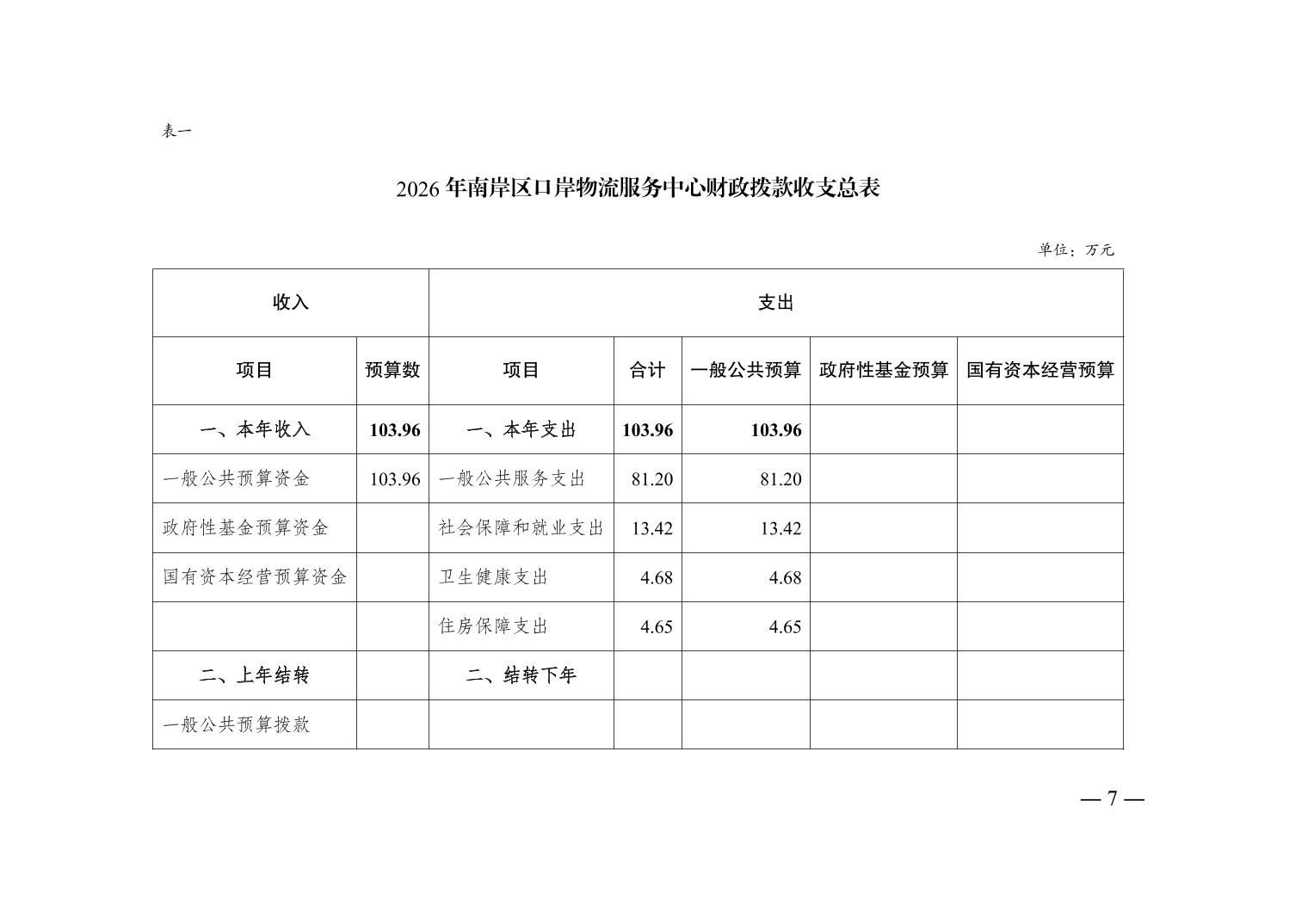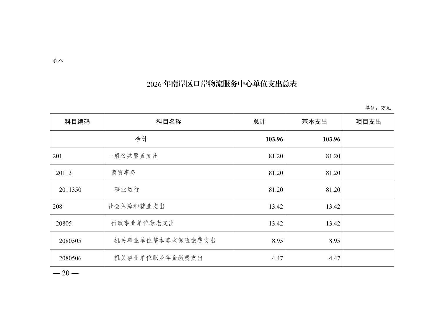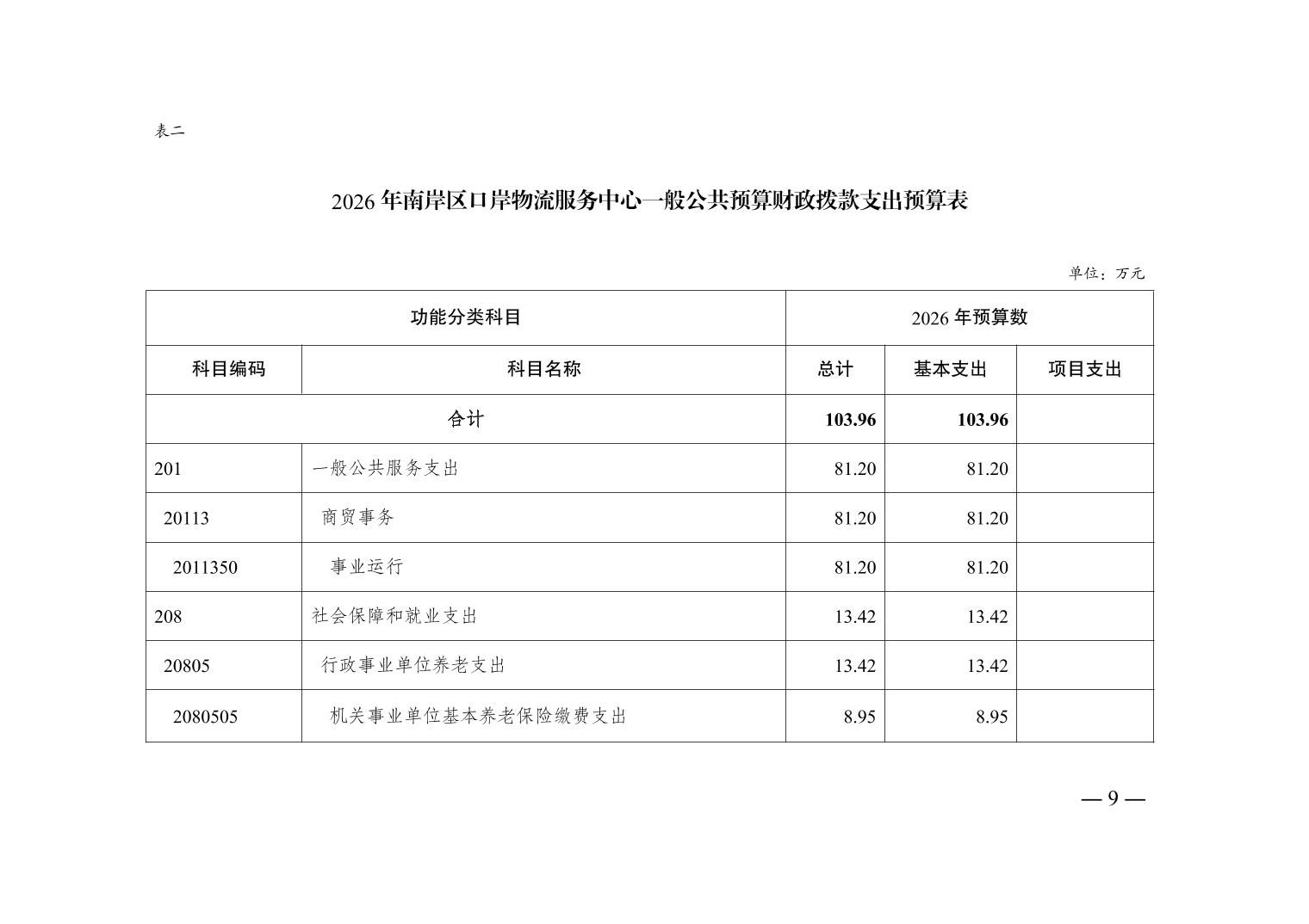 重庆市南岸区口岸物流服务中心2026年单位预算情况说明
