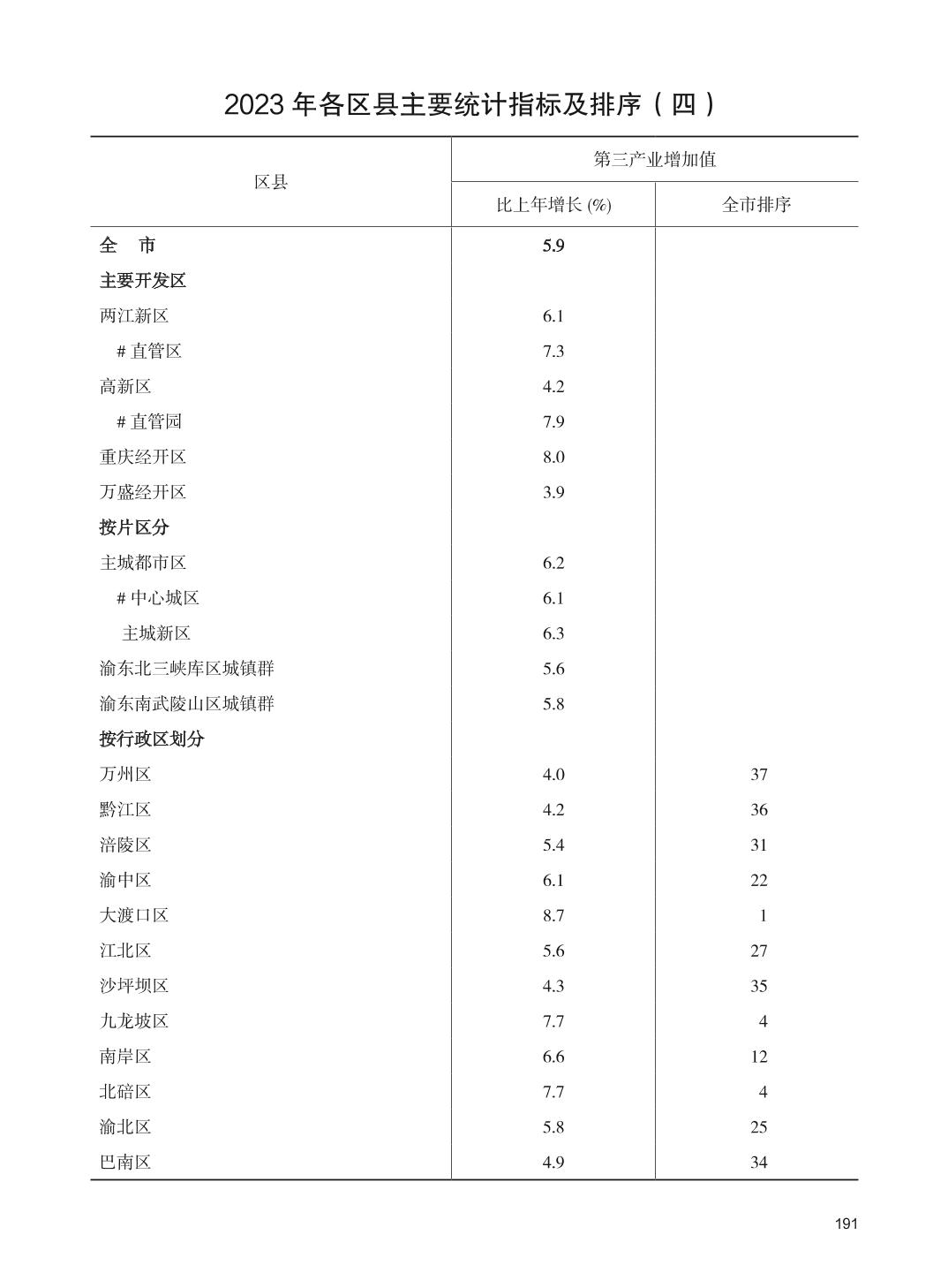 2024年重庆市南岸区统计年鉴
