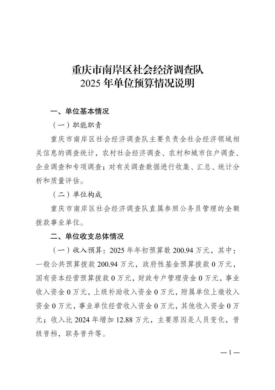 重庆市南岸区社会经济调查队2025年单位预算情况说明