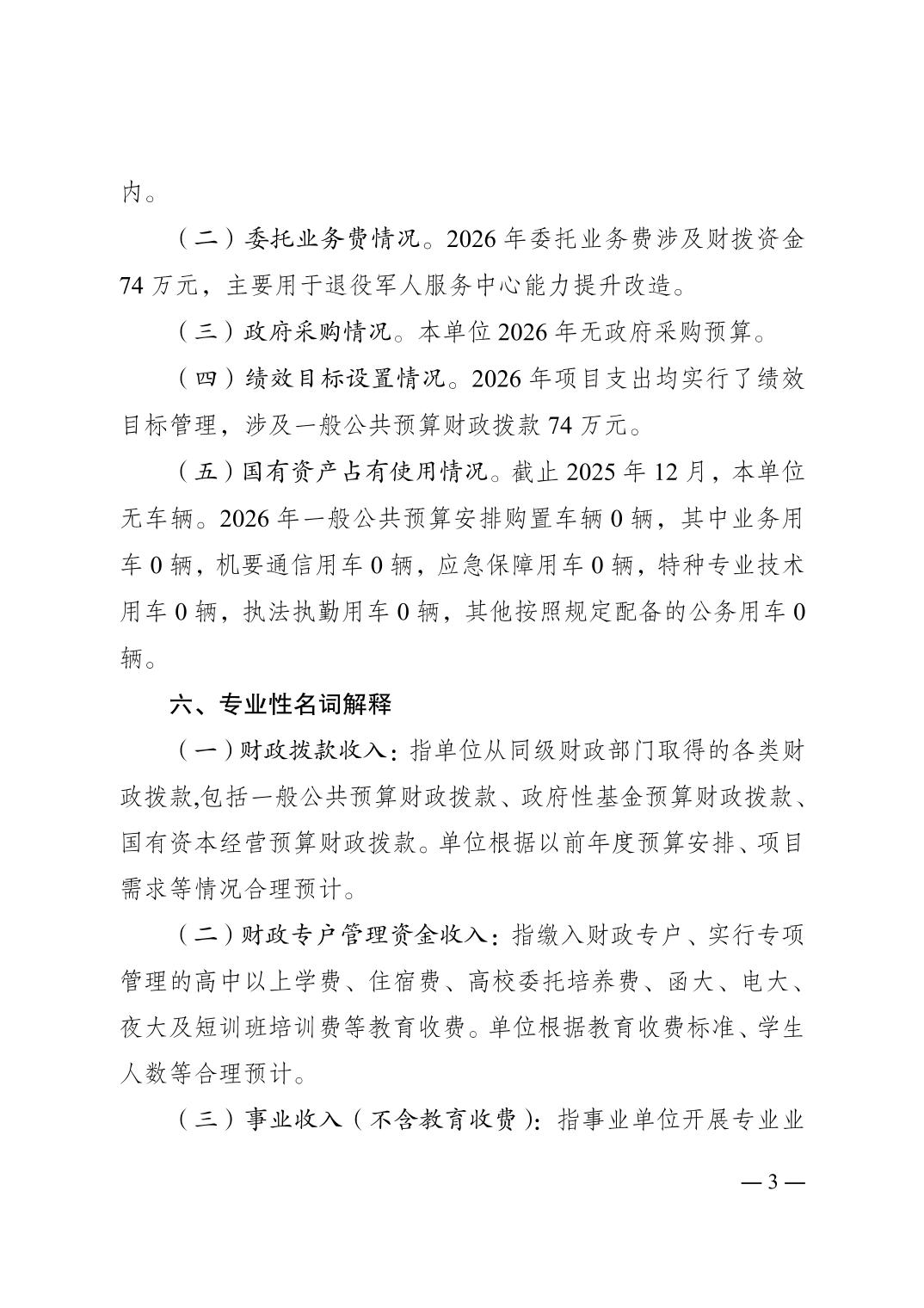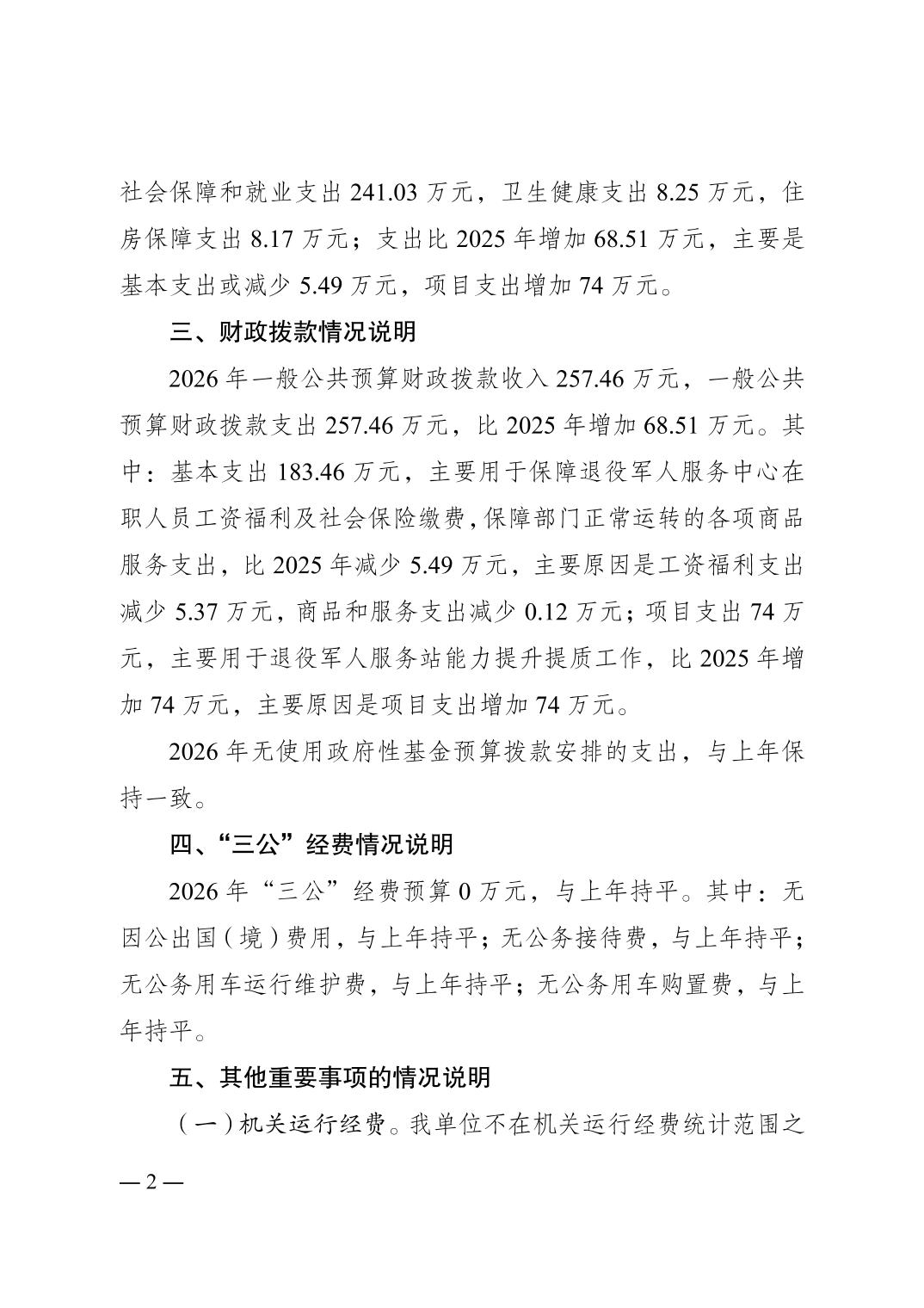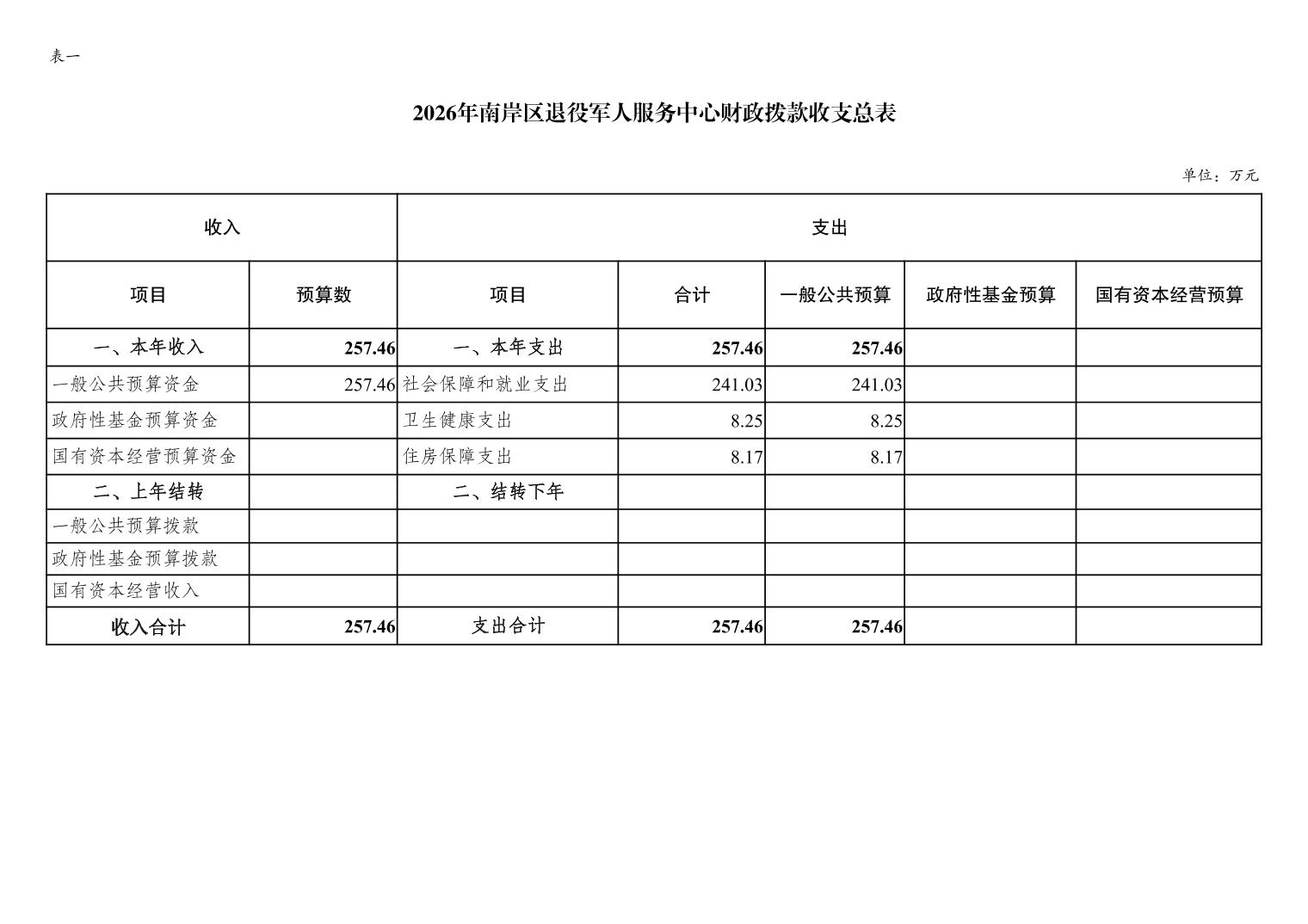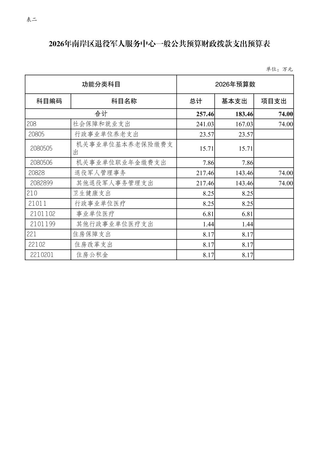 重庆市南岸区退役军人服务中心2026年单位预算情况说明