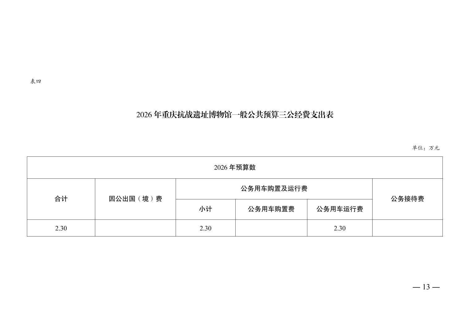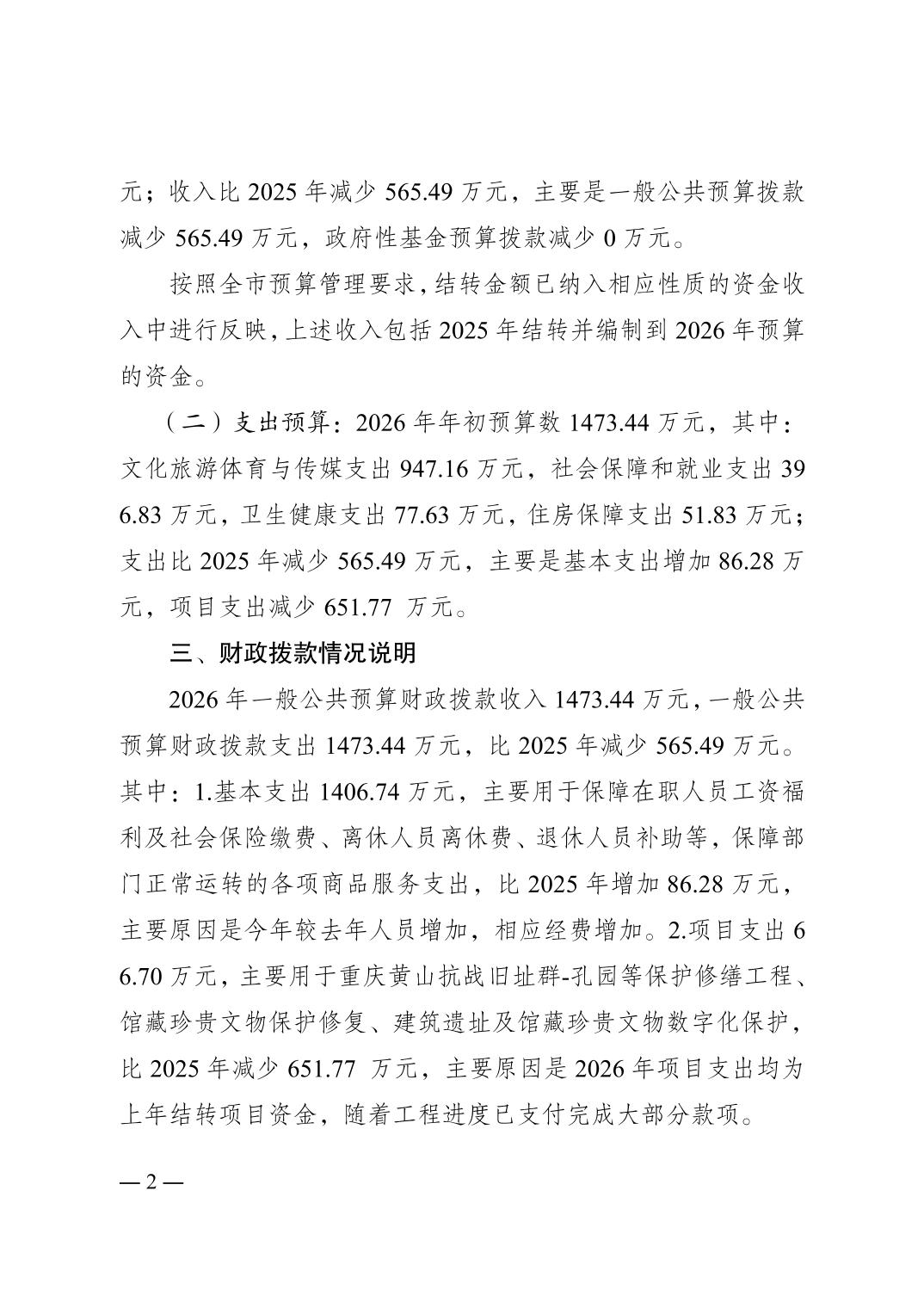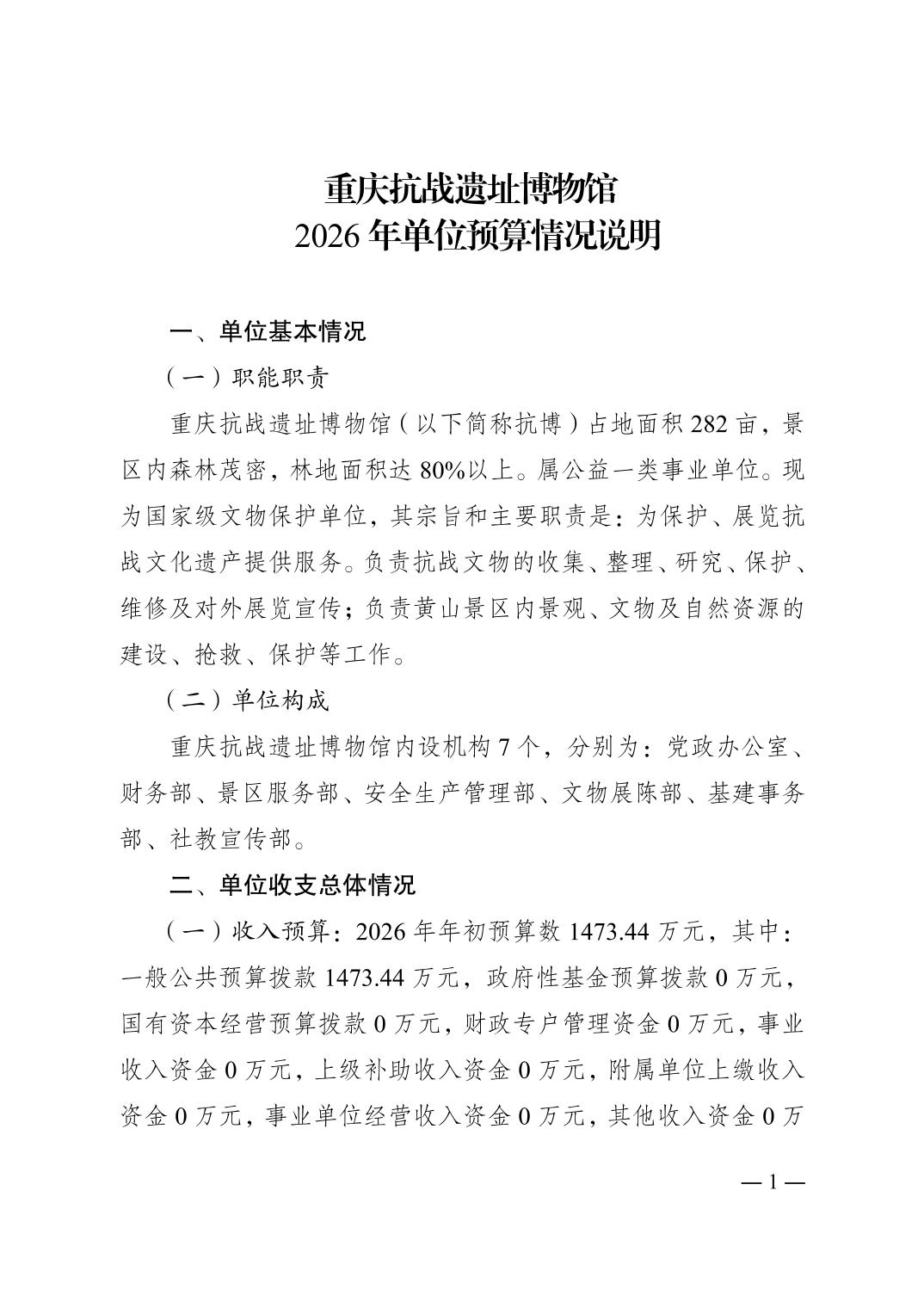 重庆抗战遗址博物馆2026年单位预算情况说明