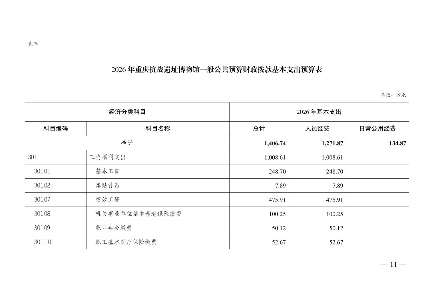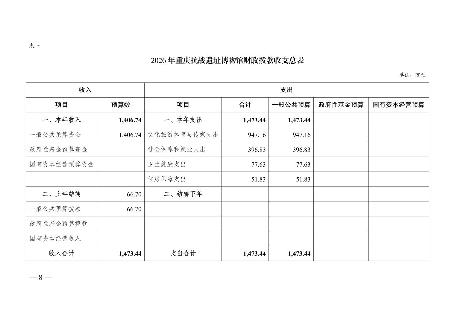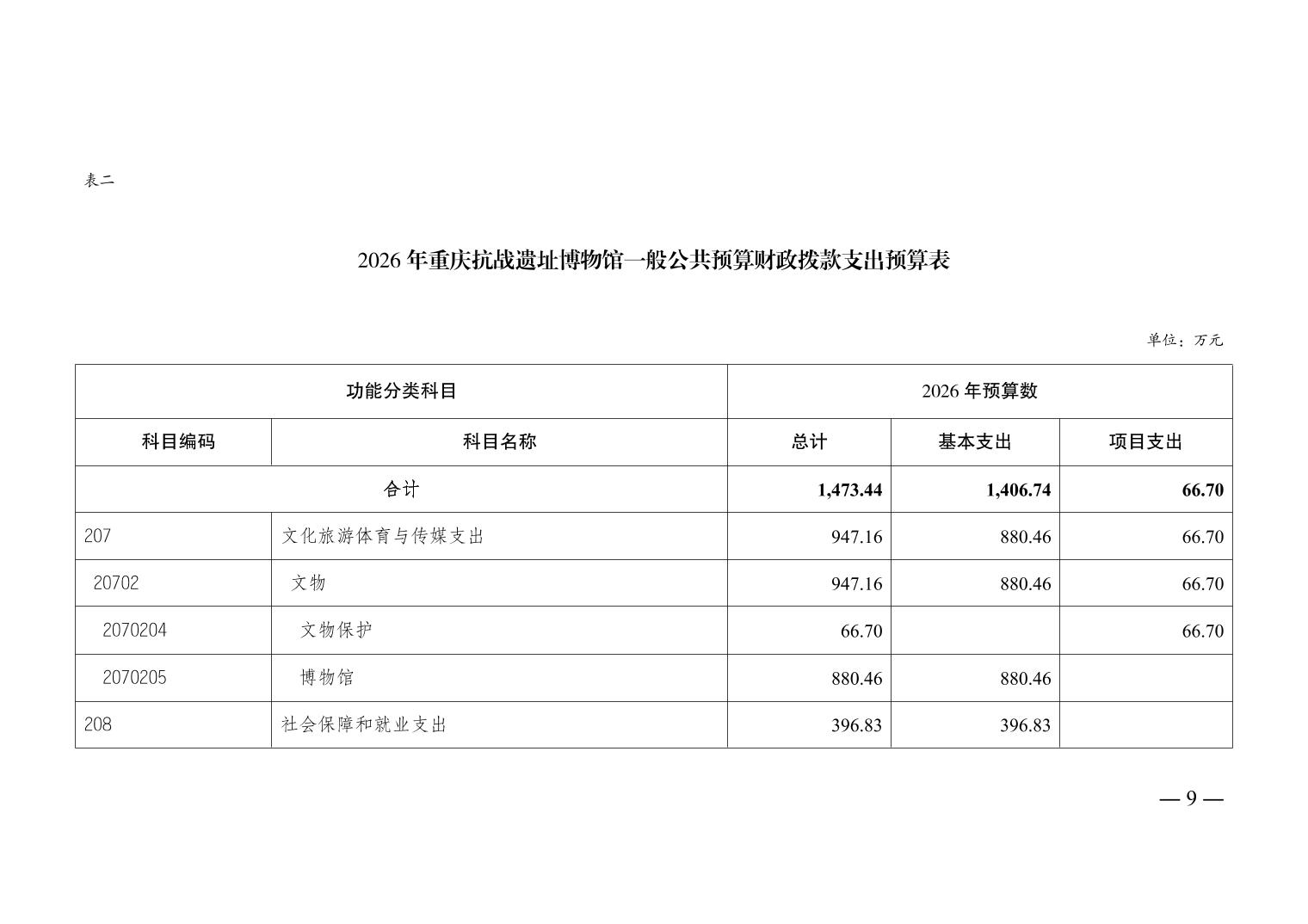 重庆抗战遗址博物馆2026年单位预算情况说明