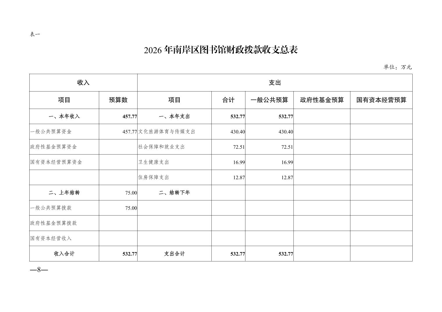 重庆市南岸区图书馆2026年单位预算情况说明