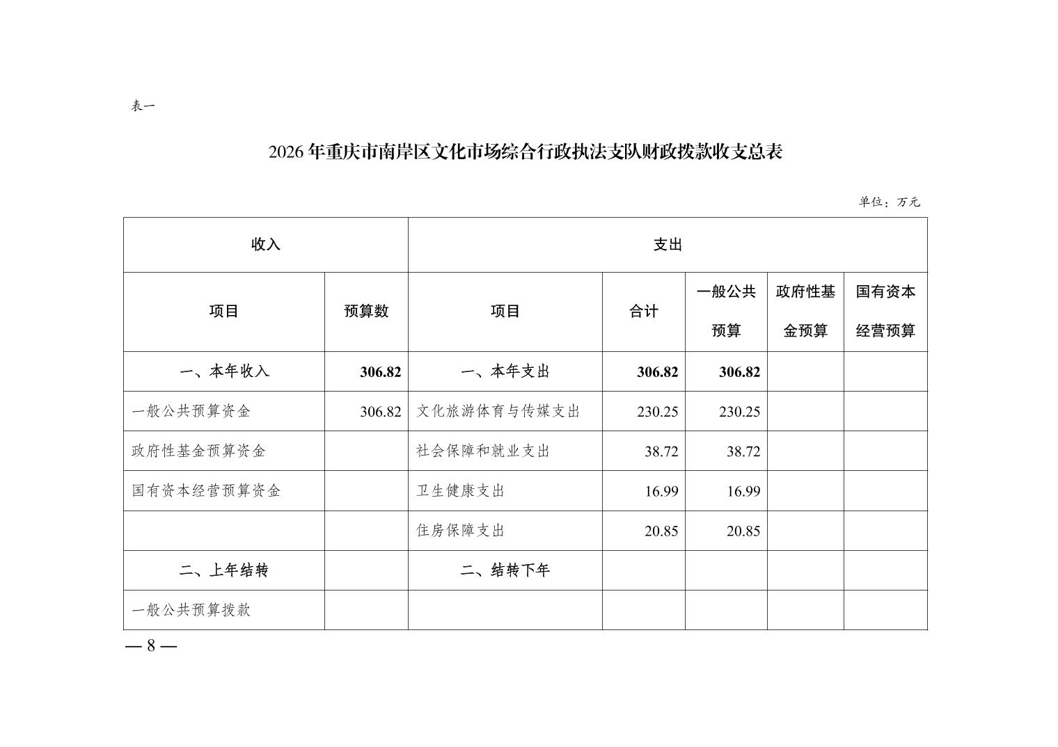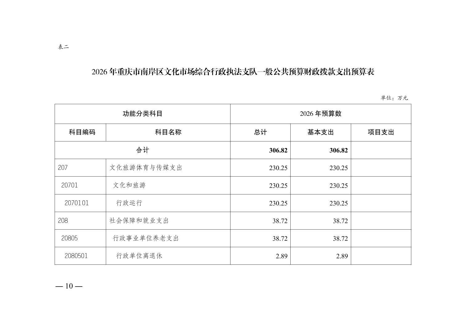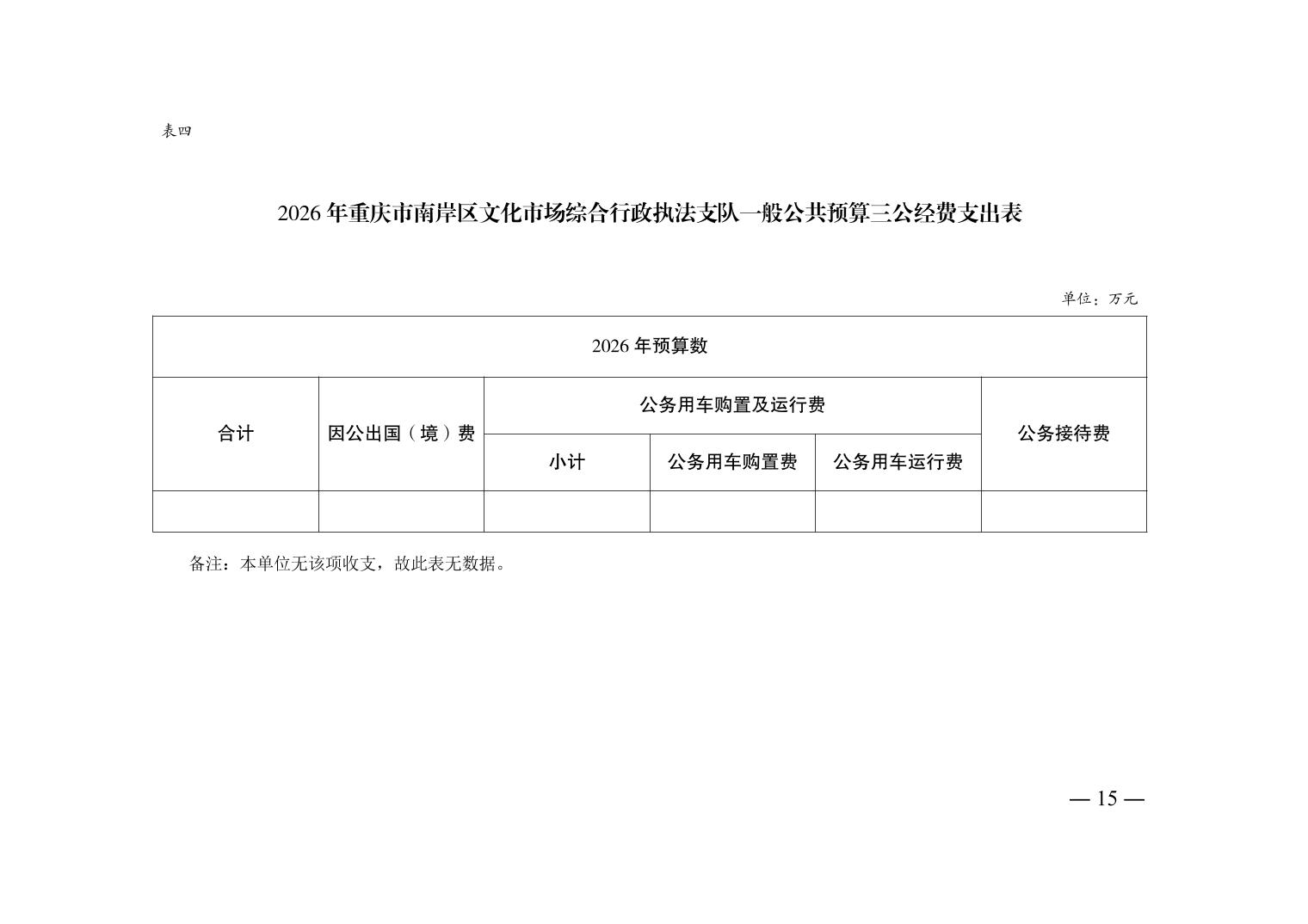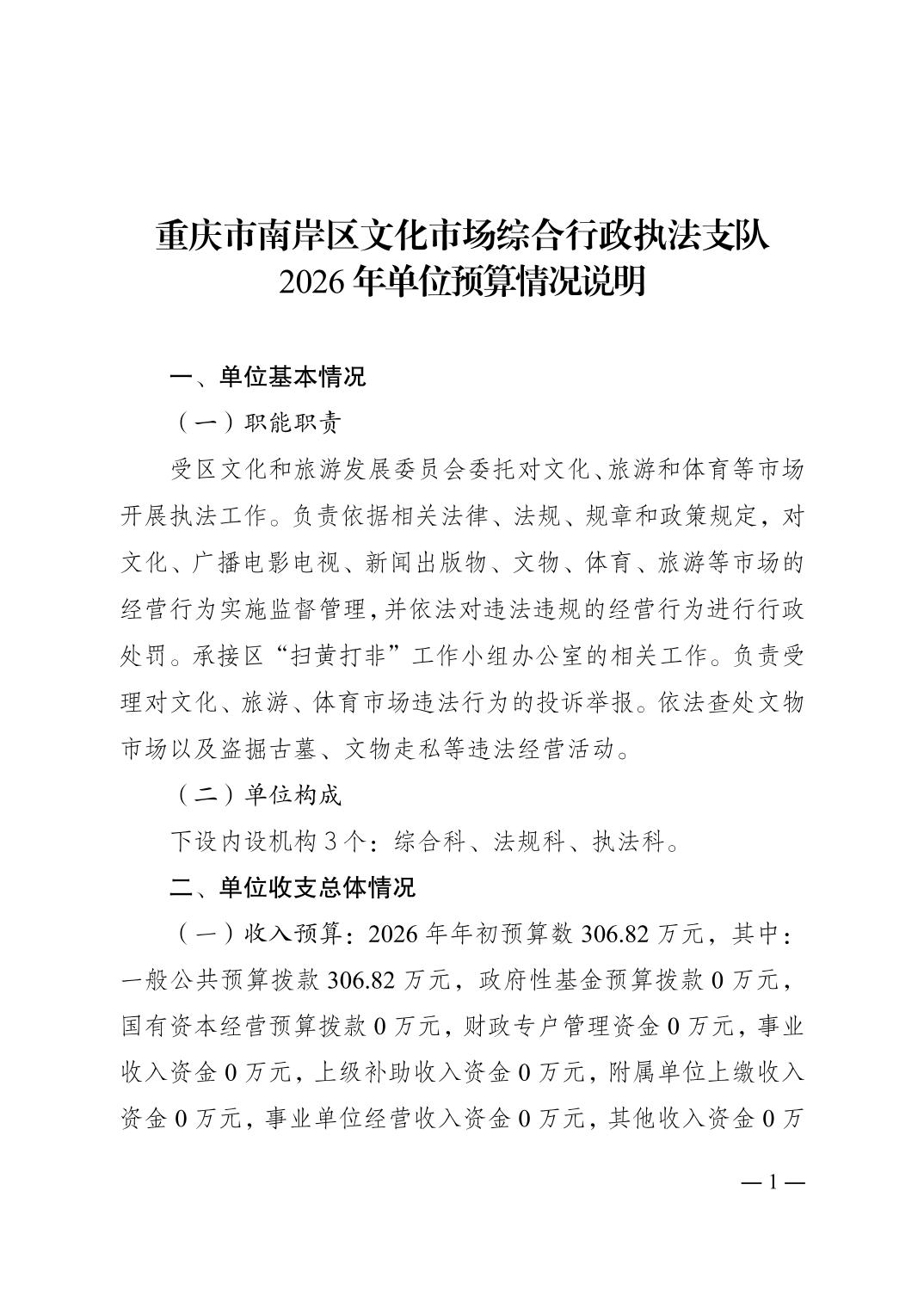 重庆市南岸区文化市场综合行政执法支队2026年单位预算情况说明