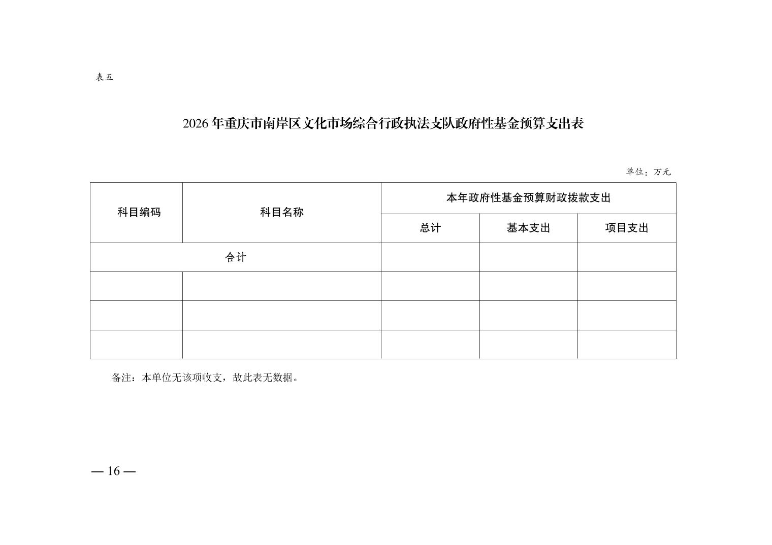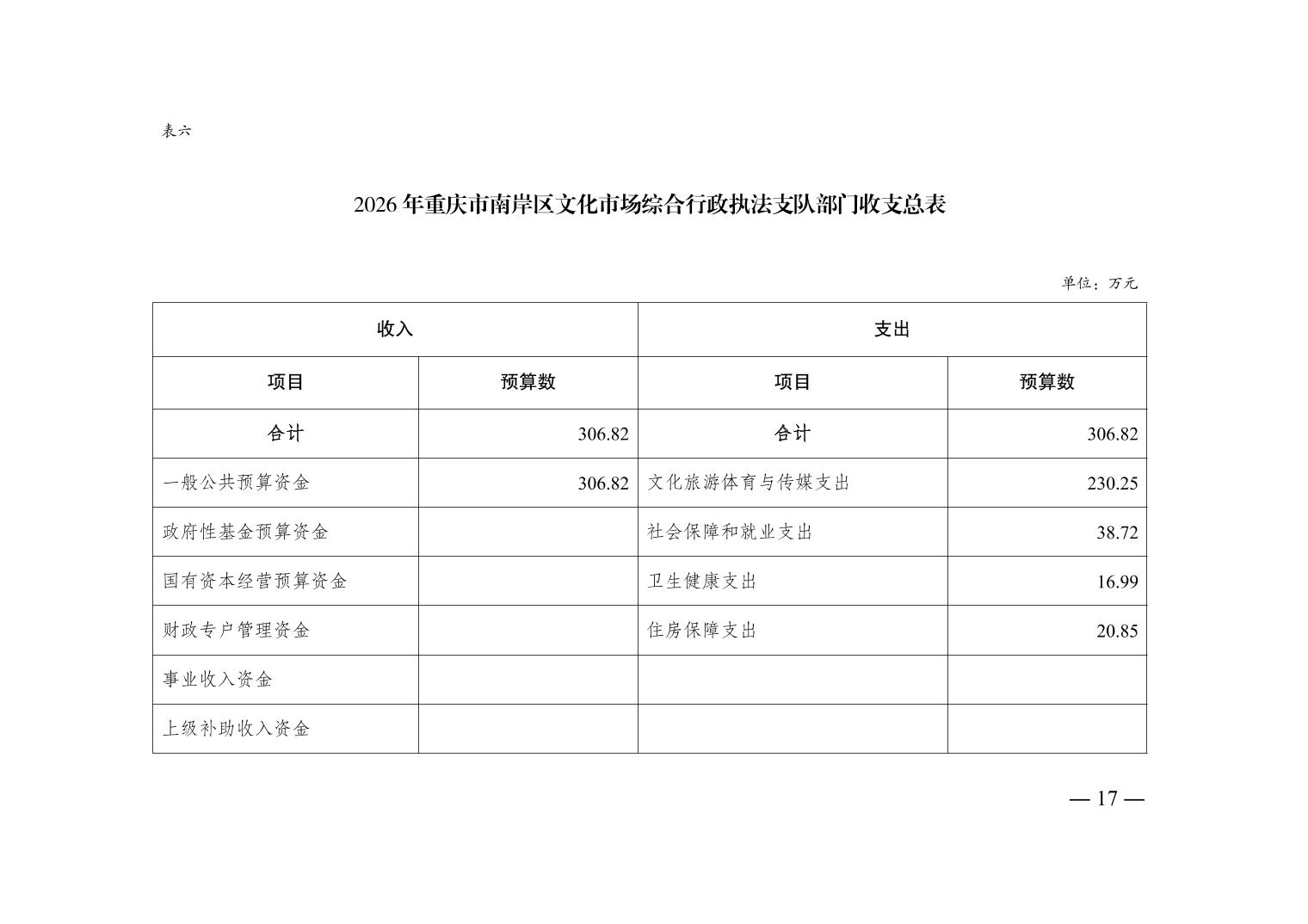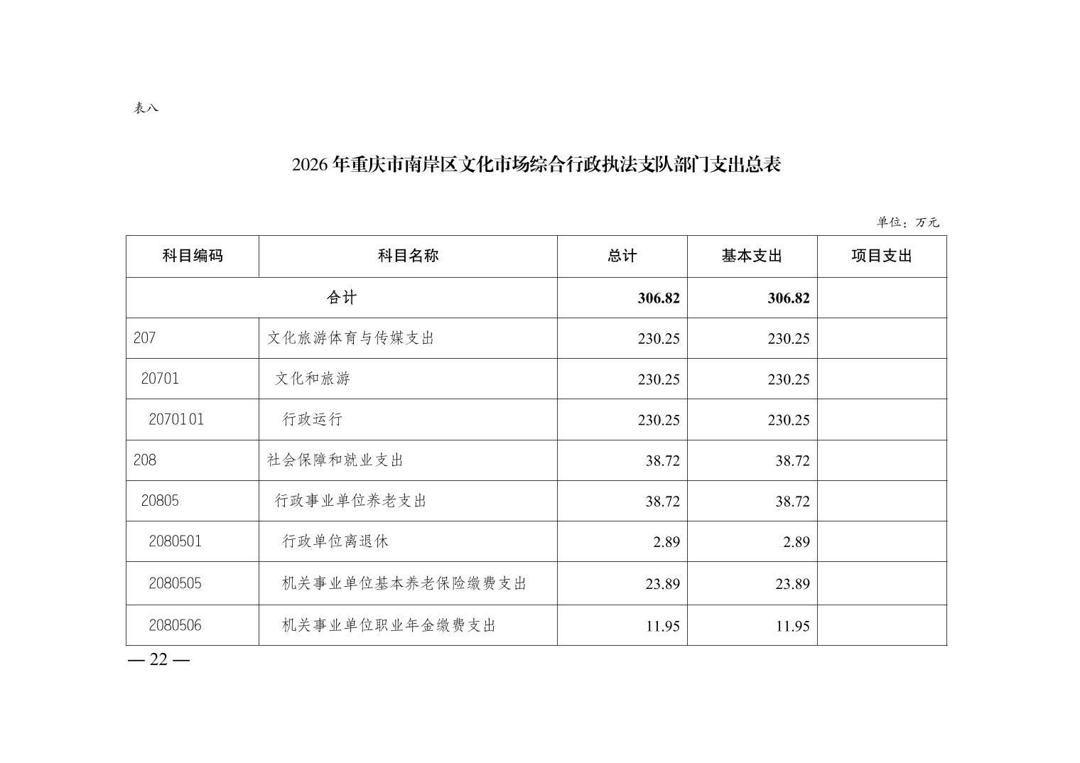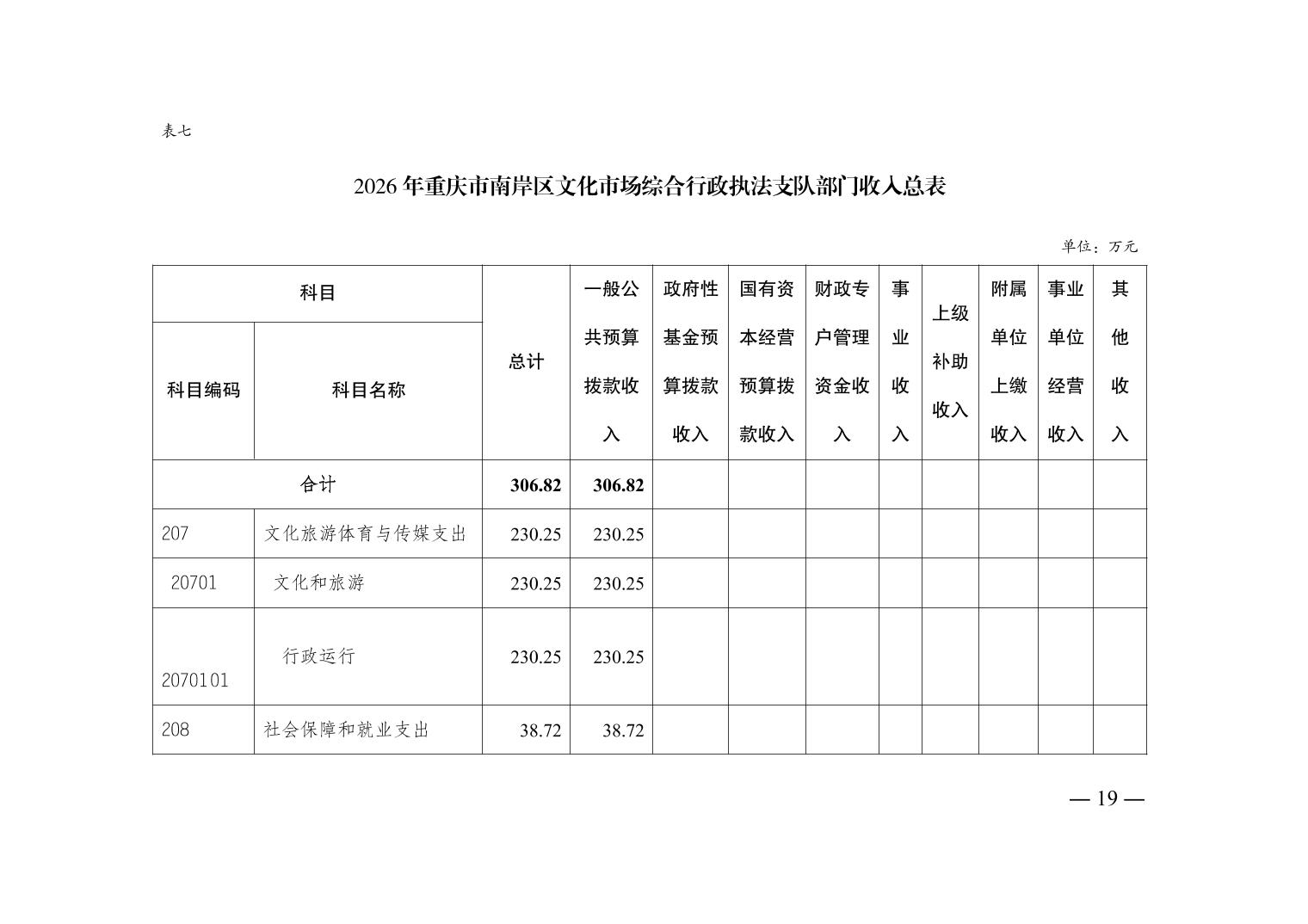 重庆市南岸区文化市场综合行政执法支队2026年单位预算情况说明