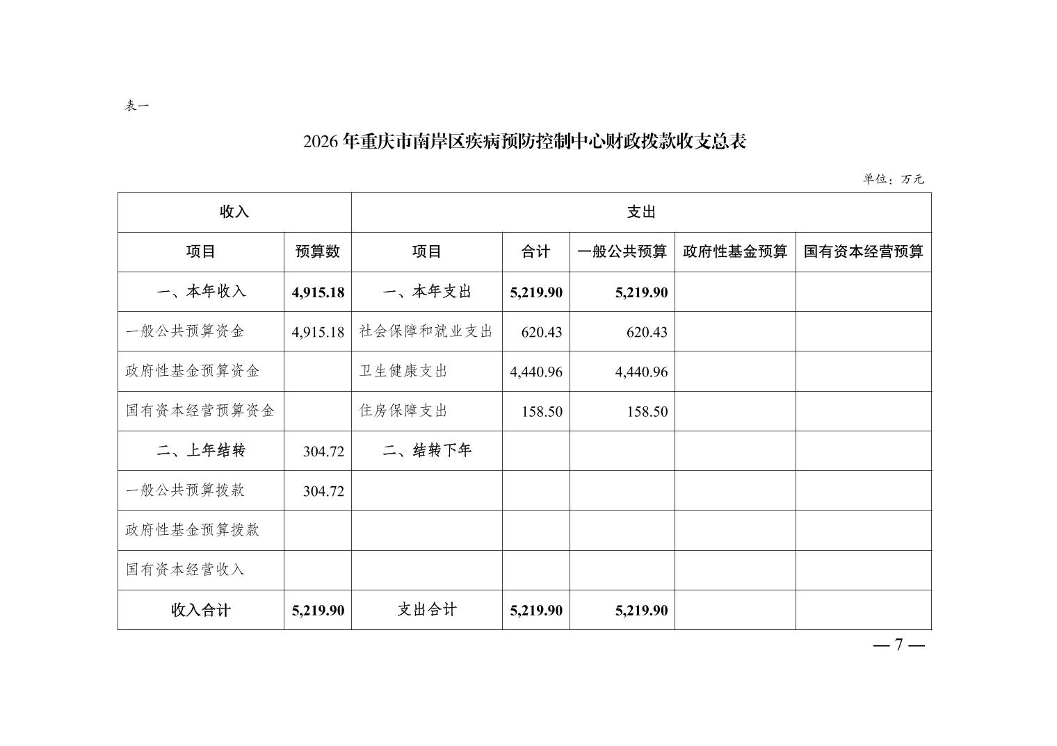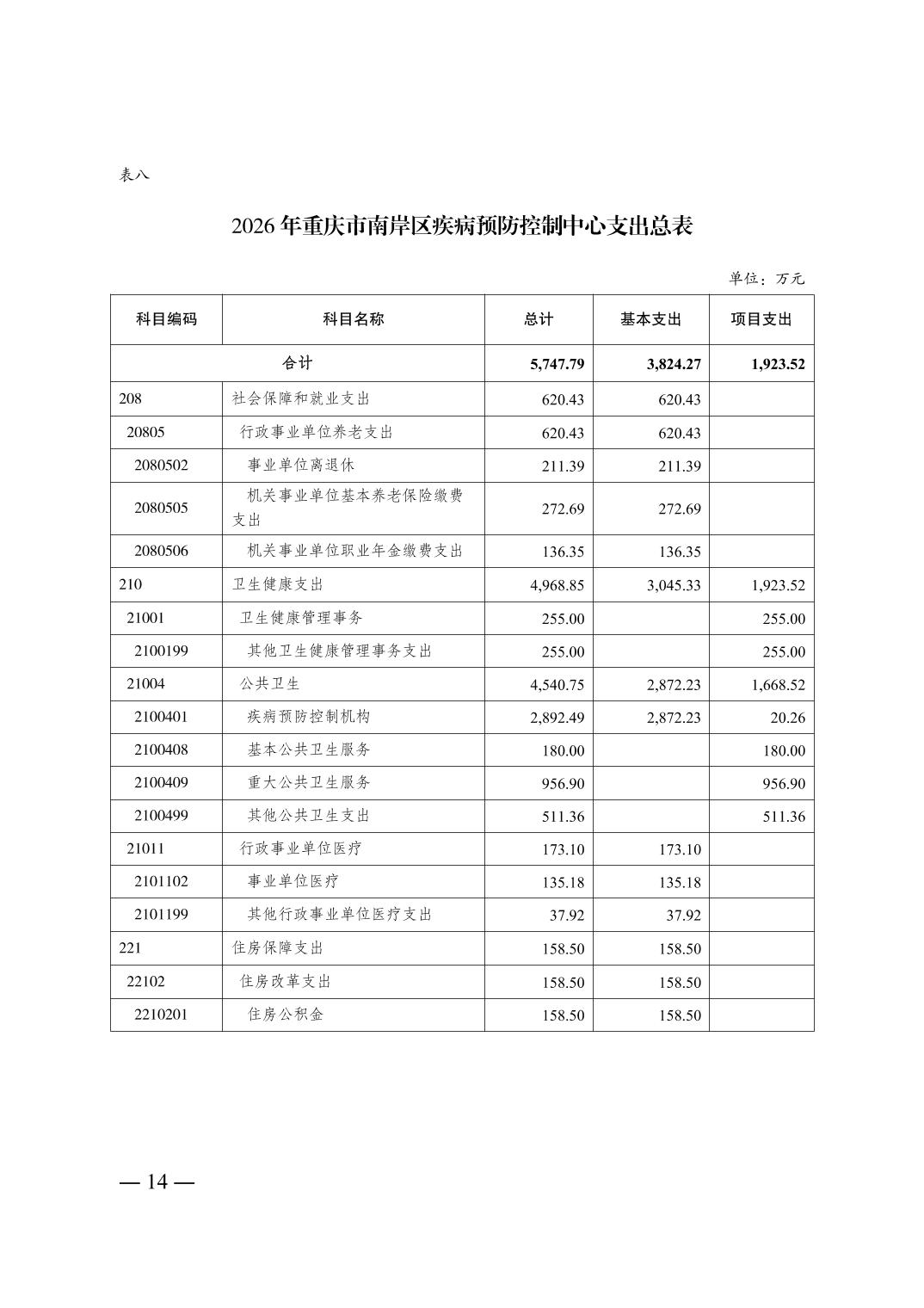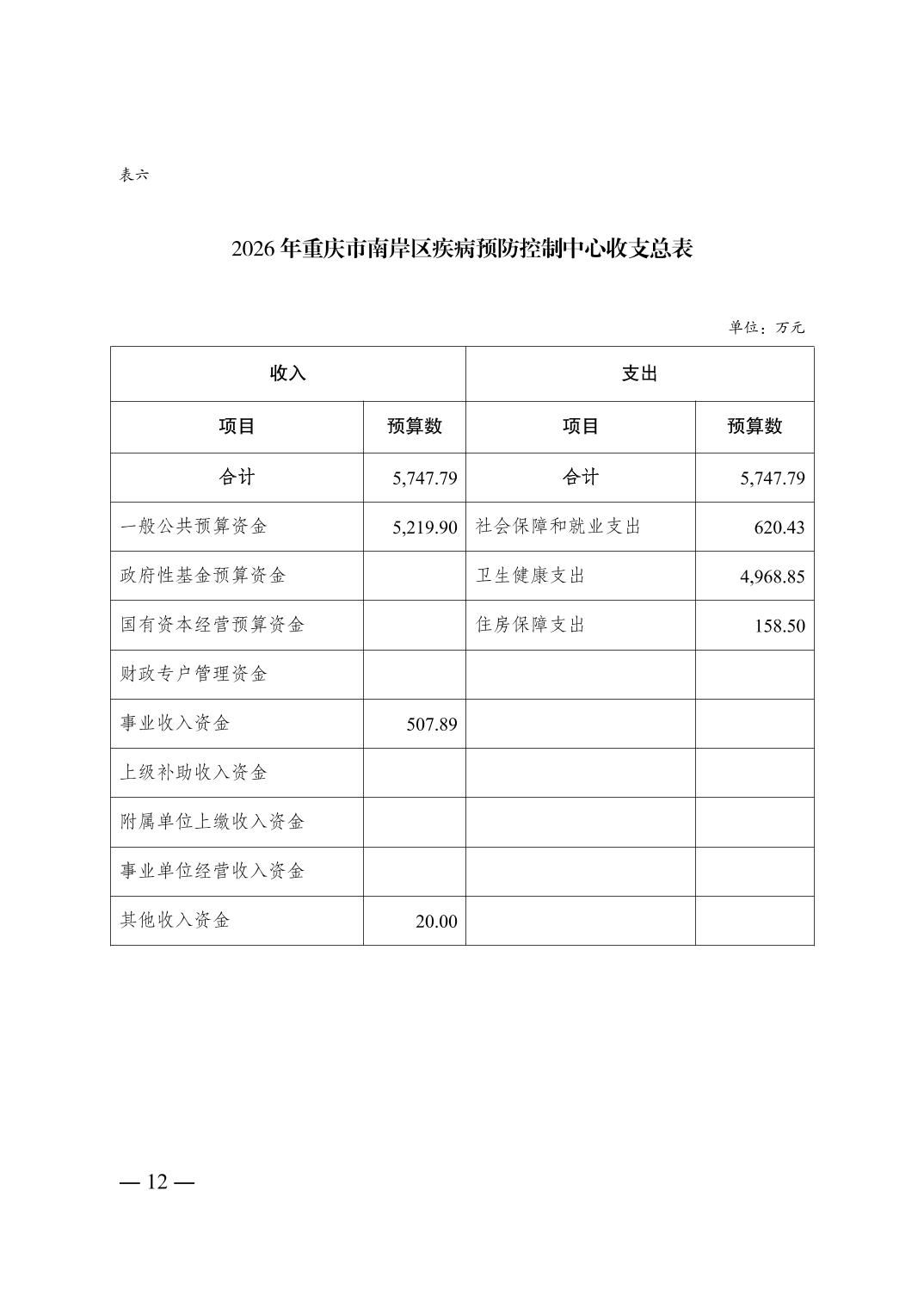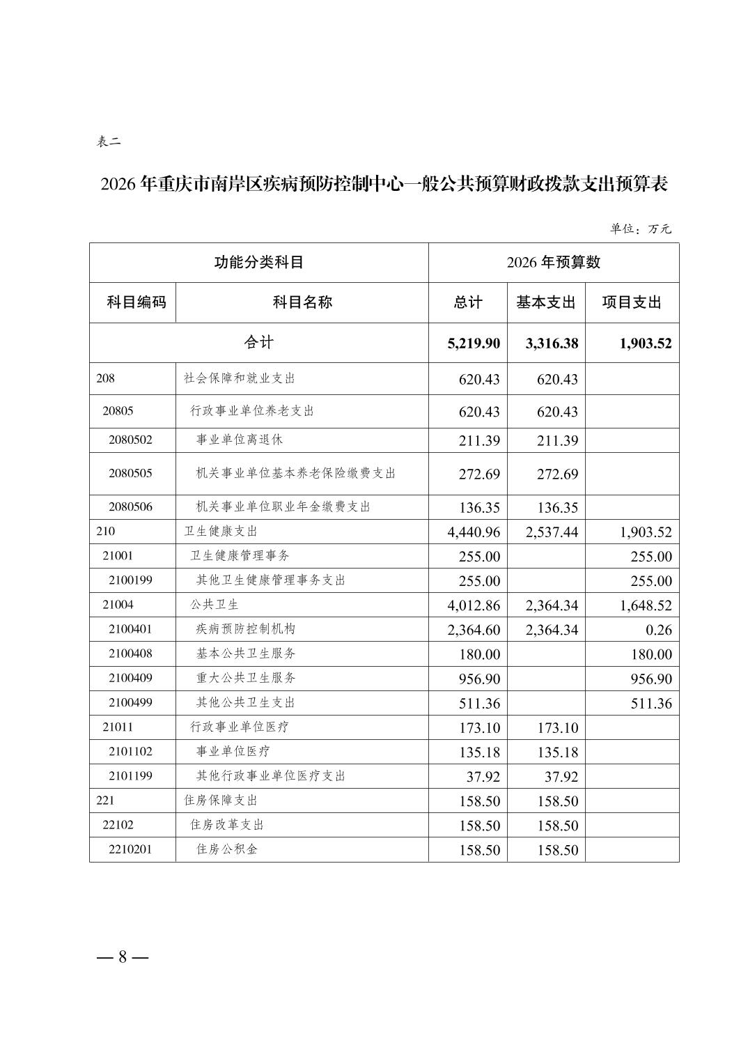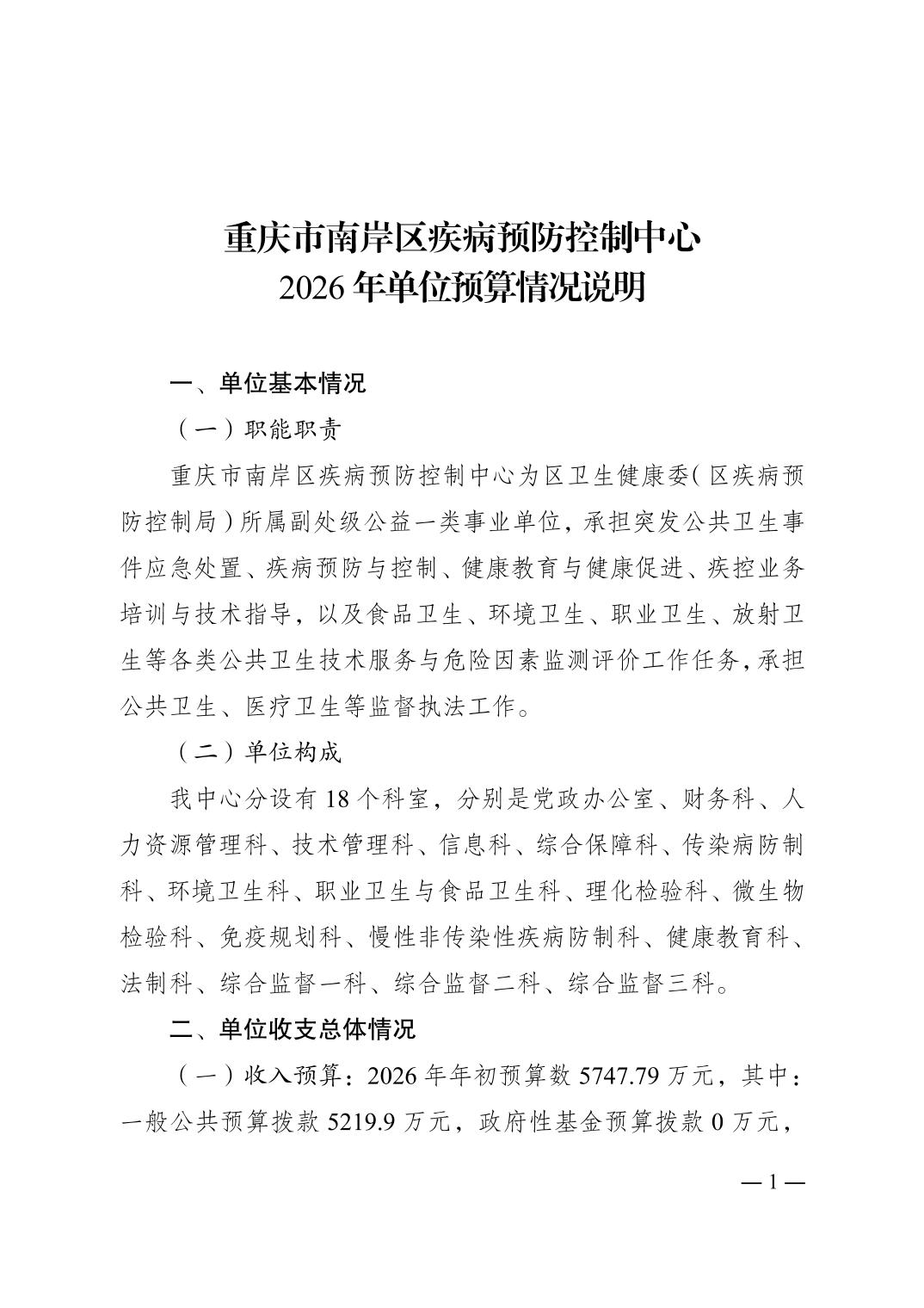 重庆市南岸区疾病预防控制中心(南岸区卫生监督所)2026年单位预算情况说明
