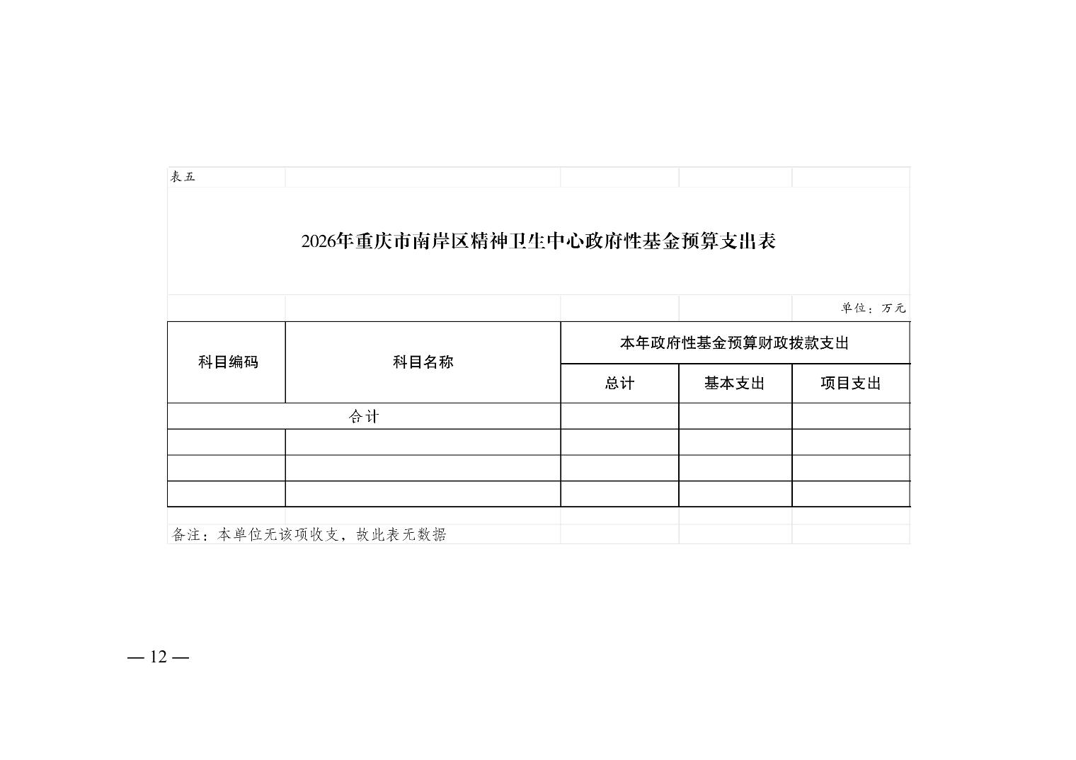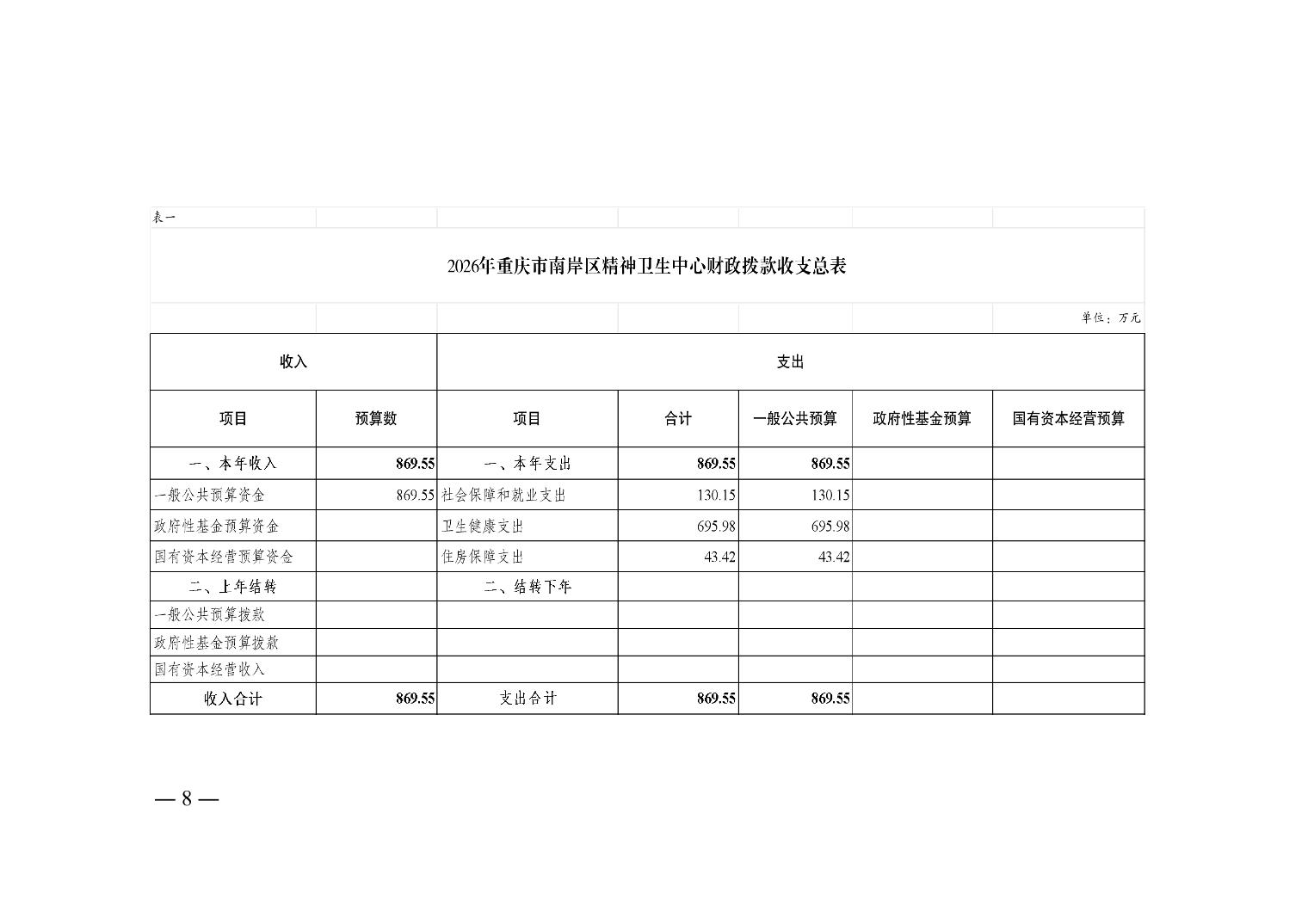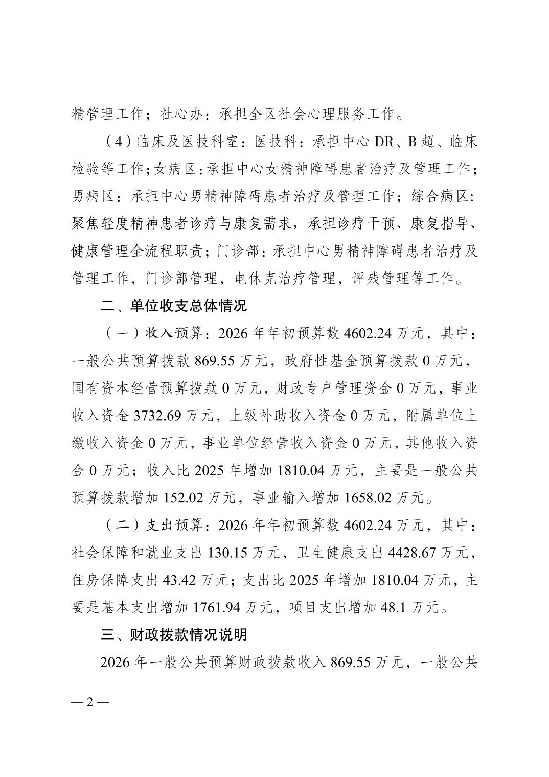 重庆市南岸区精神卫生中心2026年单位预算情况说明