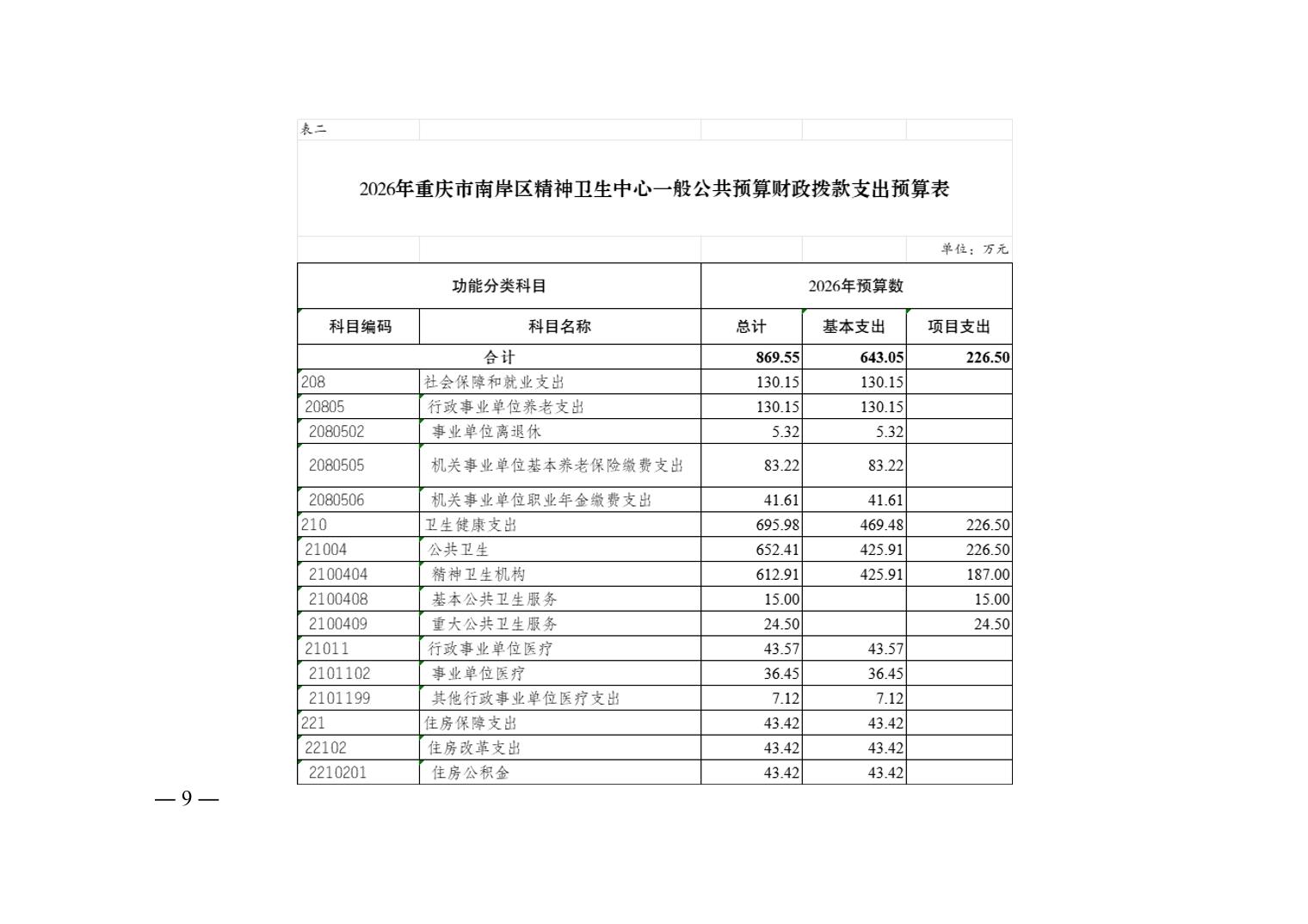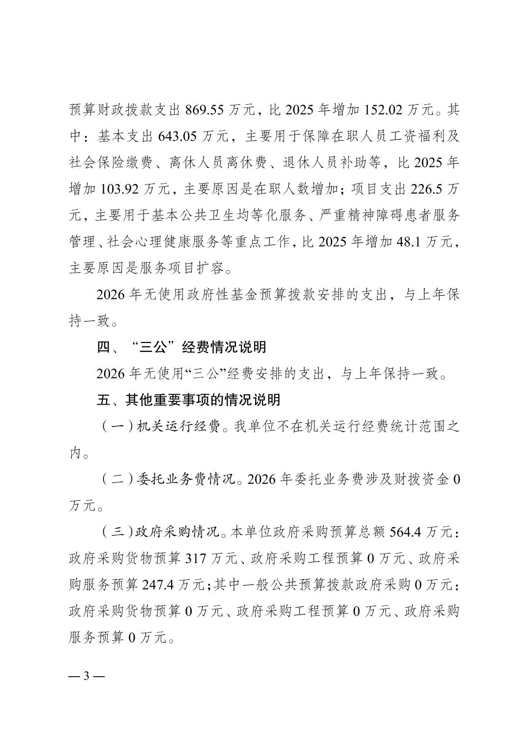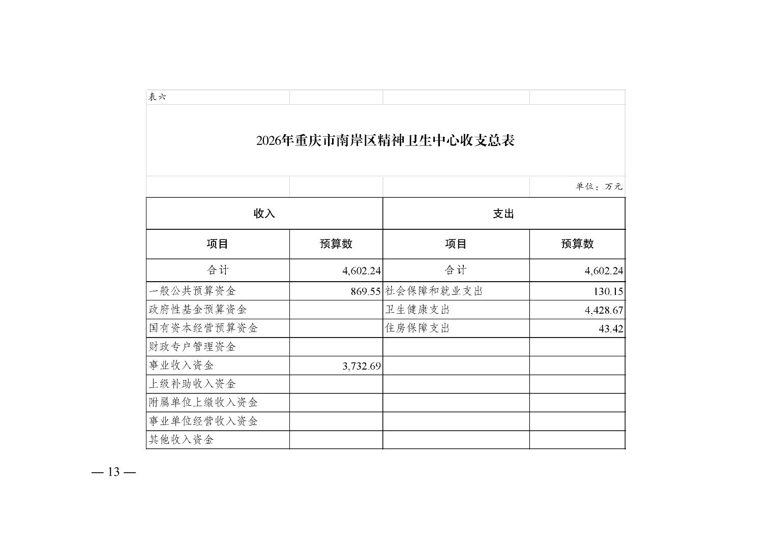 重庆市南岸区精神卫生中心2026年单位预算情况说明