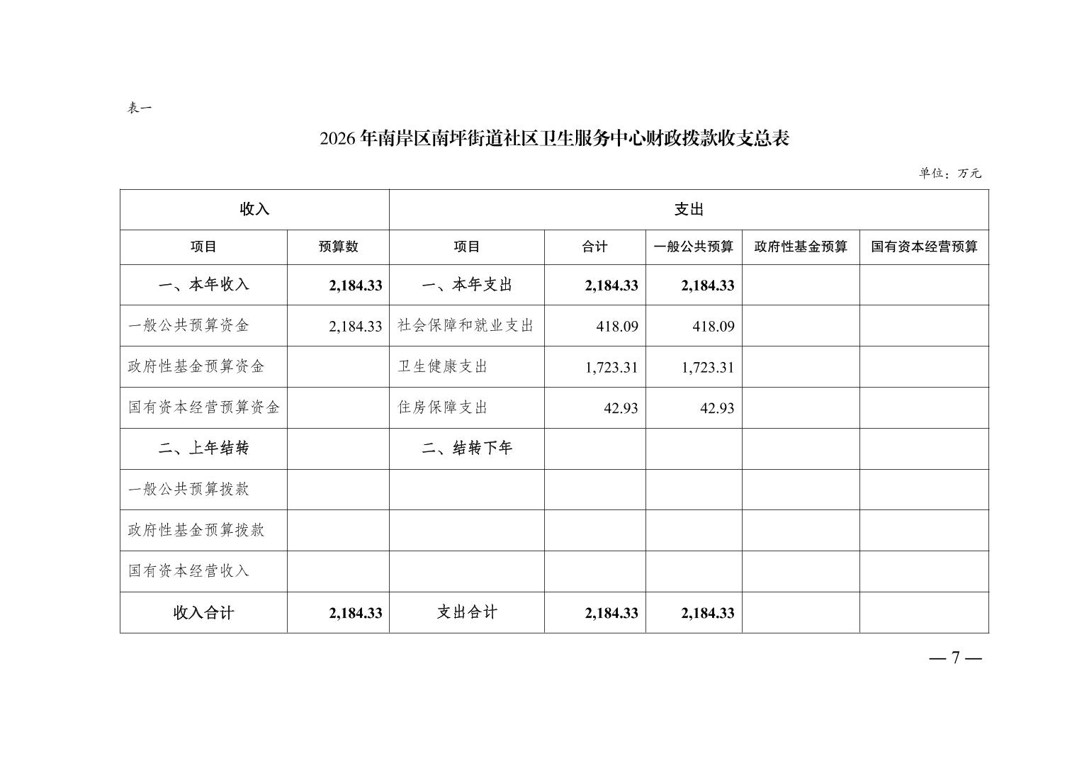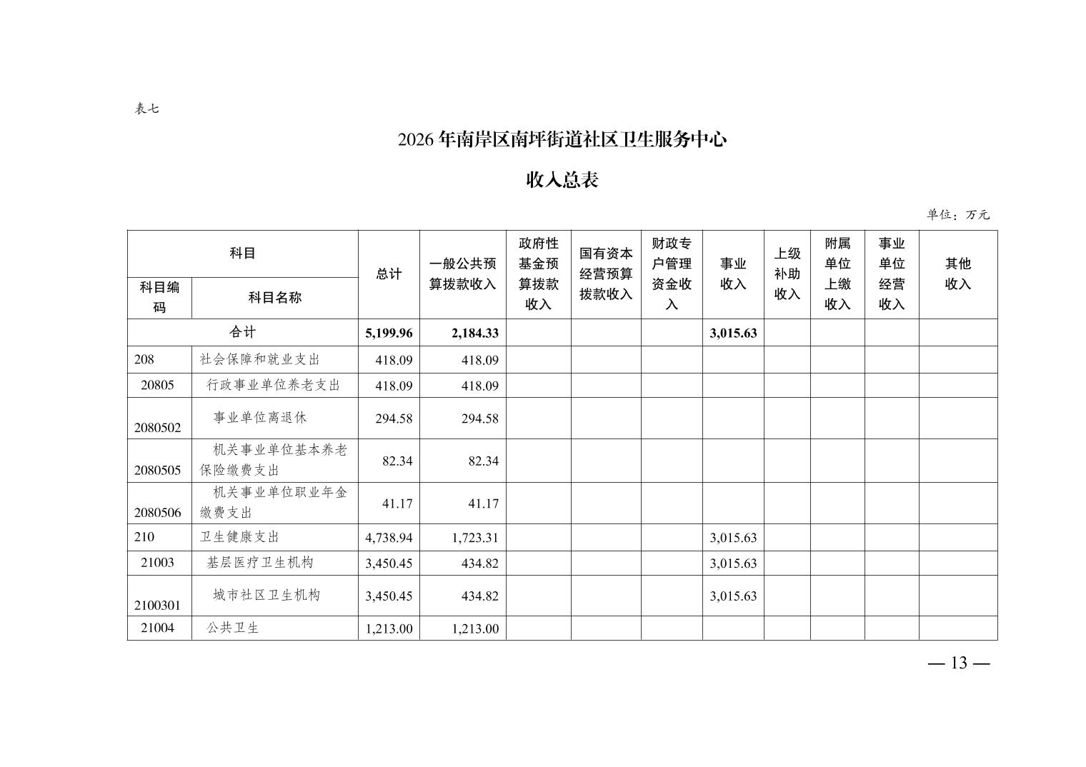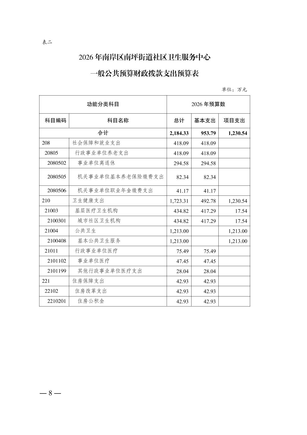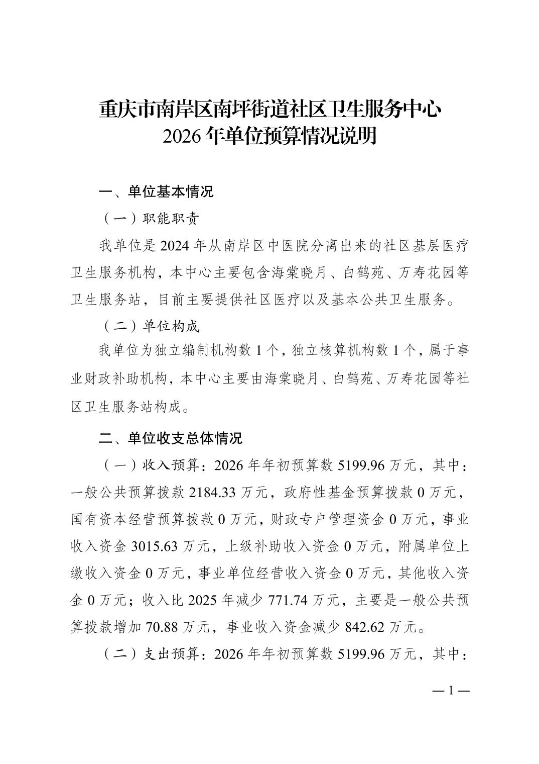 重庆市南岸区南坪街道社区卫生服务中心2026年单位预算情况说明