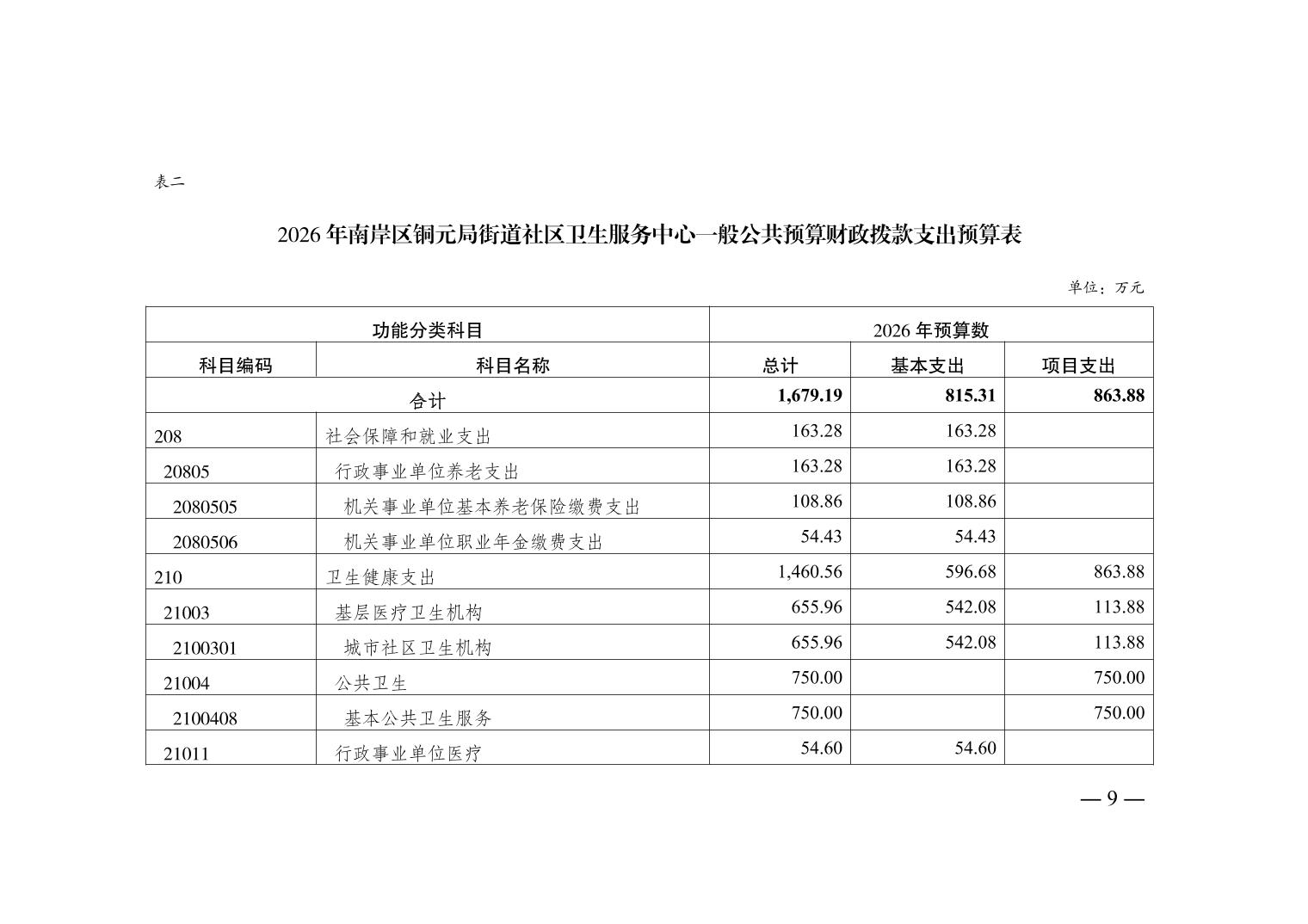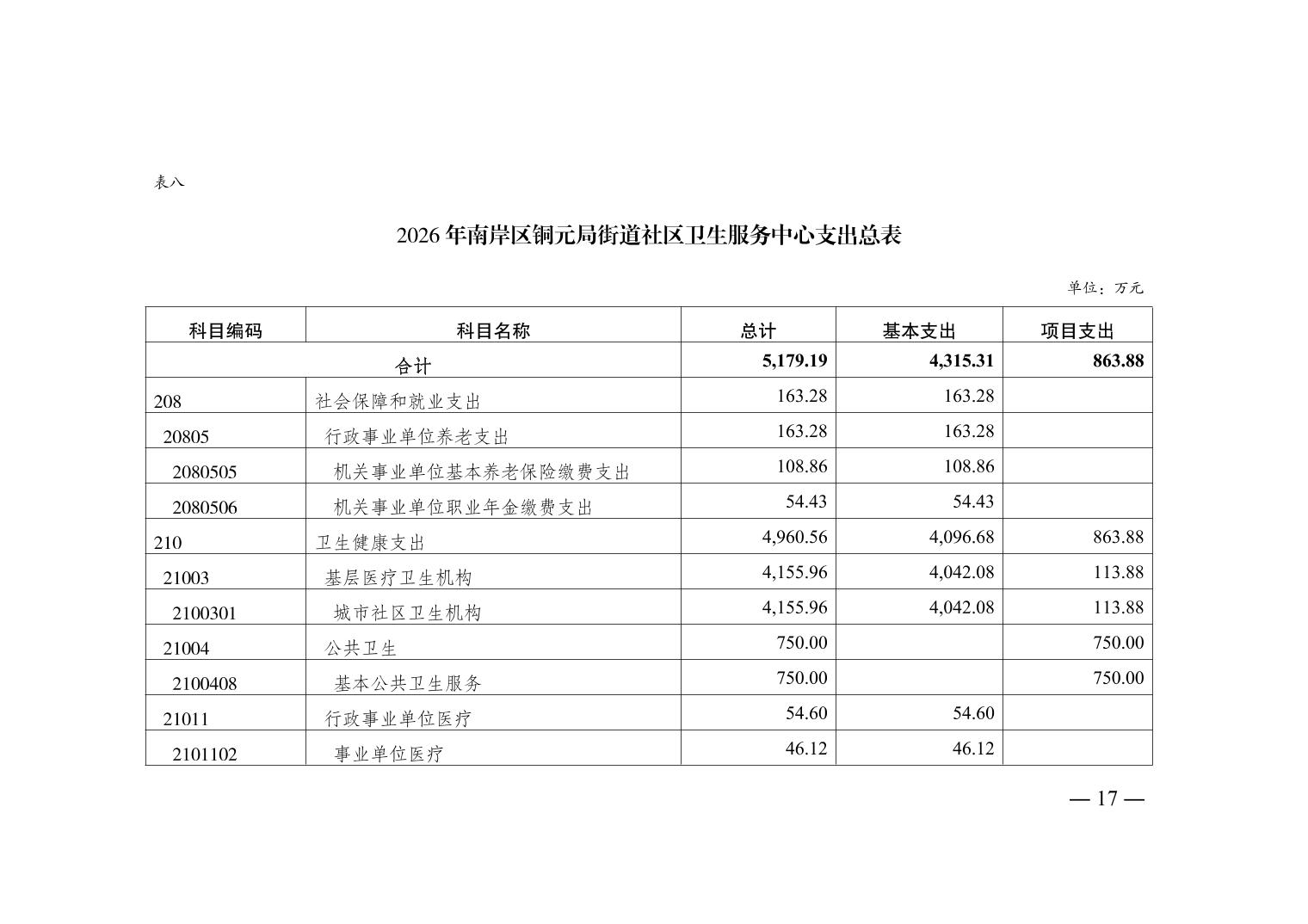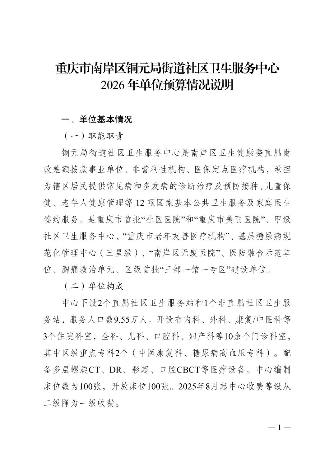 重庆市南岸区铜元局街道社区卫生服务中心2026年单位预算情况说明