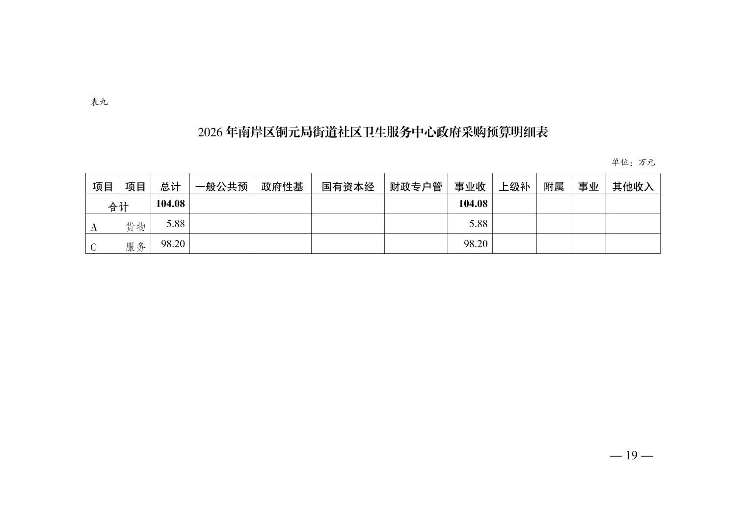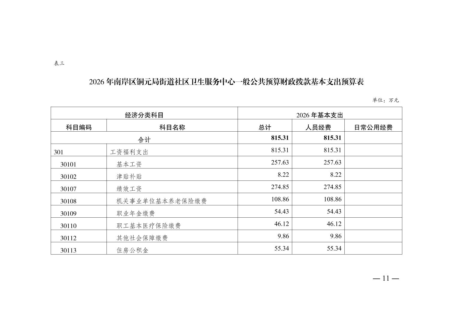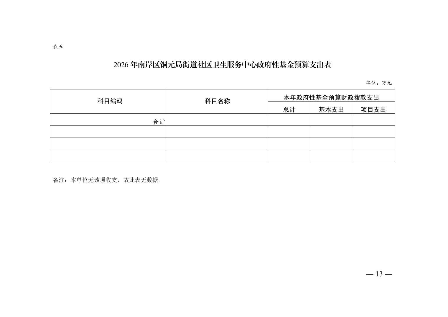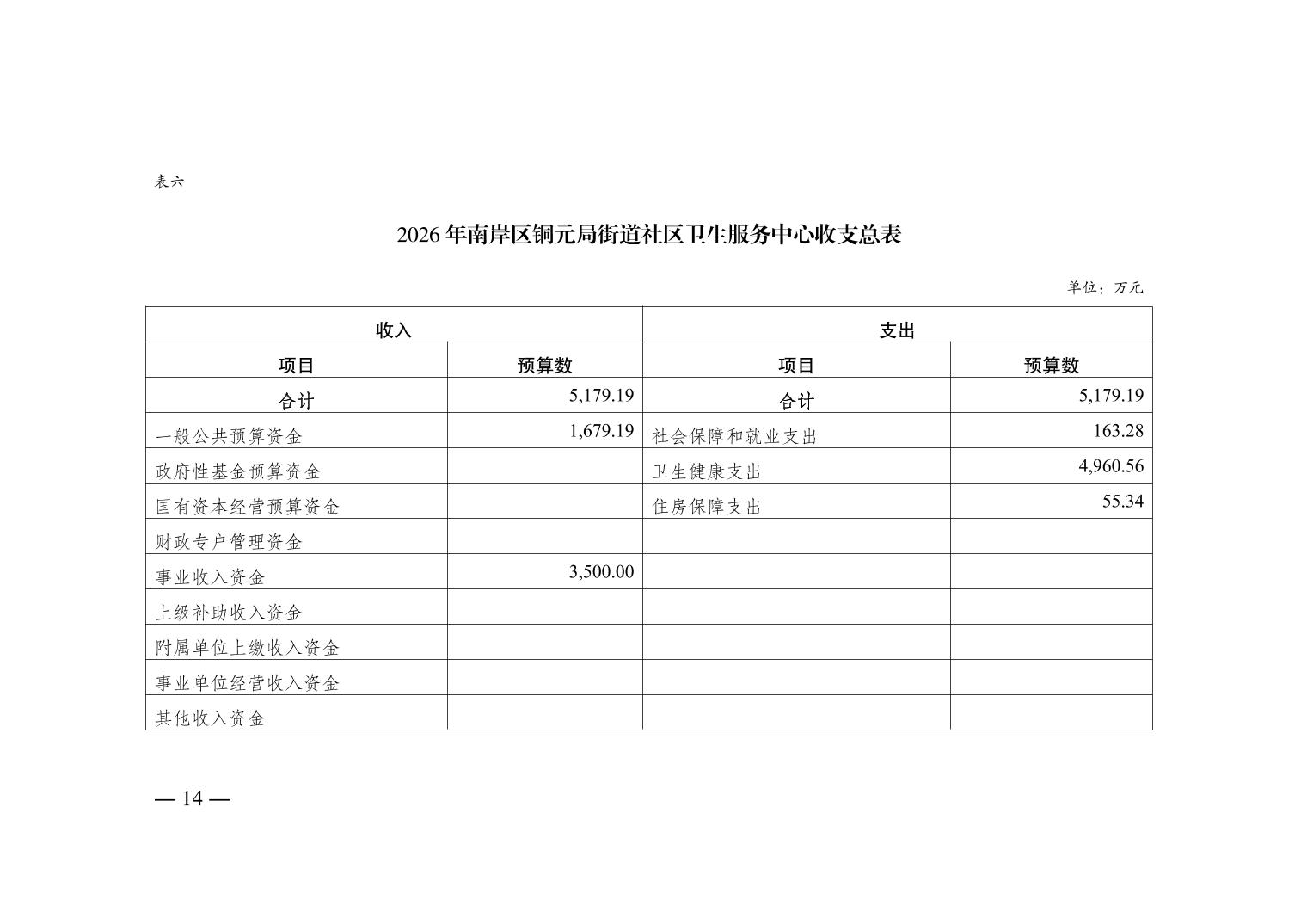重庆市南岸区铜元局街道社区卫生服务中心2026年单位预算情况说明