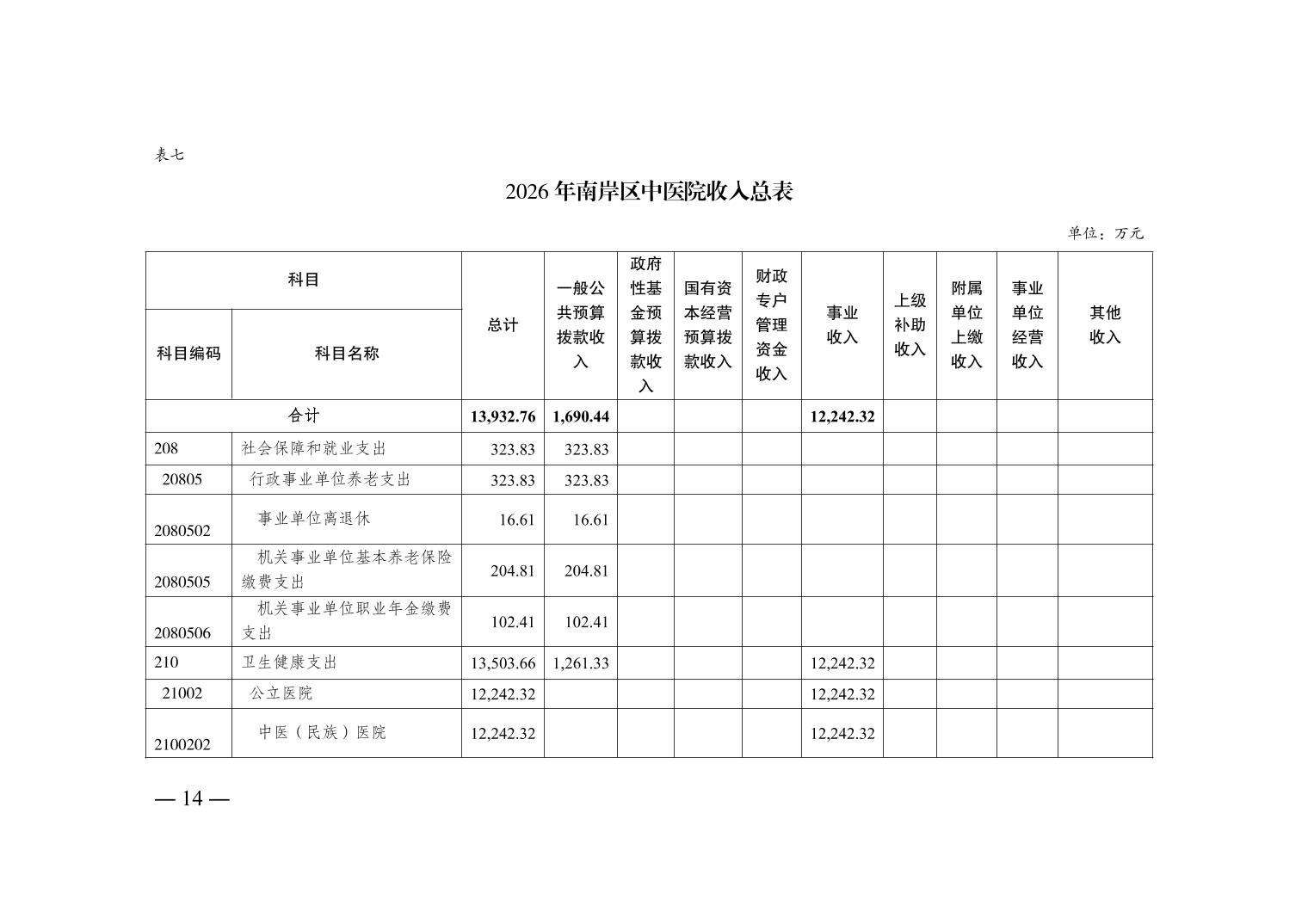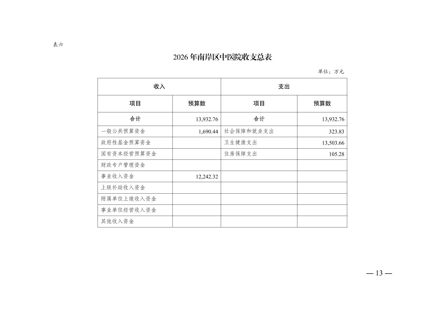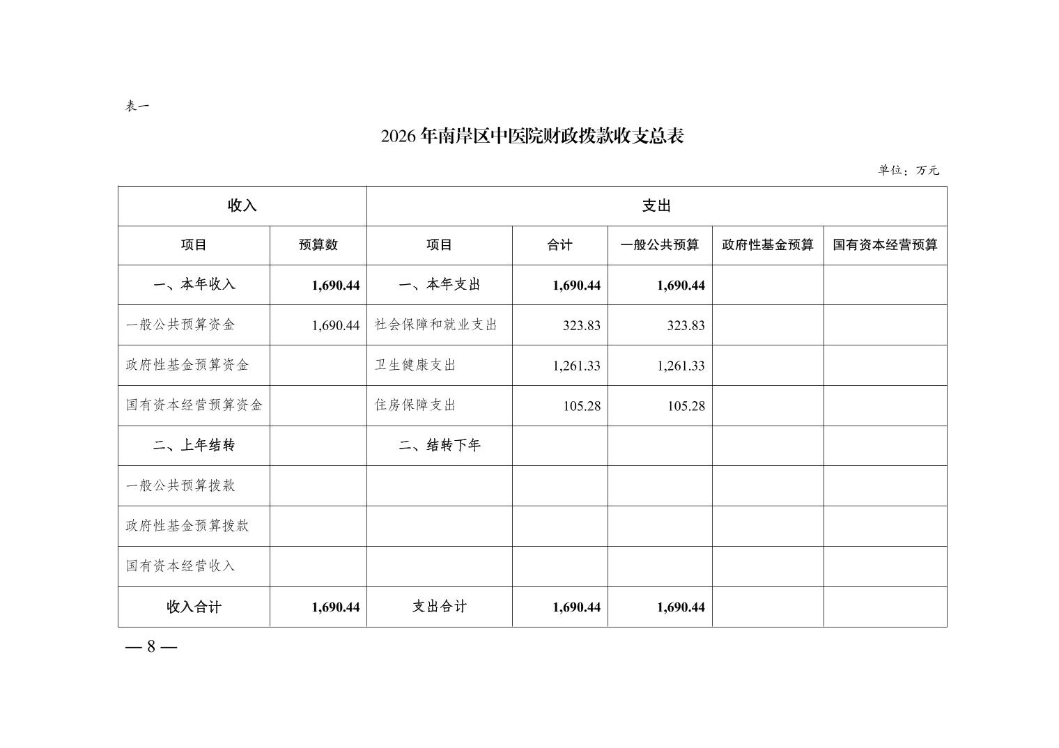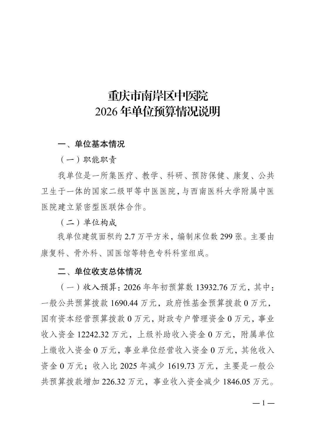 重庆市南岸区中医院2026年单位预算情况说明