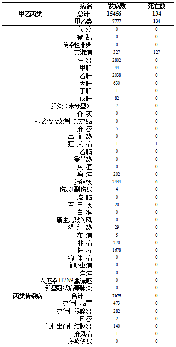 甲类传染病无发病、死亡报告。