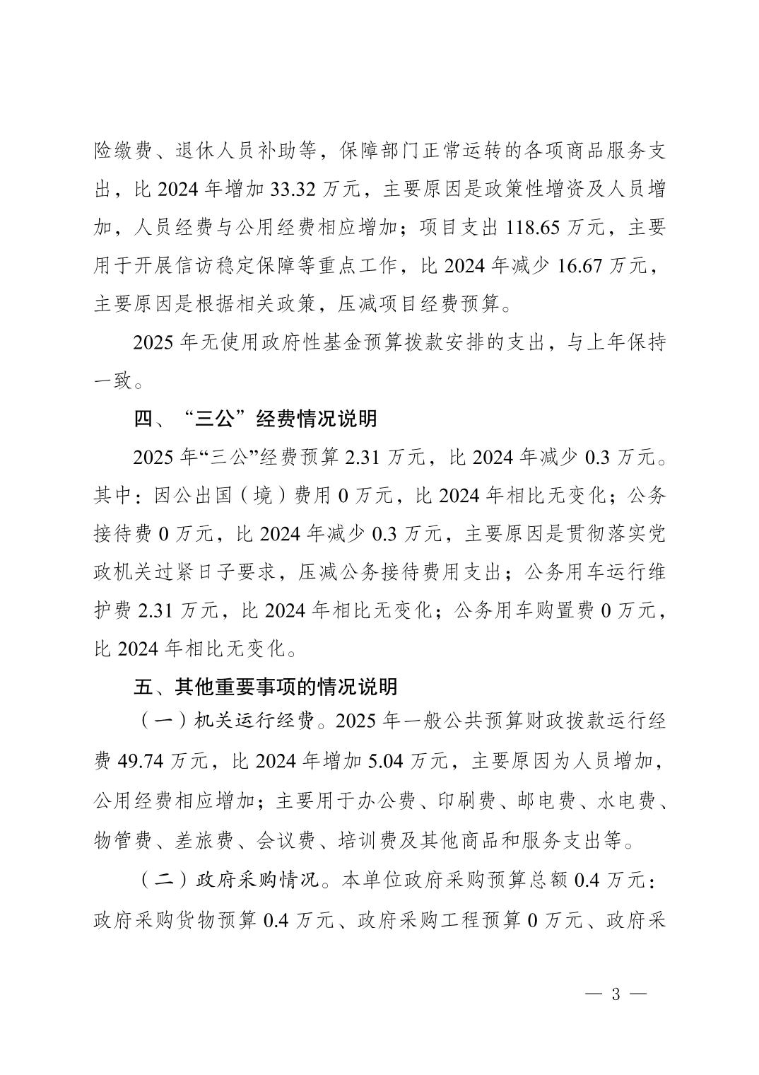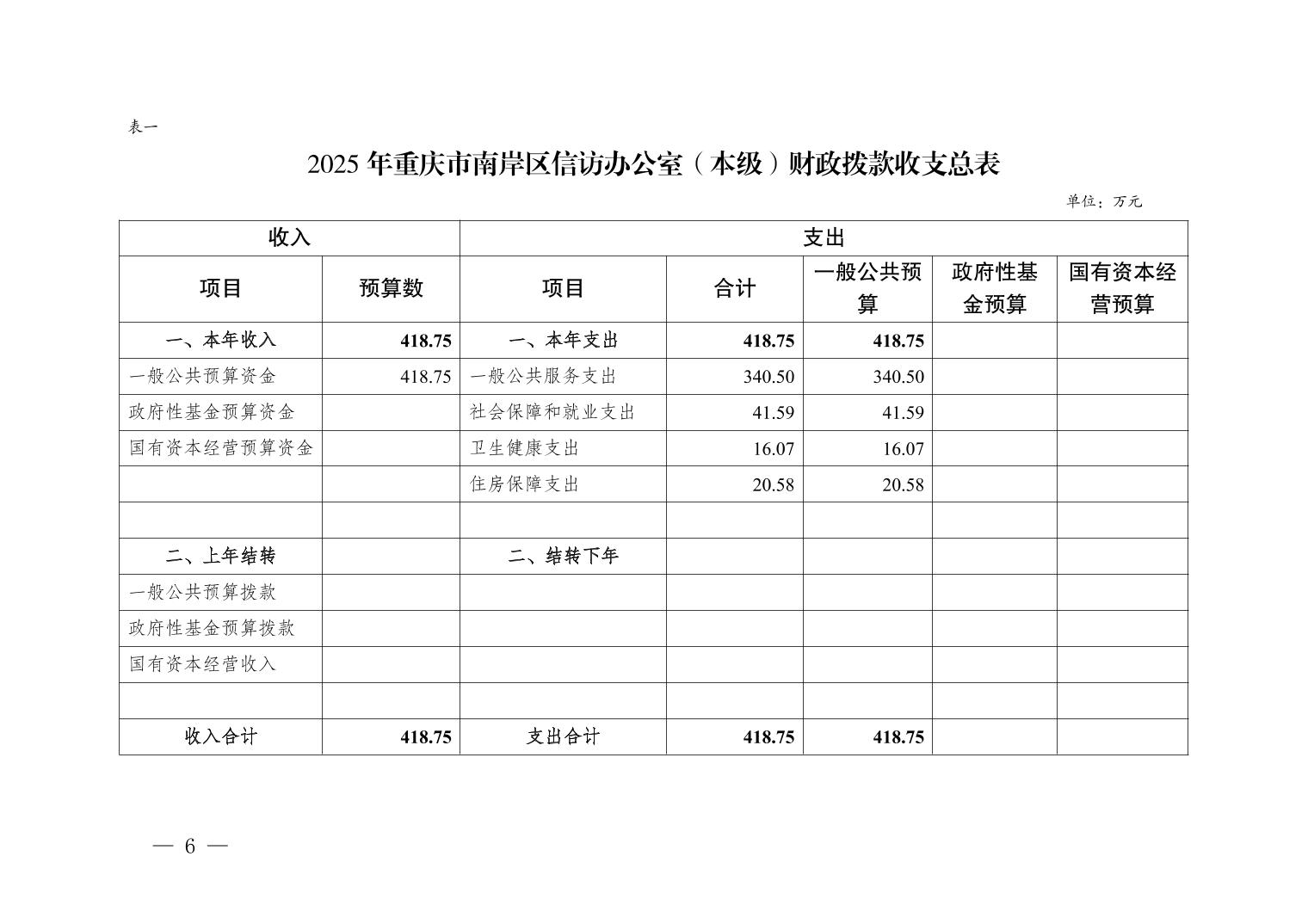 重庆市南岸区信访办公室2025年单位预算情况说明