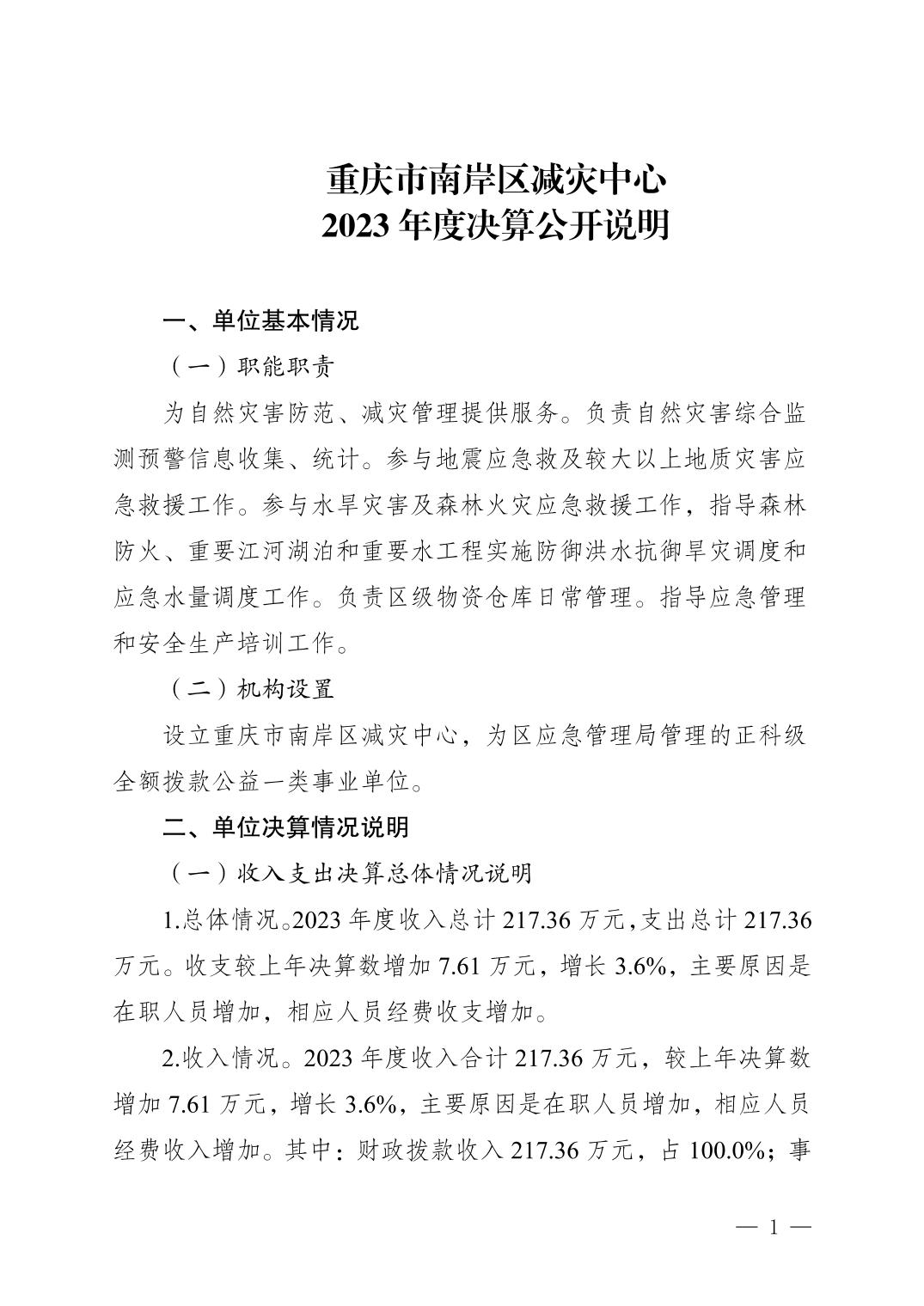 重庆市南岸区减灾中心2023年度决算公开说明