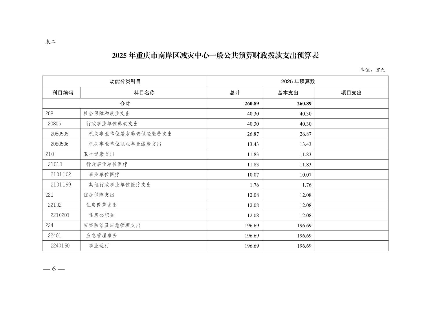 重庆市南岸区减灾中心2025年单位预算情况说明