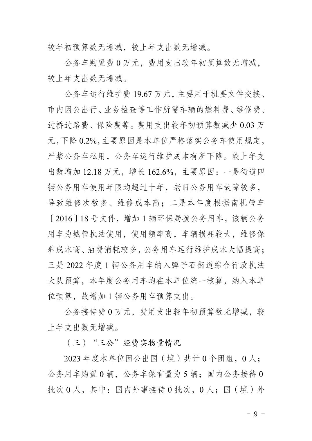 重庆市南岸区人民政府弹子石街道办事处(本级)2023年度决算公开说明