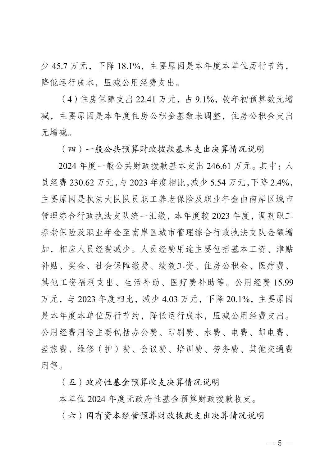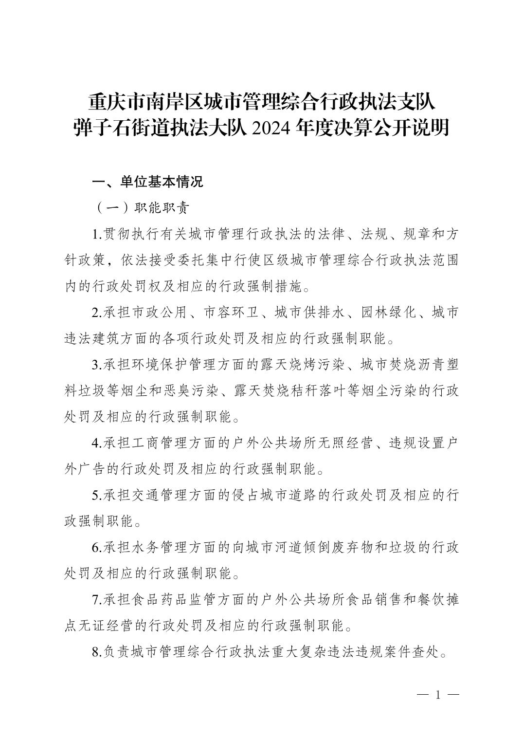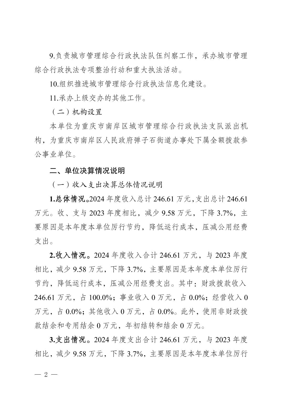重庆市南岸区城市管理综合行政执法支队弹子石街道执法大队2024年度决算公开说明
