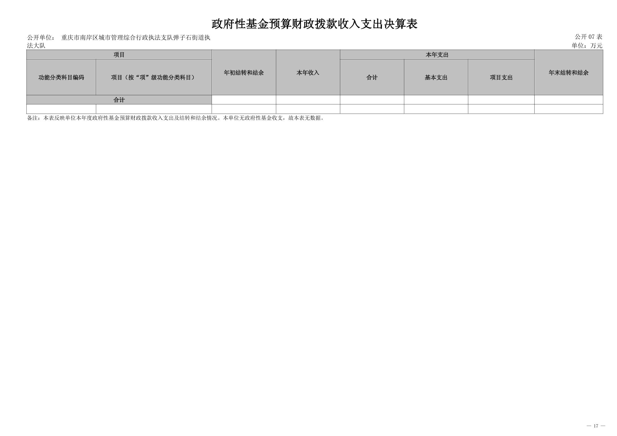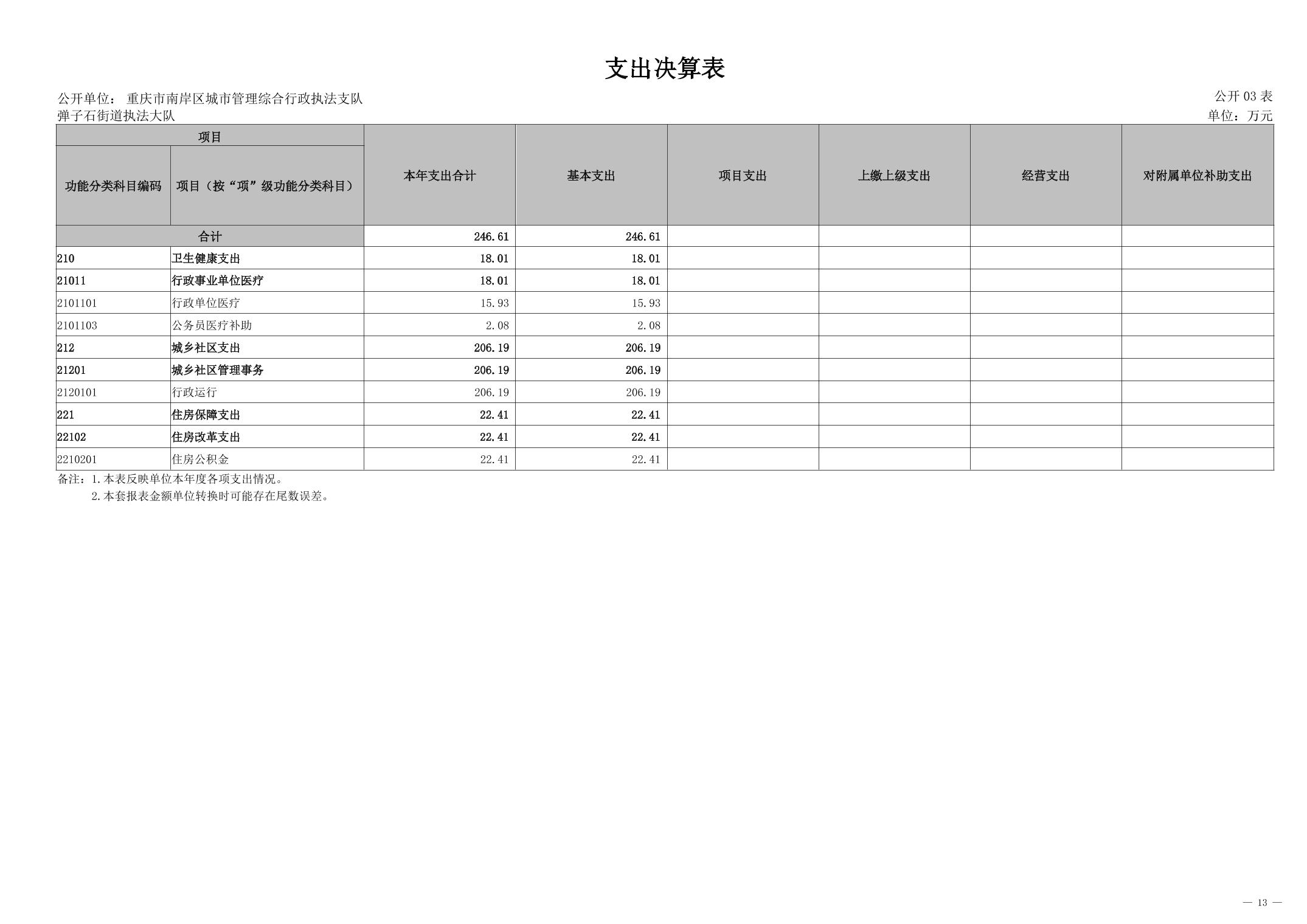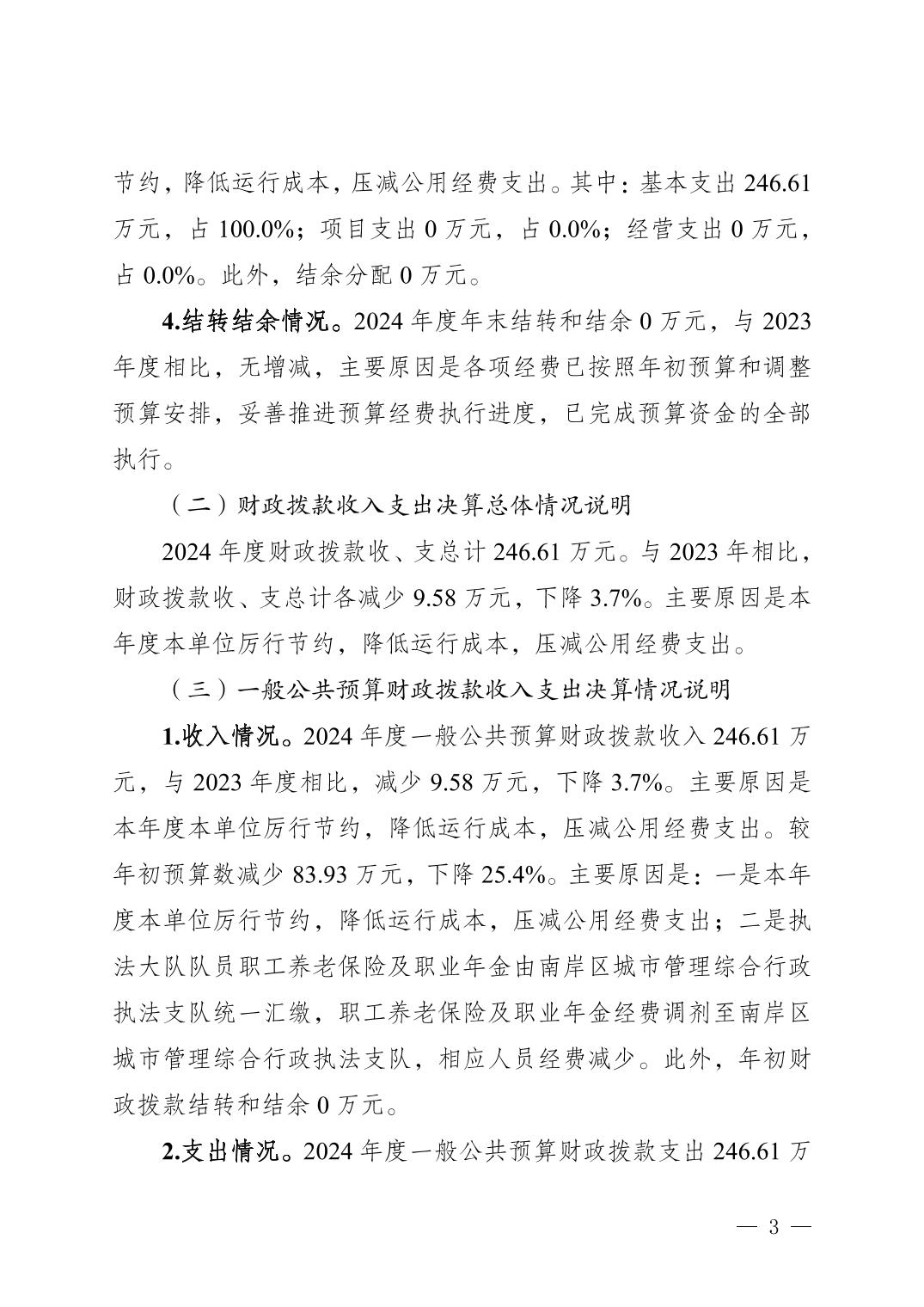 重庆市南岸区城市管理综合行政执法支队弹子石街道执法大队2024年度决算公开说明