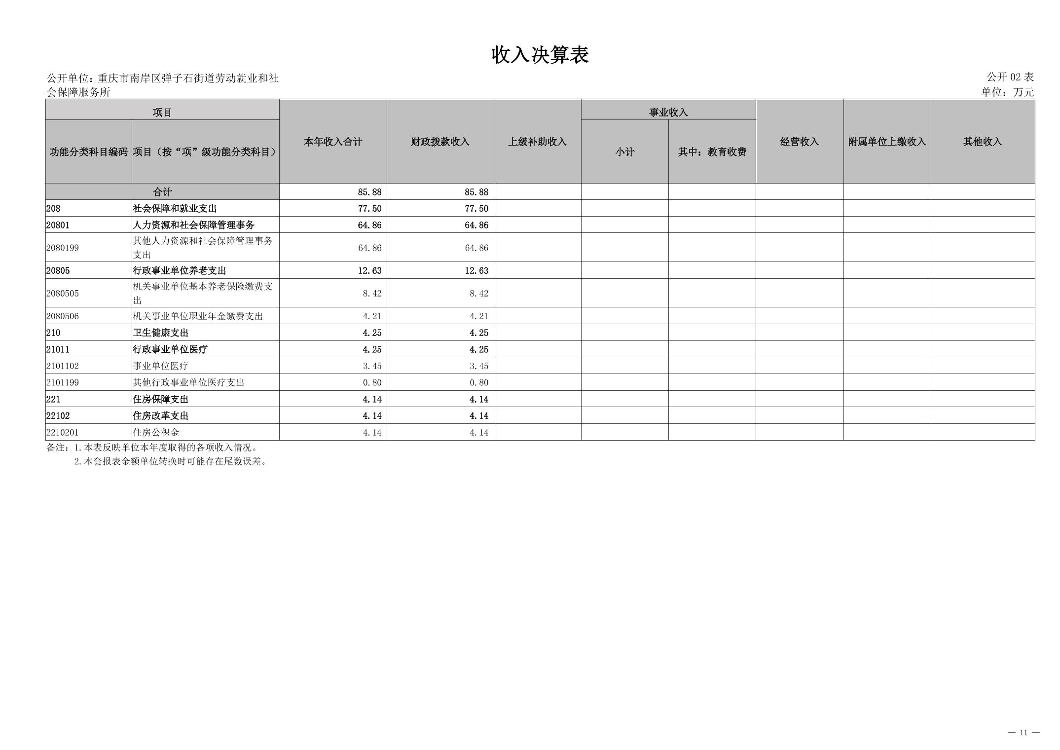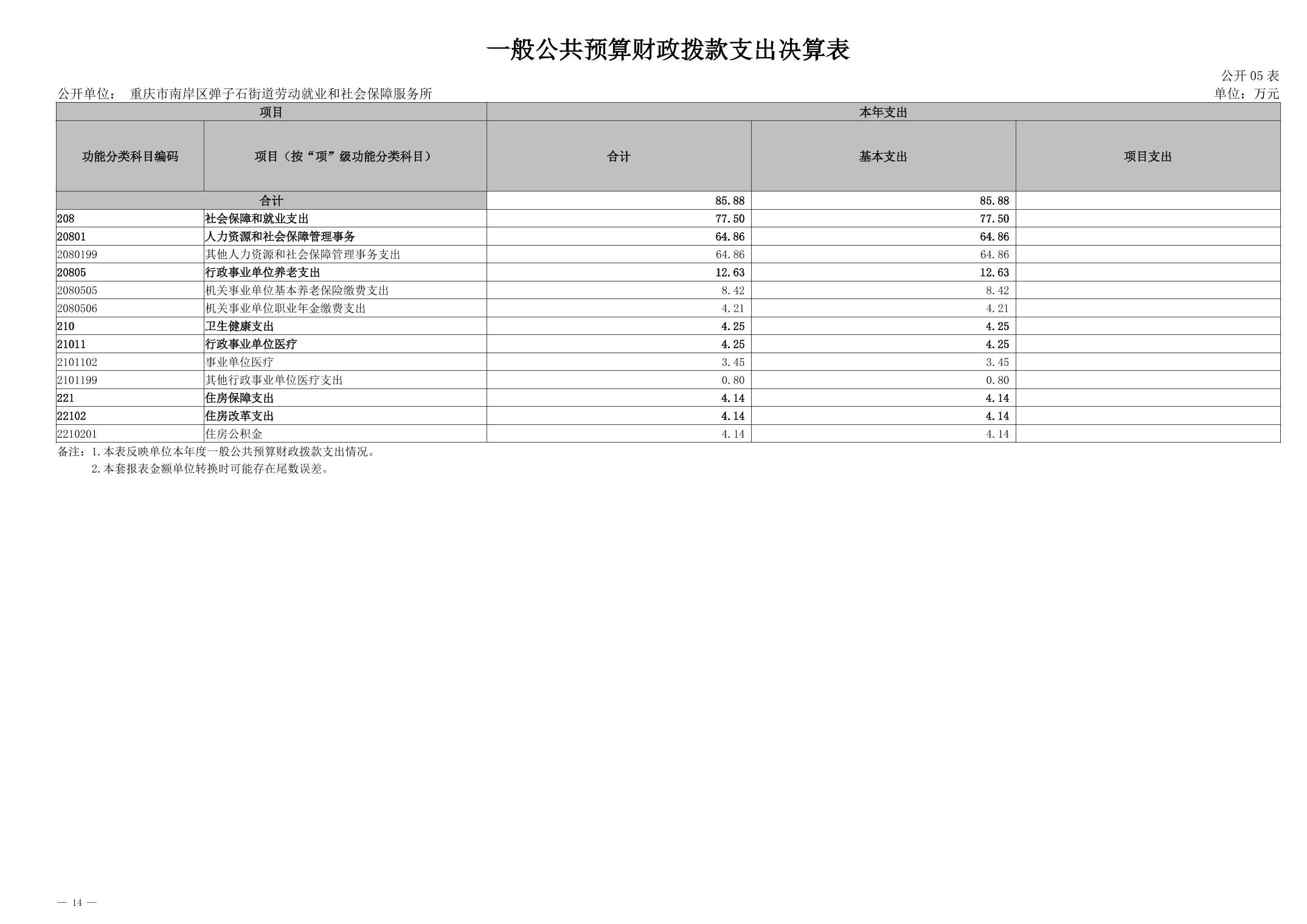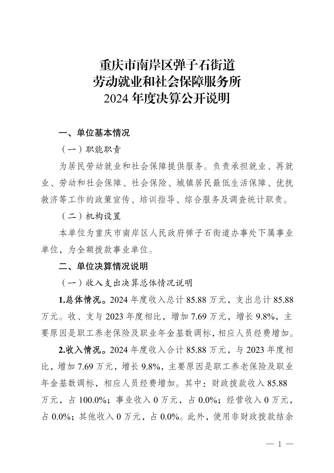 重庆市南岸区弹子石街道劳动就业和社会保障服务所2024年度决算公开说明