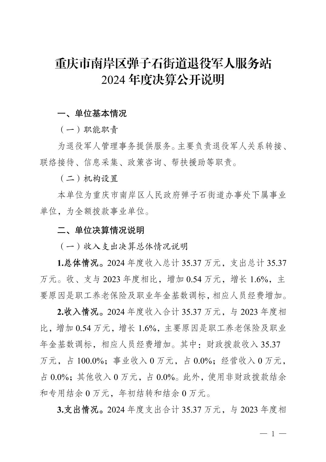 重庆市南岸区弹子石街道退役军人服务站2024年度决算公开说明