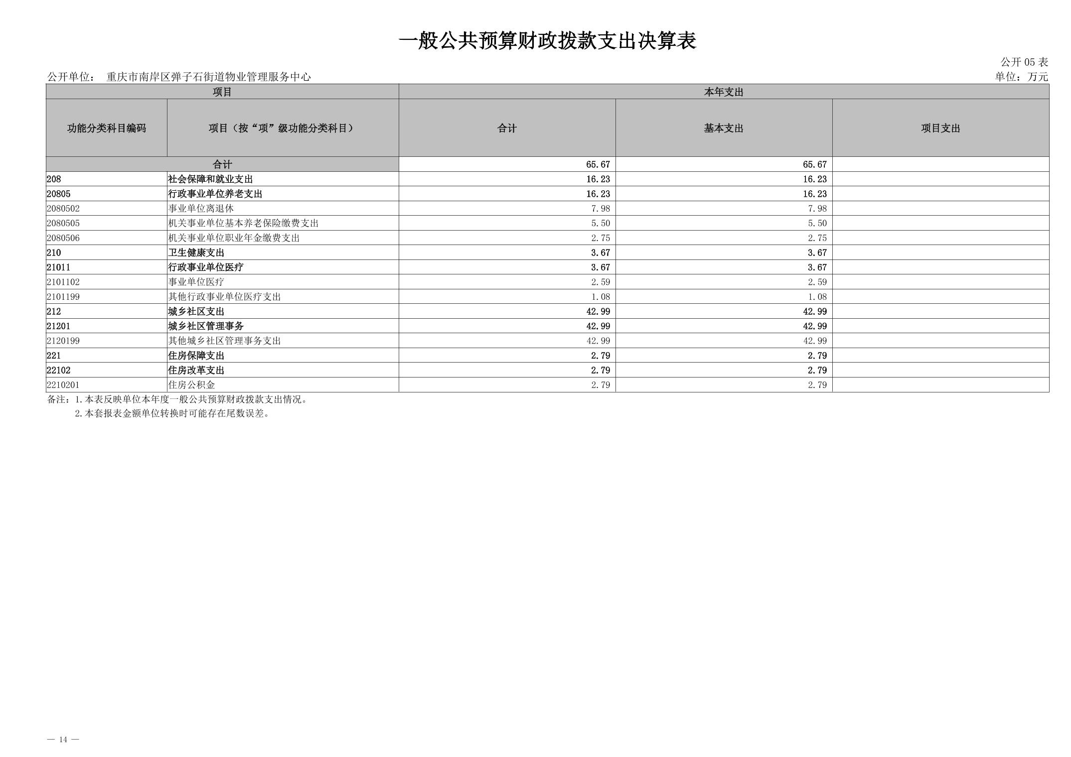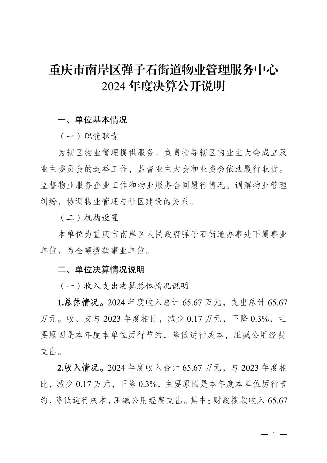 重庆市南岸区弹子石街道物业管理服务中心2024年度决算公开说明