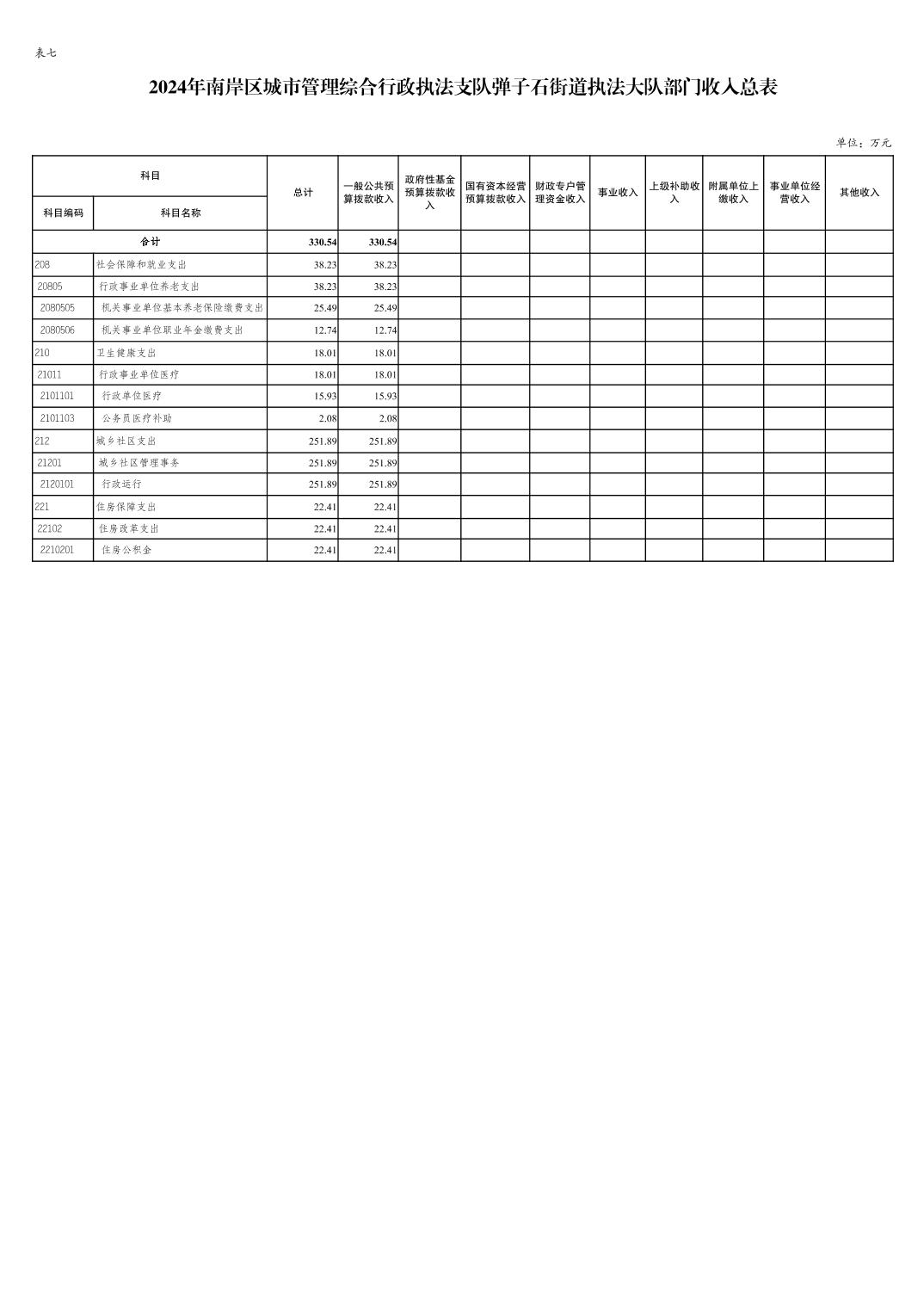 重庆市南岸区城市管理综合行政执法支队弹子石街道执法大队2024年单位预算情况说明