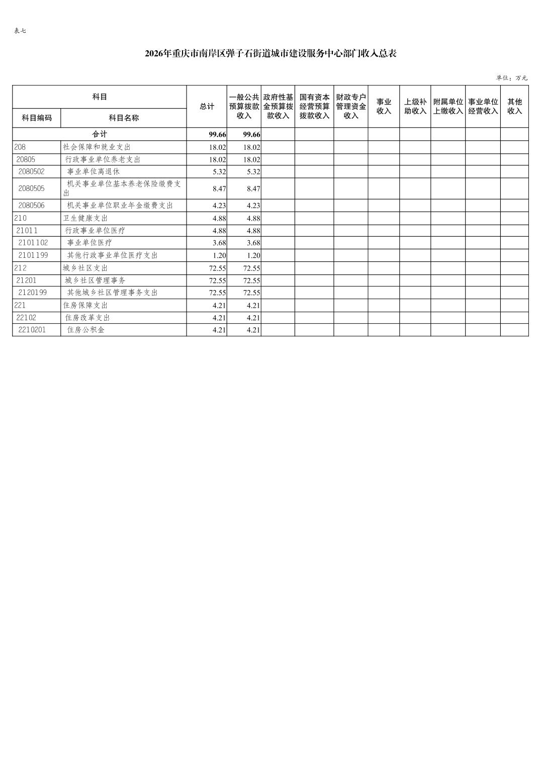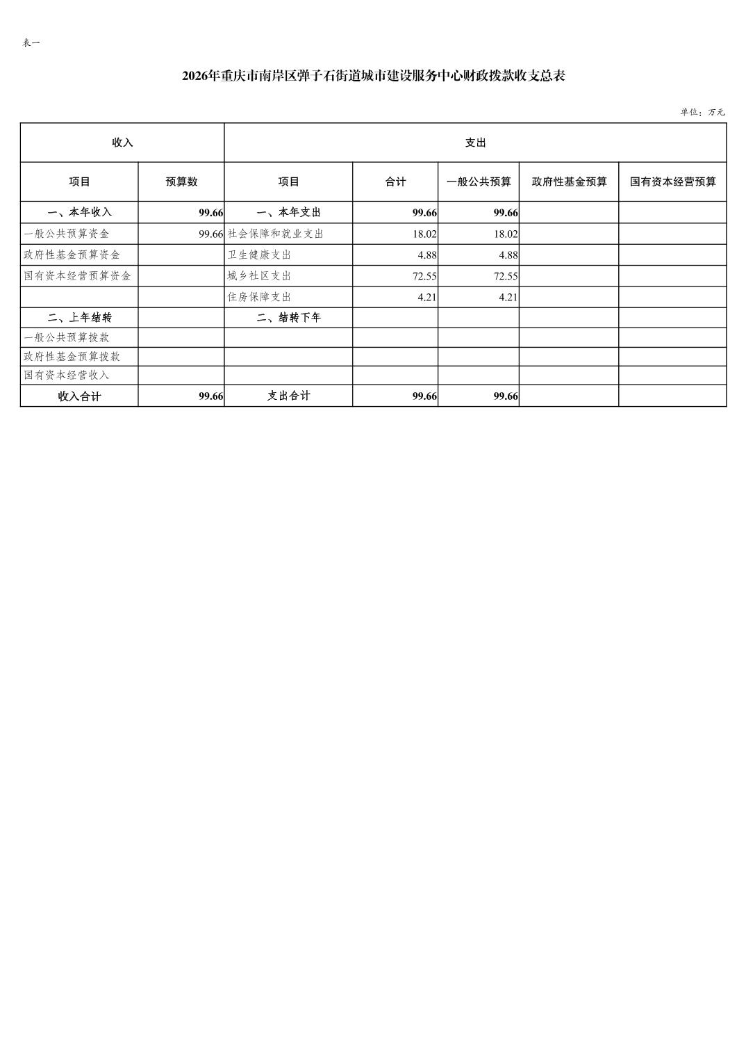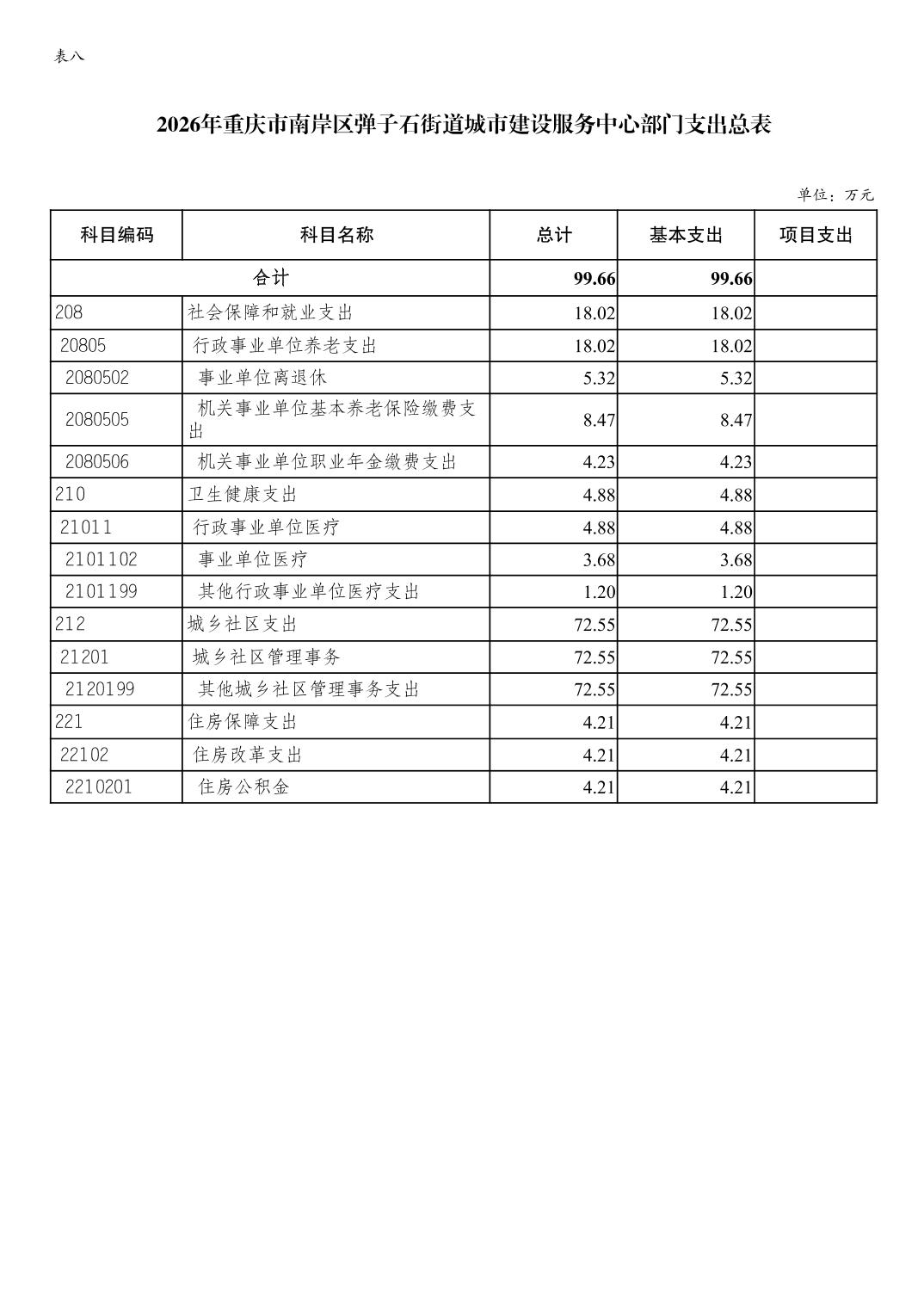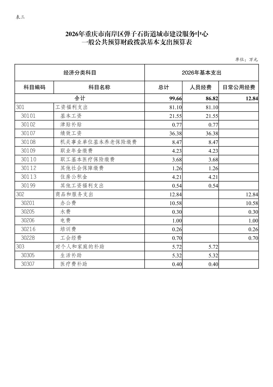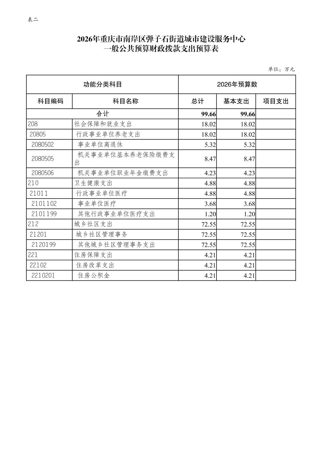 重庆市南岸区弹子石街道城市建设服务中心2026年单位预算情况说明
