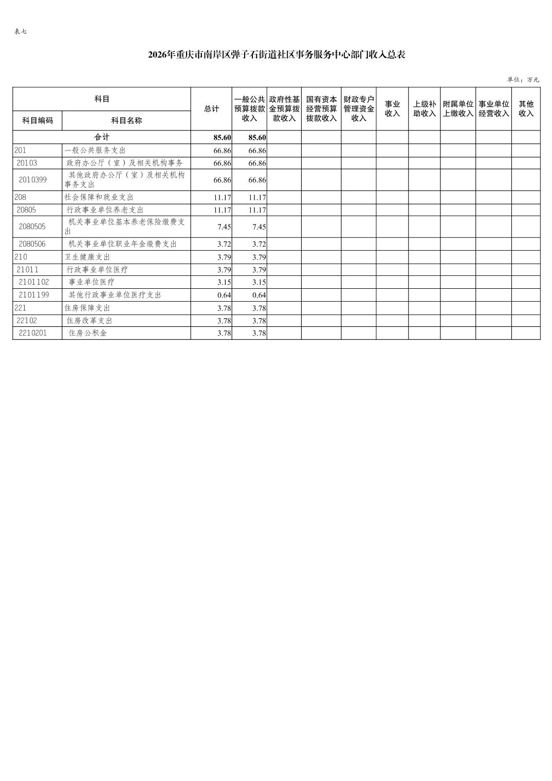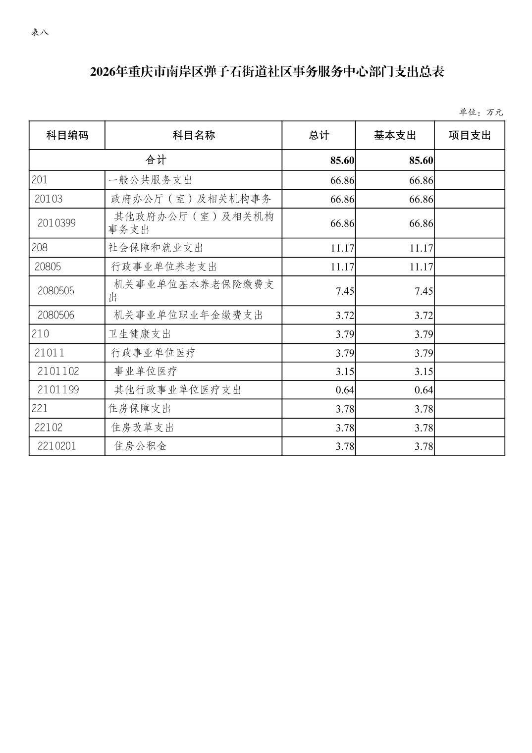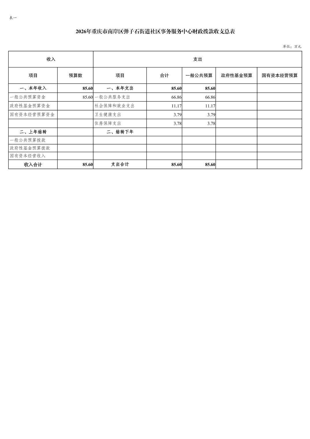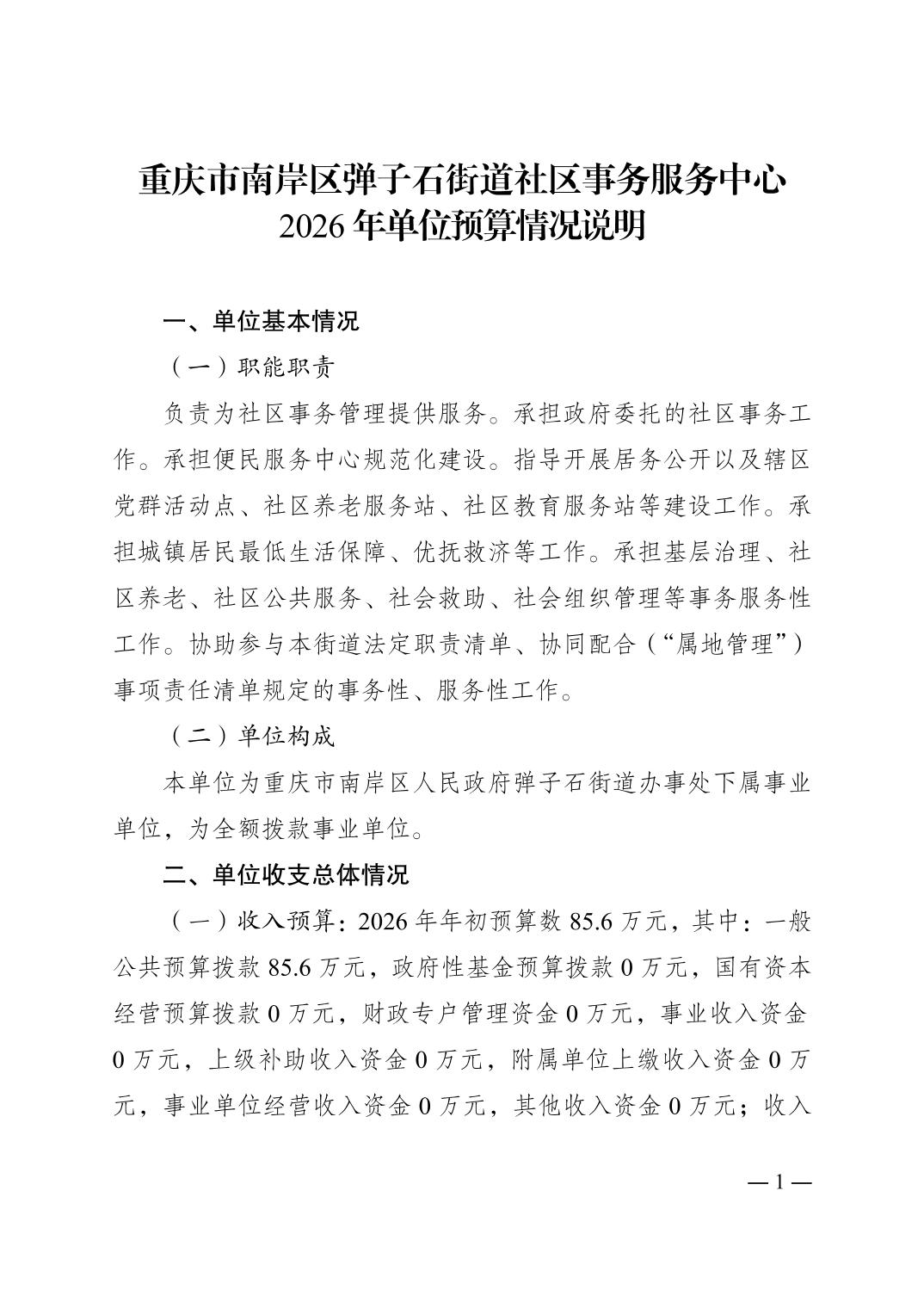 重庆市南岸区弹子石街道社区事务服务中心2026年单位预算情况说明