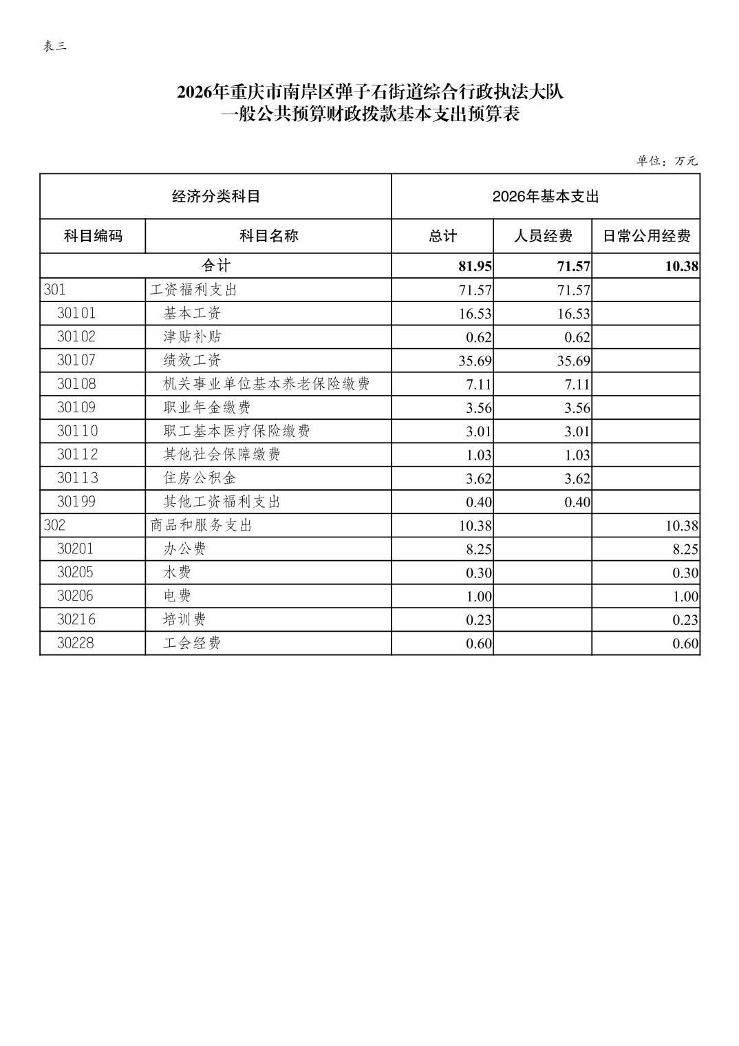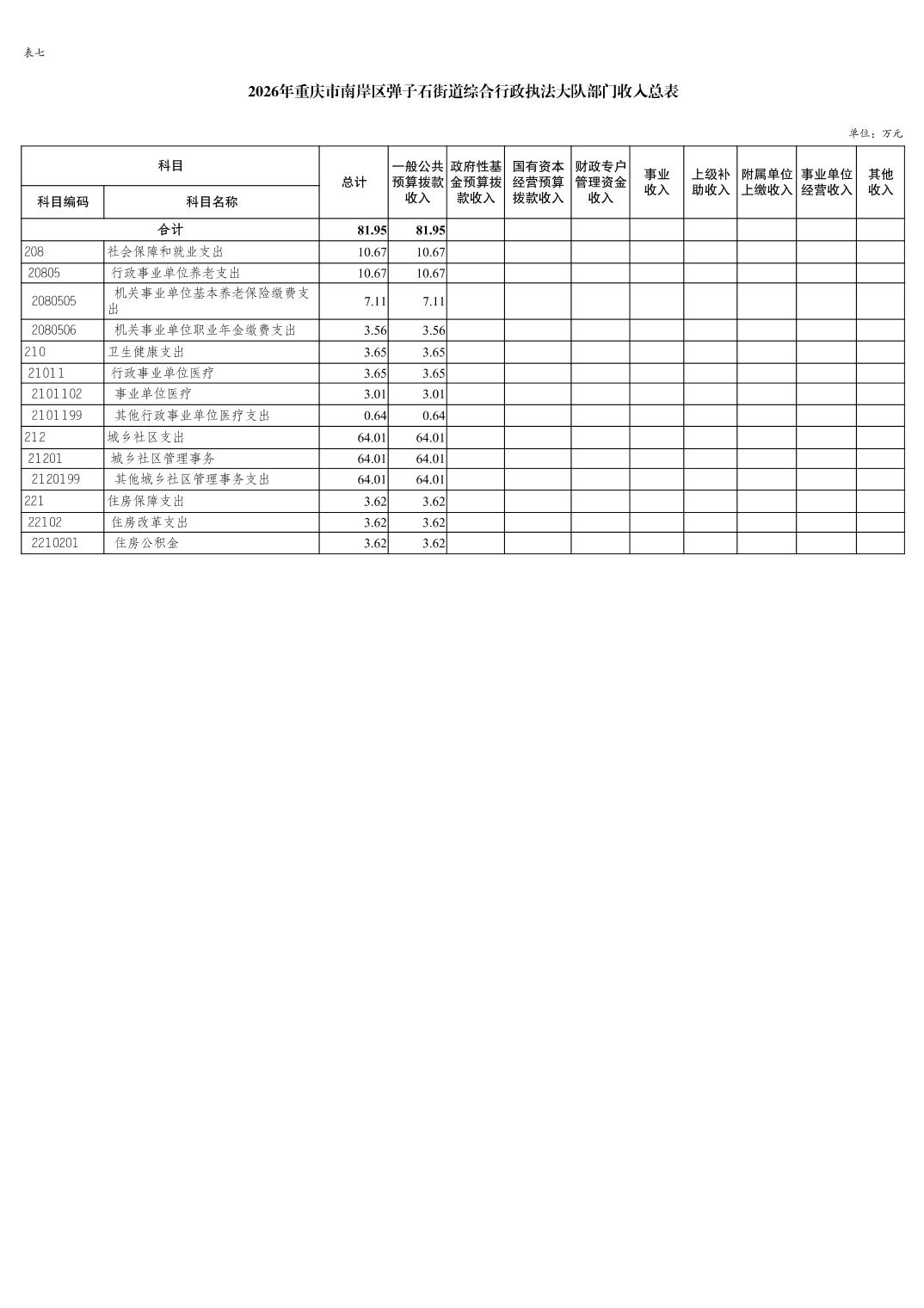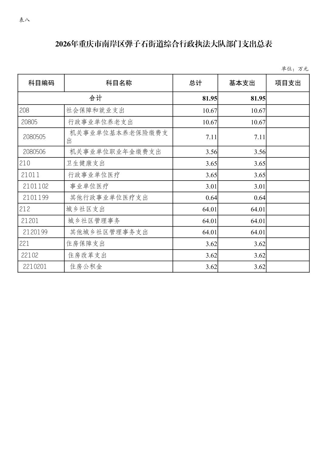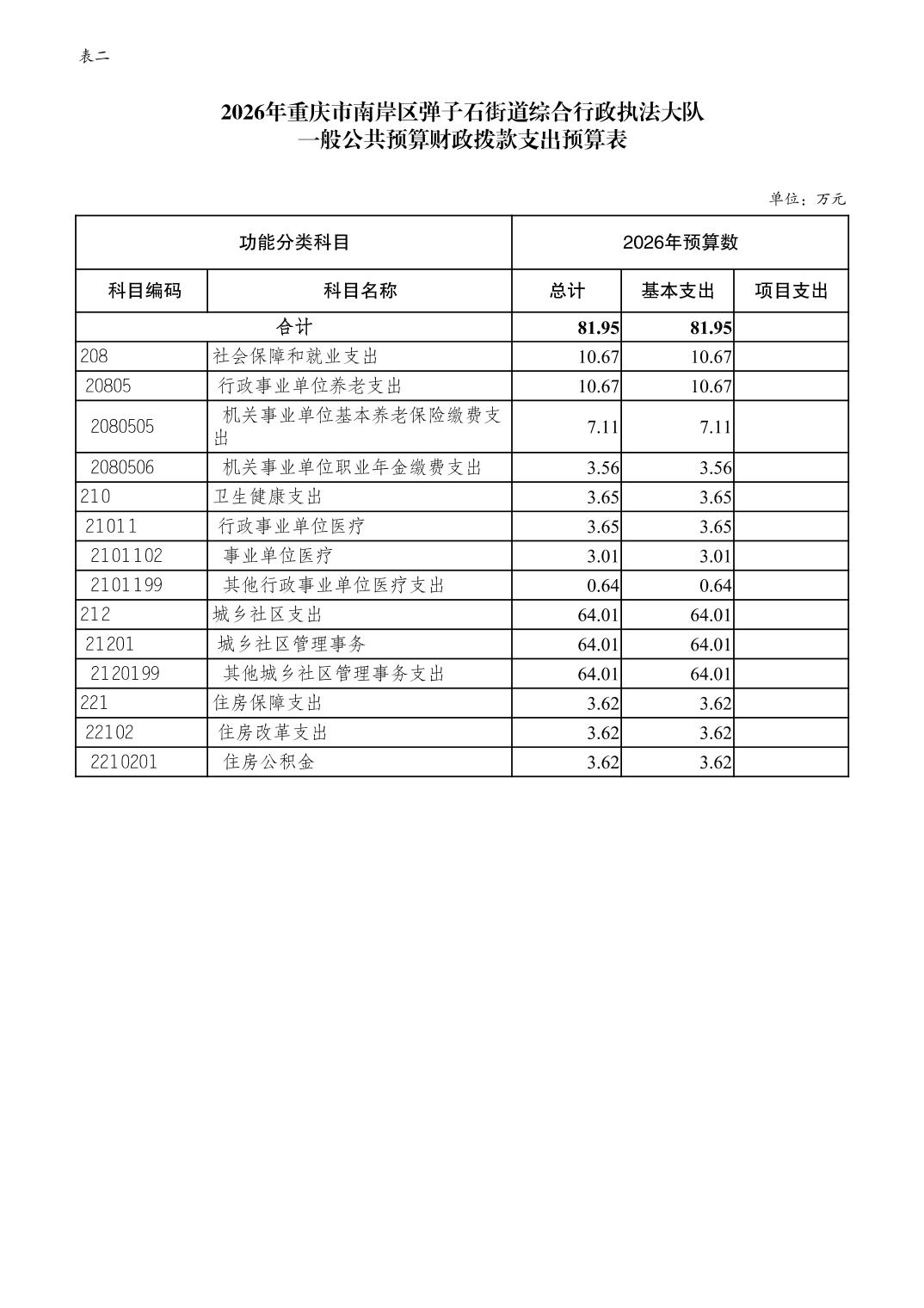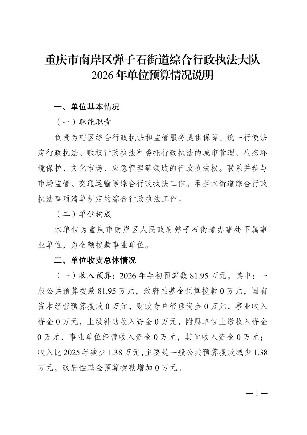 重庆市南岸区弹子石街道综合行政执法大队2026年单位预算情况说明