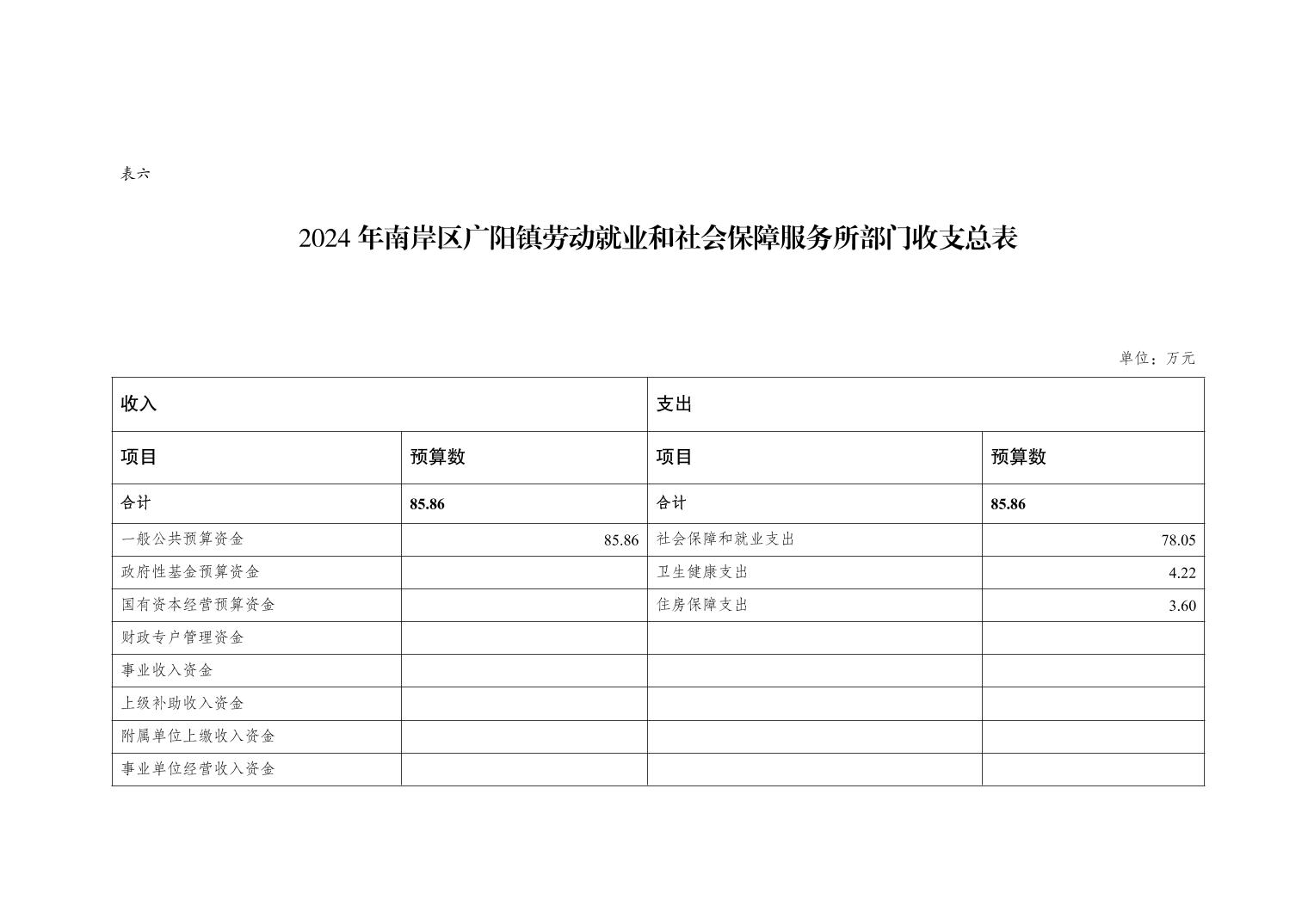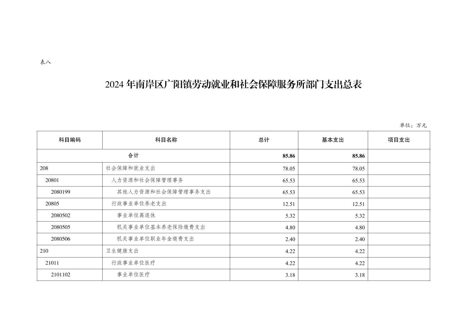 重庆市南岸区广阳镇劳动就业和社会保障服务所2024年单位预算情况说明