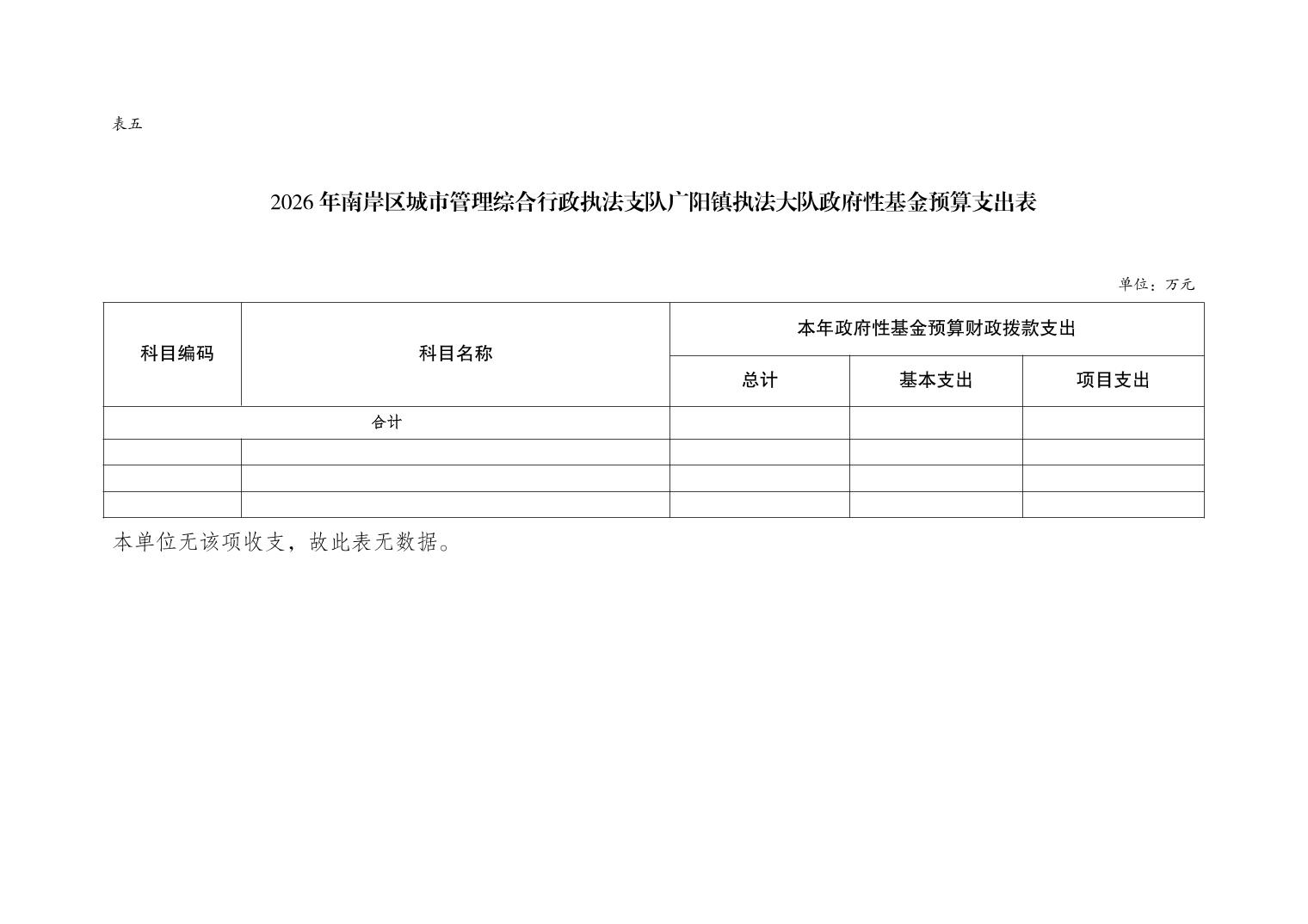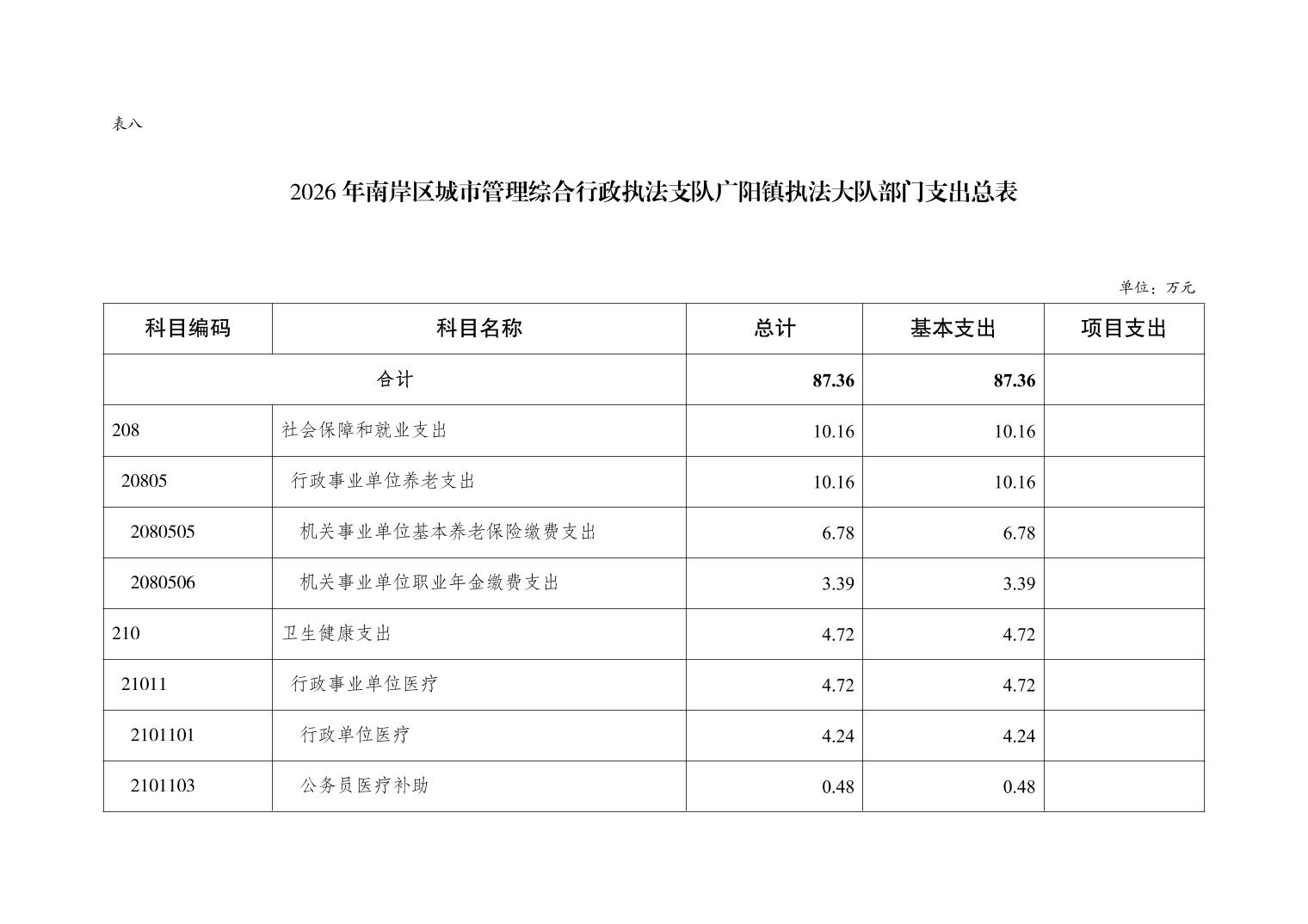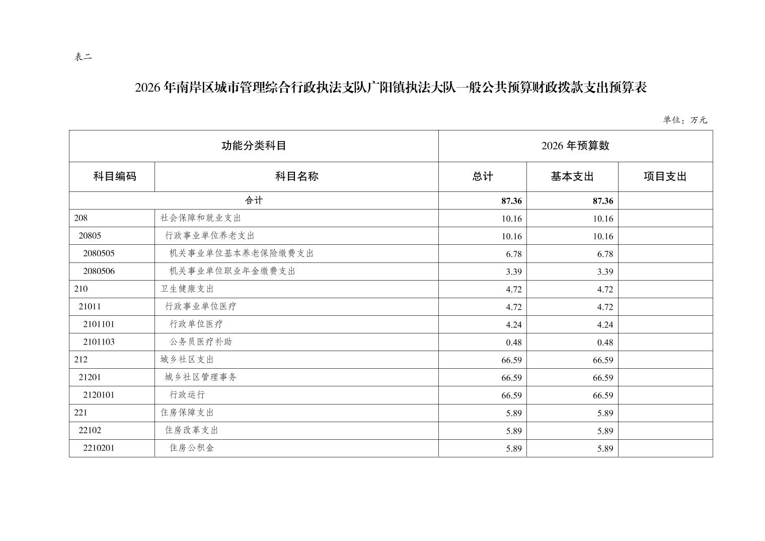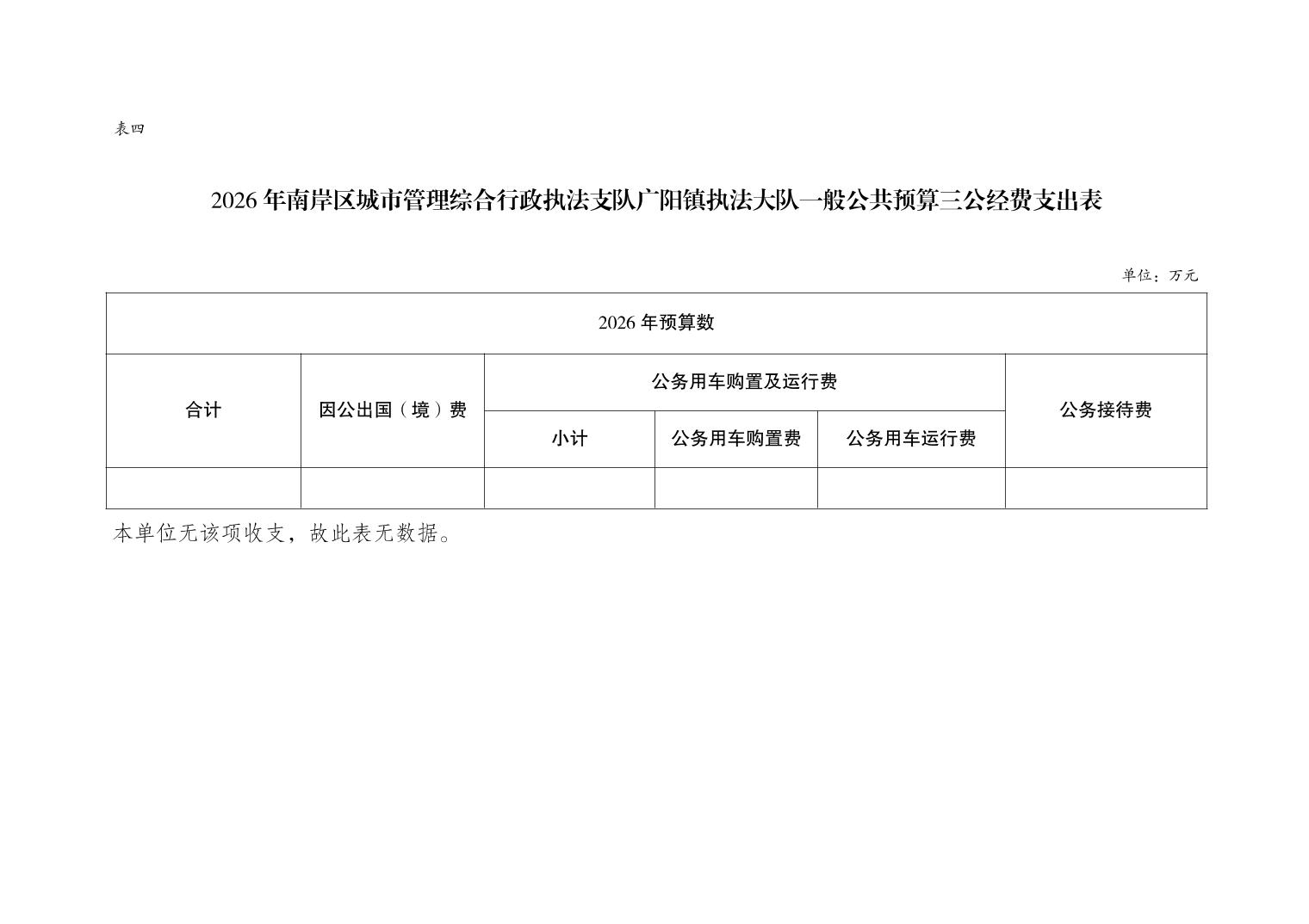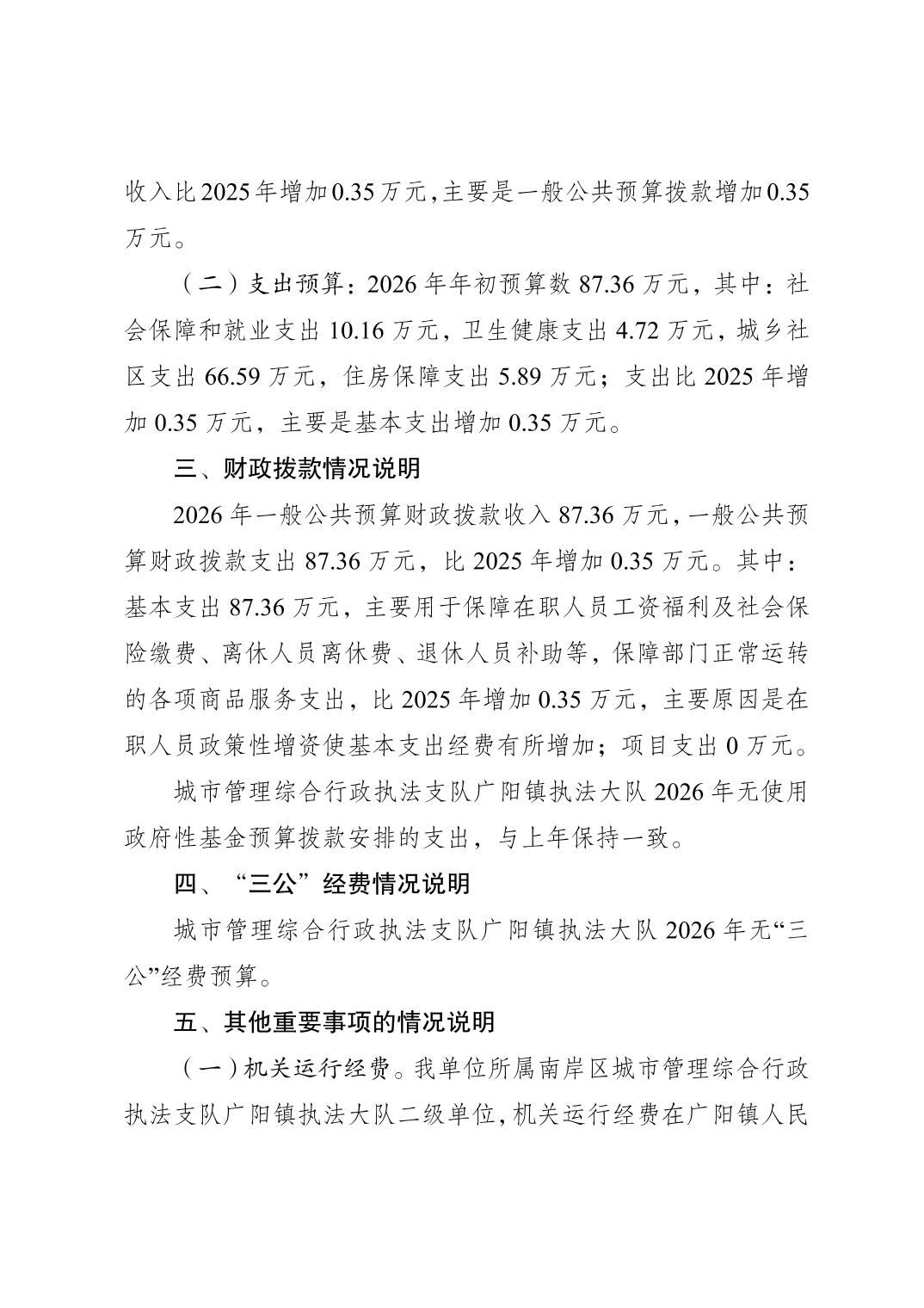 重庆市南岸区城市管理综合行政执法支队广阳镇执法大队2026年单位预算情况说明