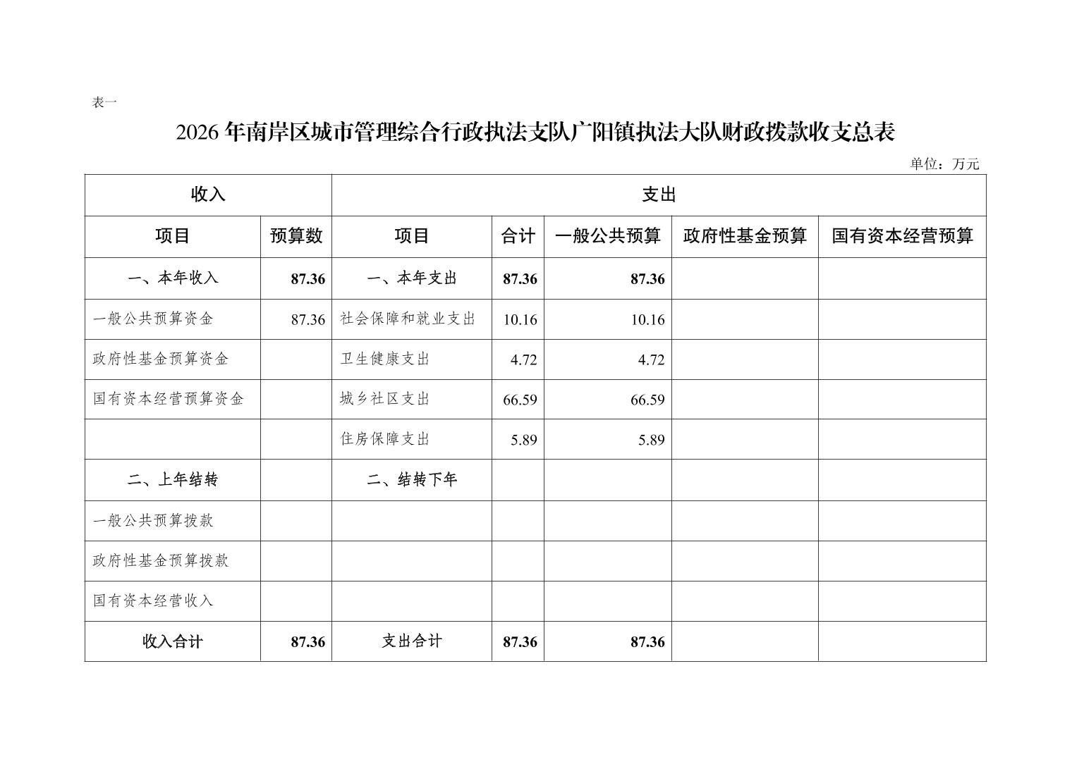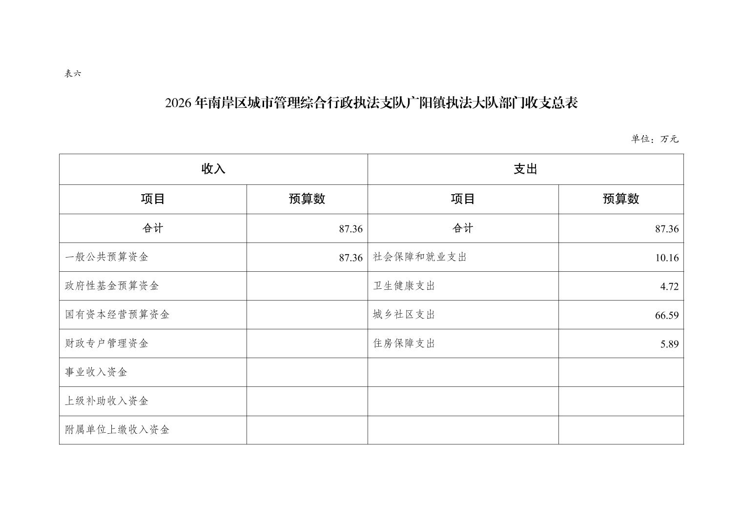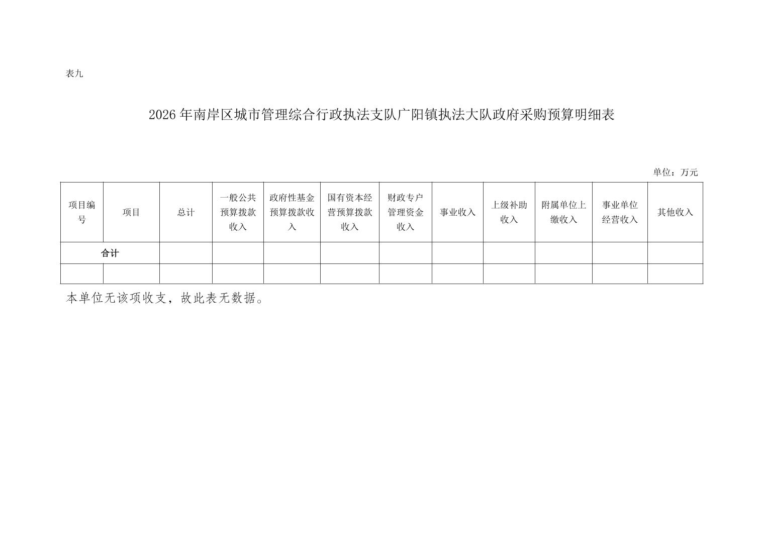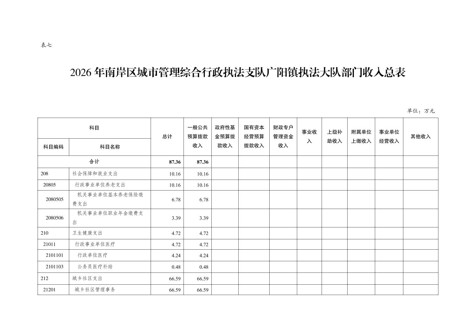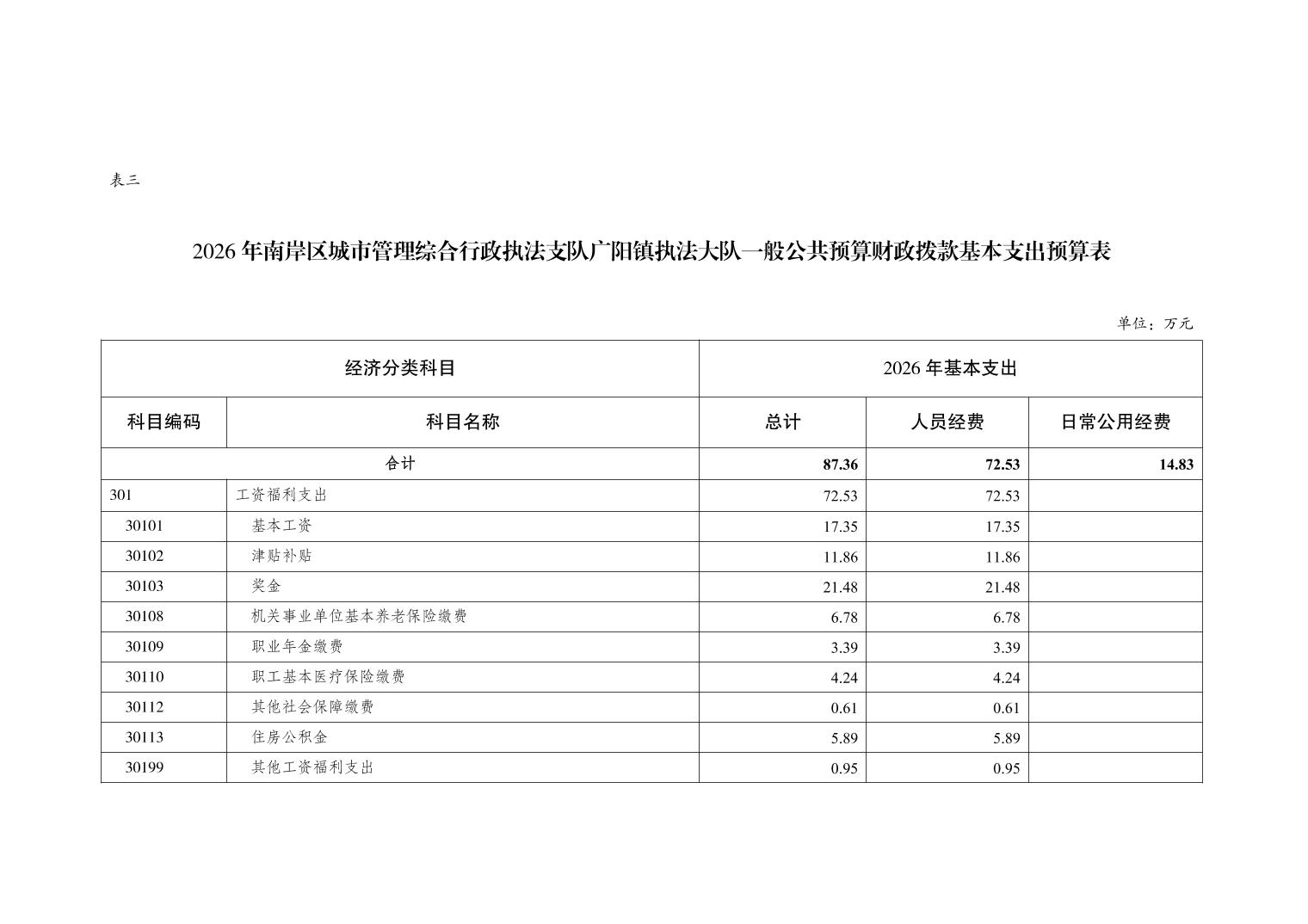 重庆市南岸区城市管理综合行政执法支队广阳镇执法大队2026年单位预算情况说明