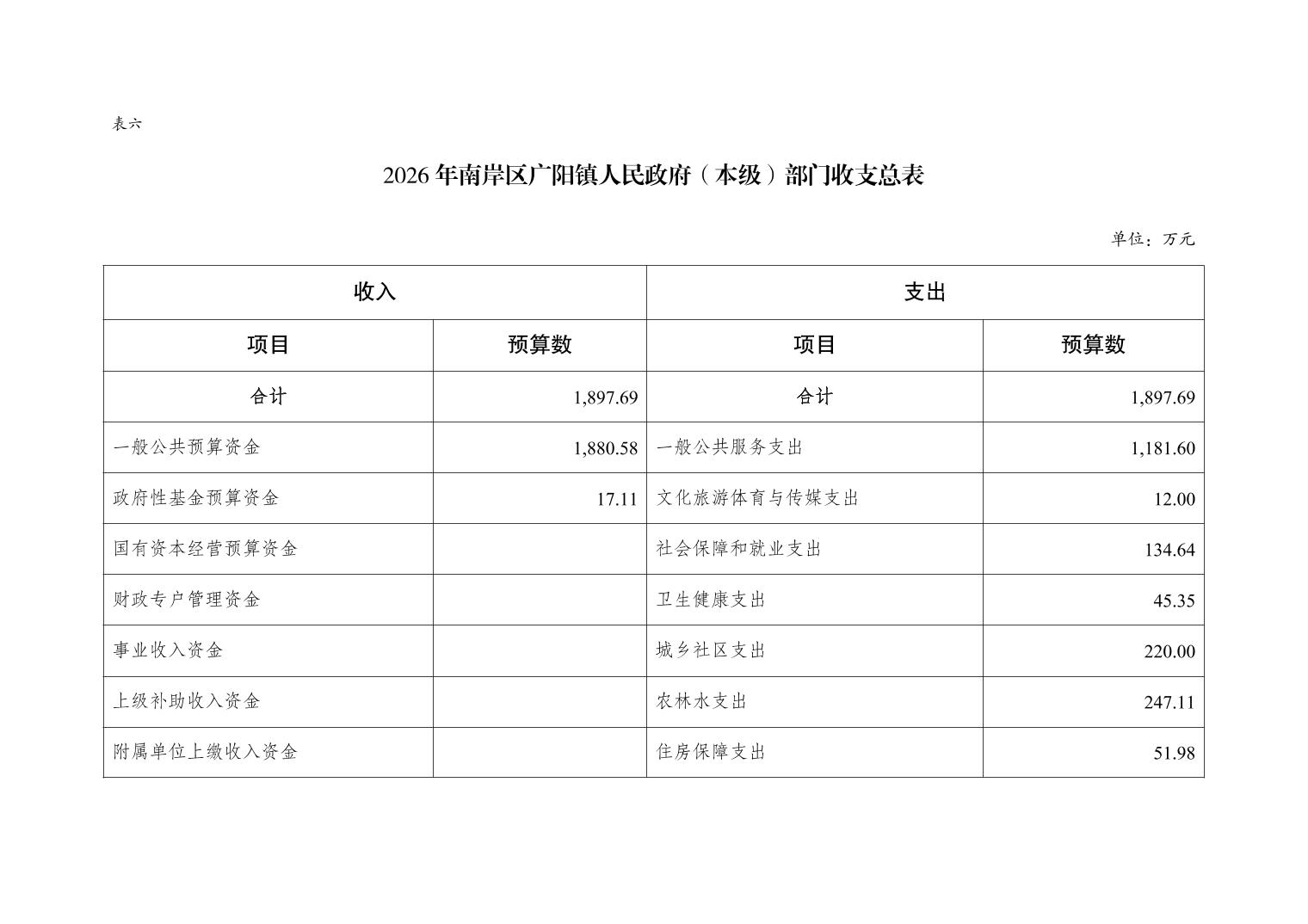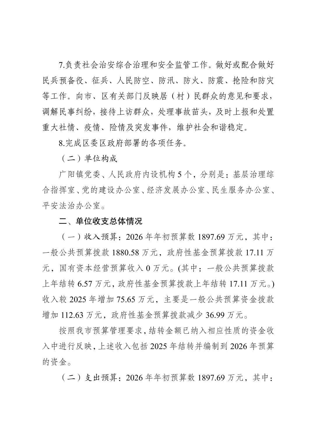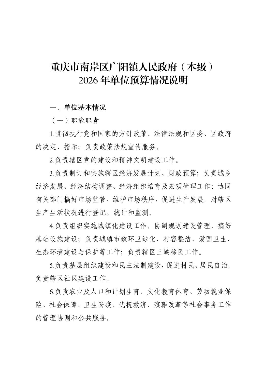 重庆市南岸区广阳镇人民政府(本级)2026年单位预算情况说明