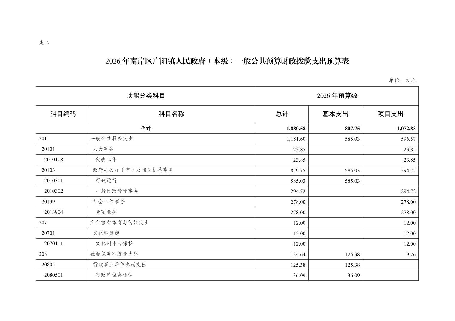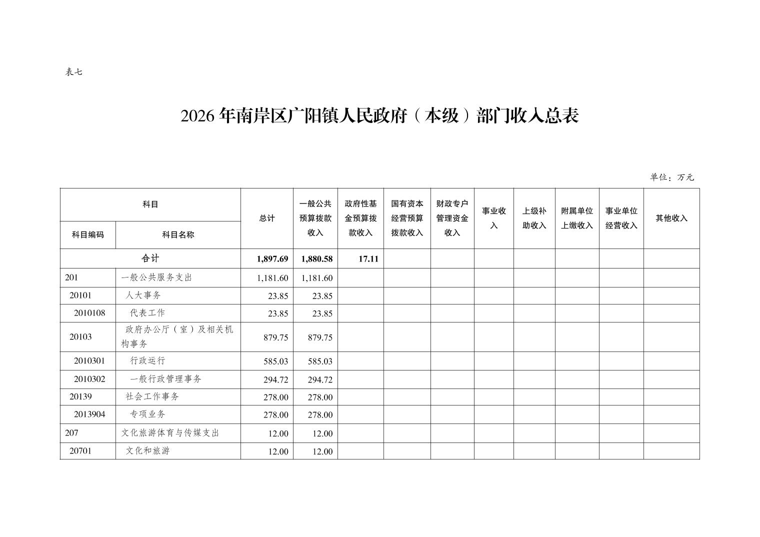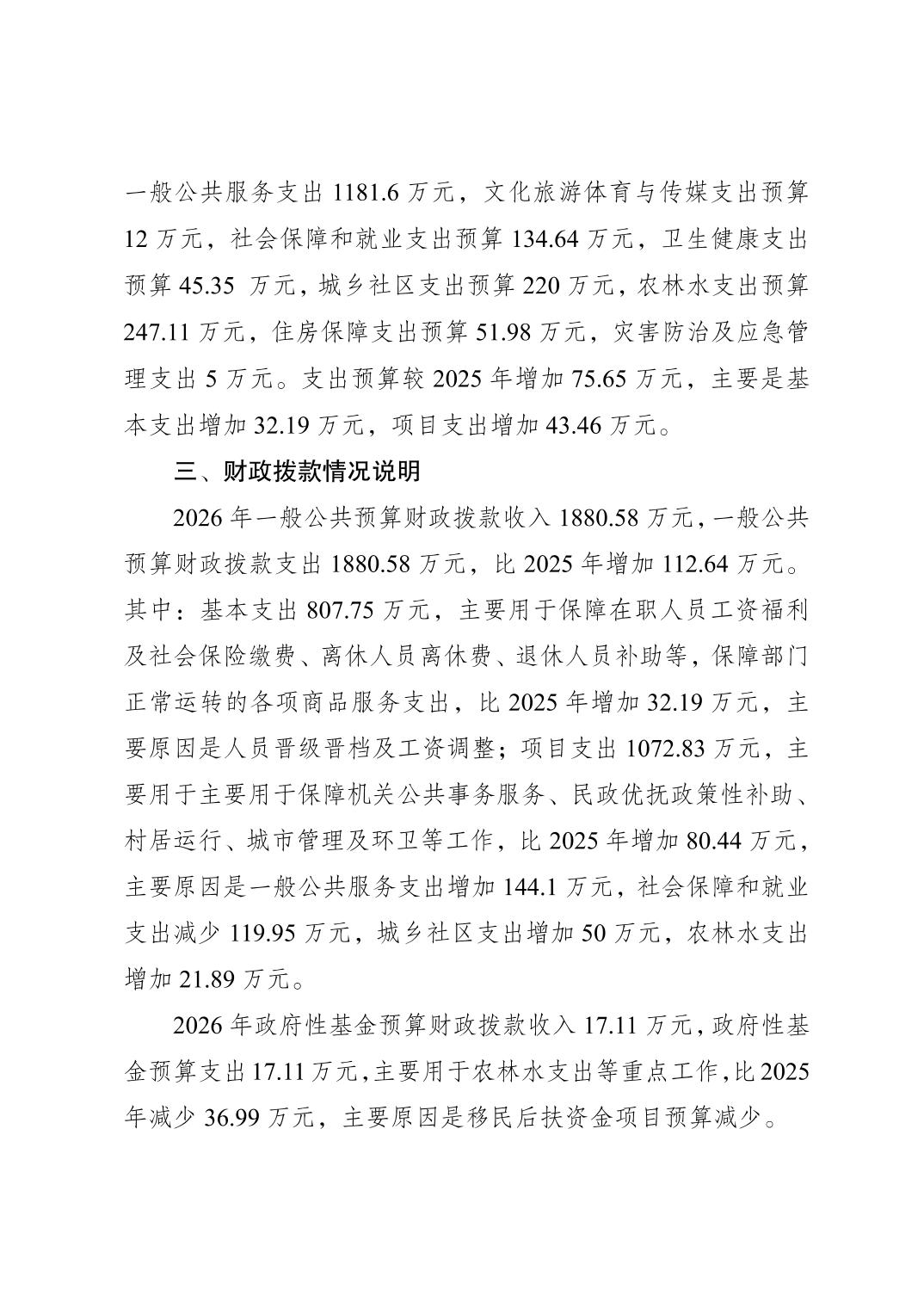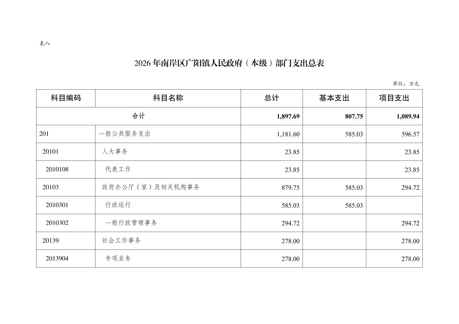 重庆市南岸区广阳镇人民政府(本级)2026年单位预算情况说明