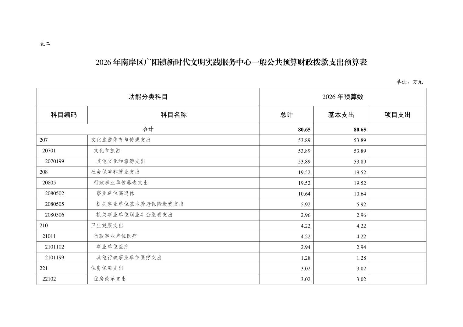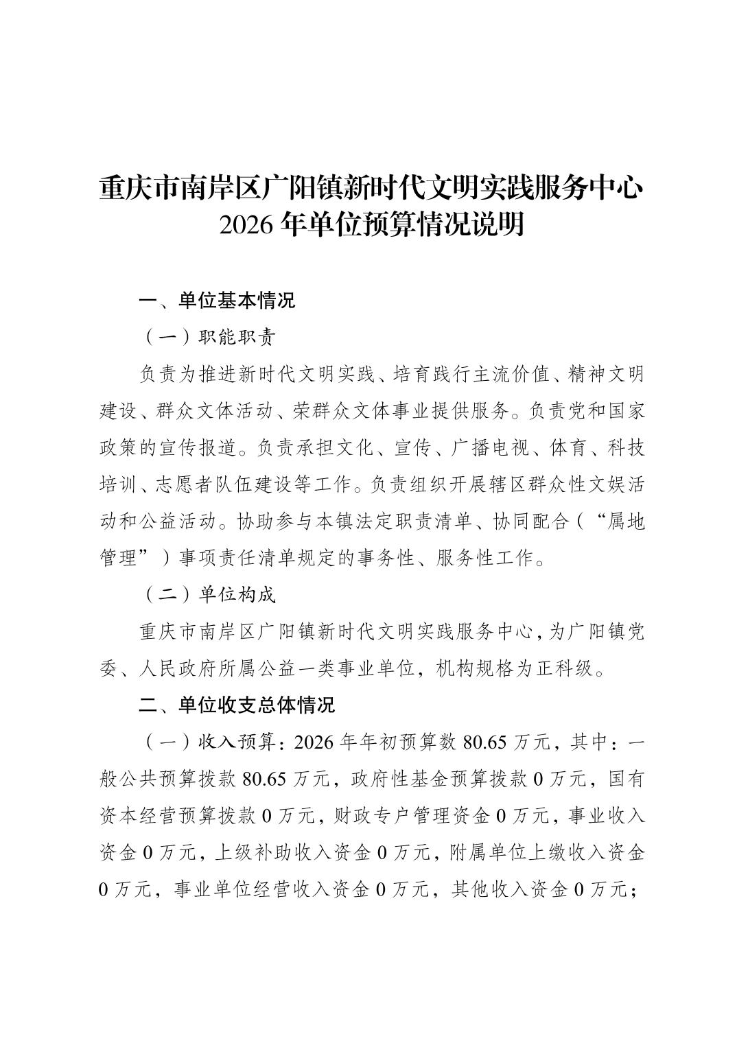重庆市南岸区广阳镇新时代文明实践服务中心2026年单位预算情况说明