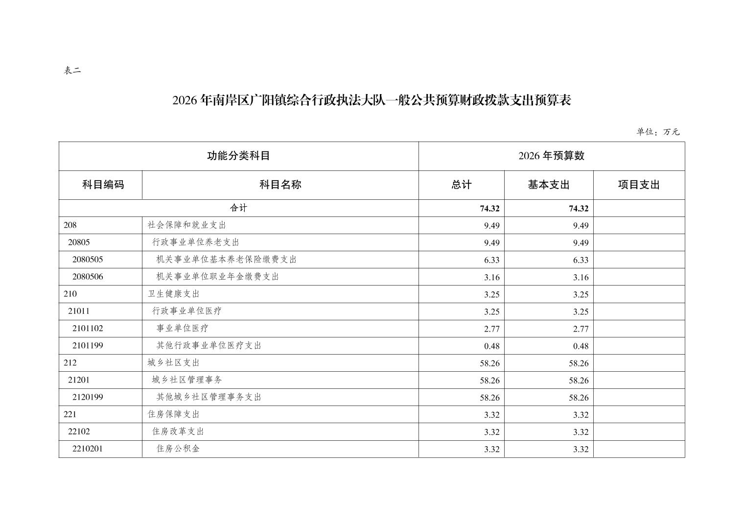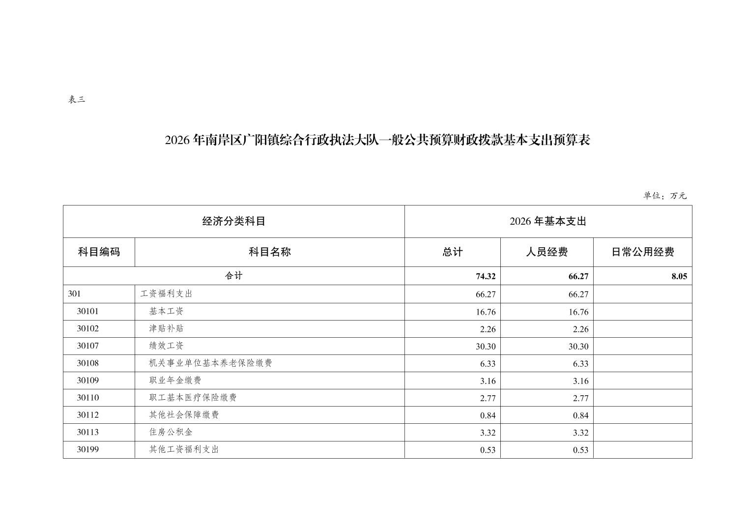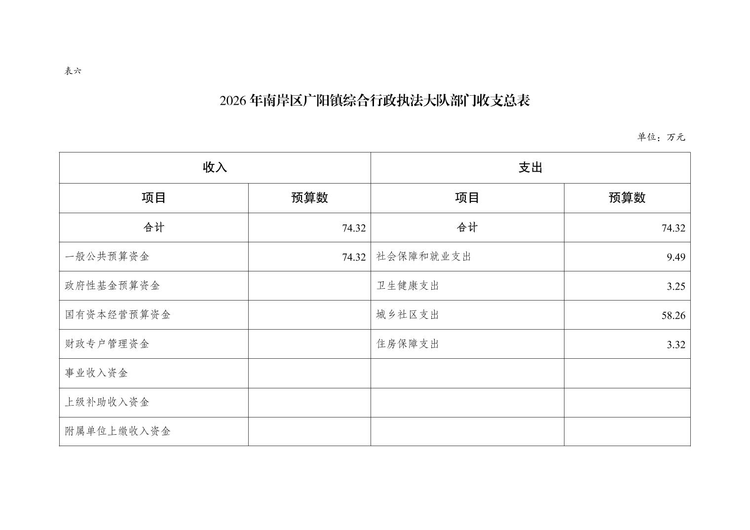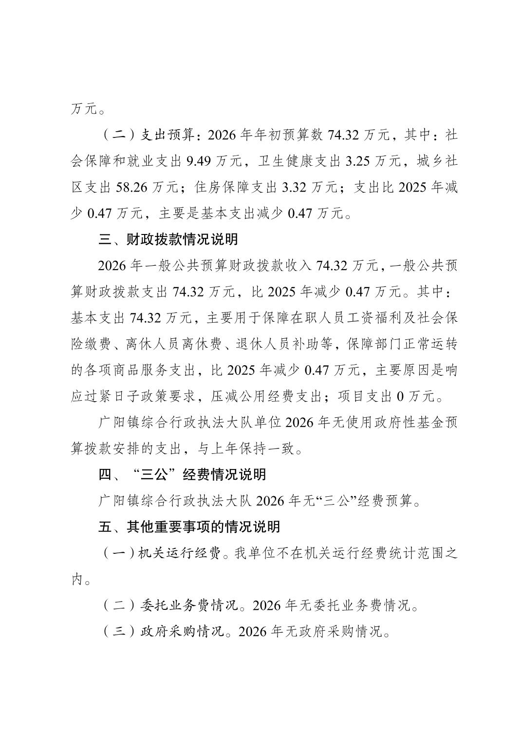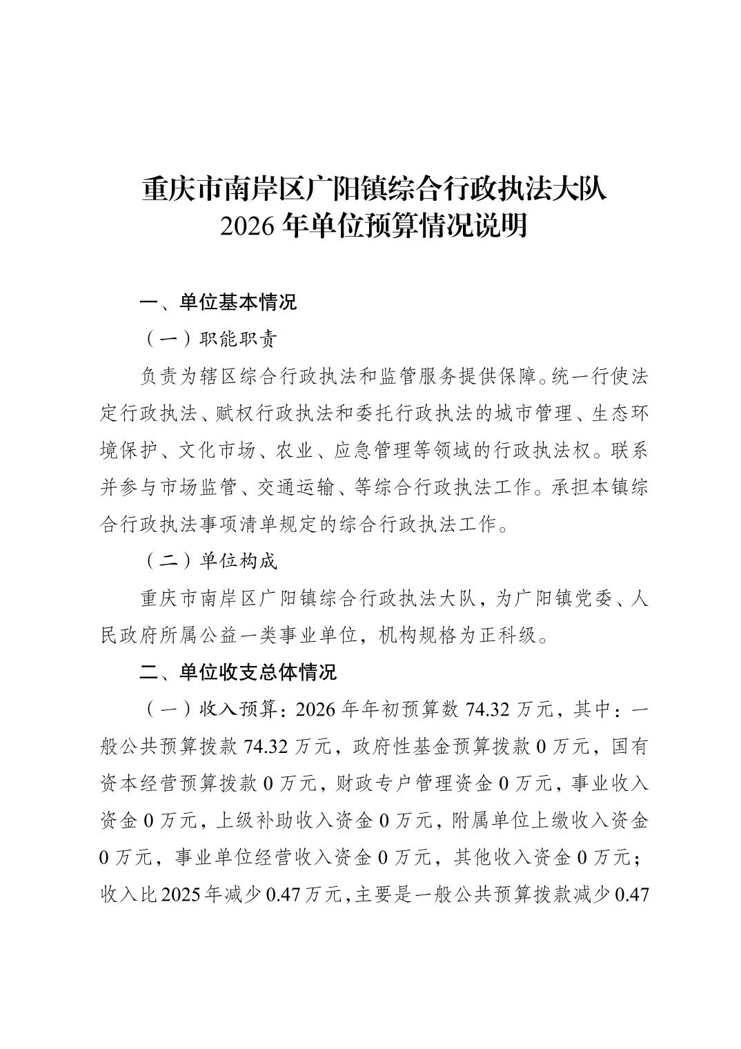 重庆市南岸区广阳镇综合行政执法大队2026年单位预算情况说明