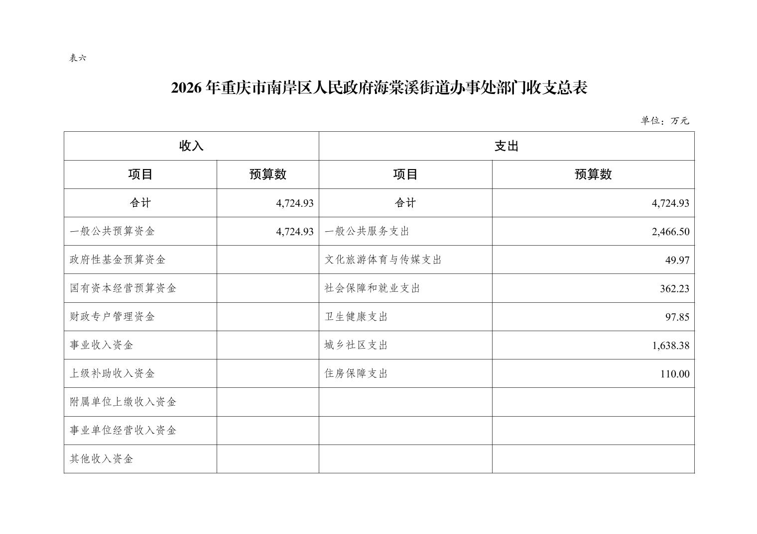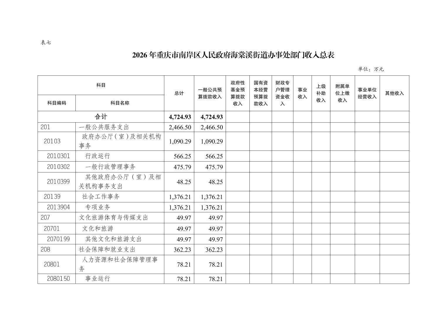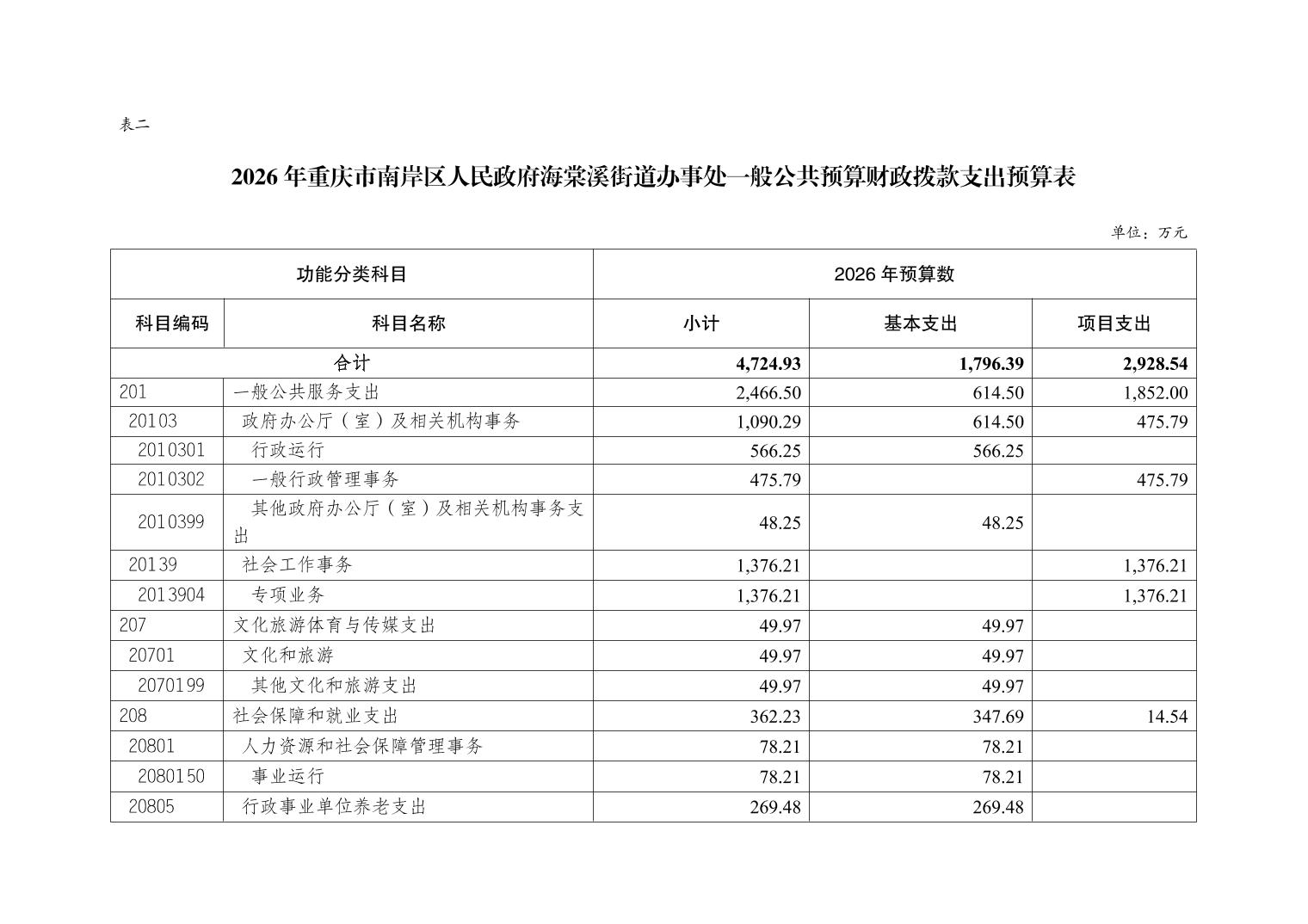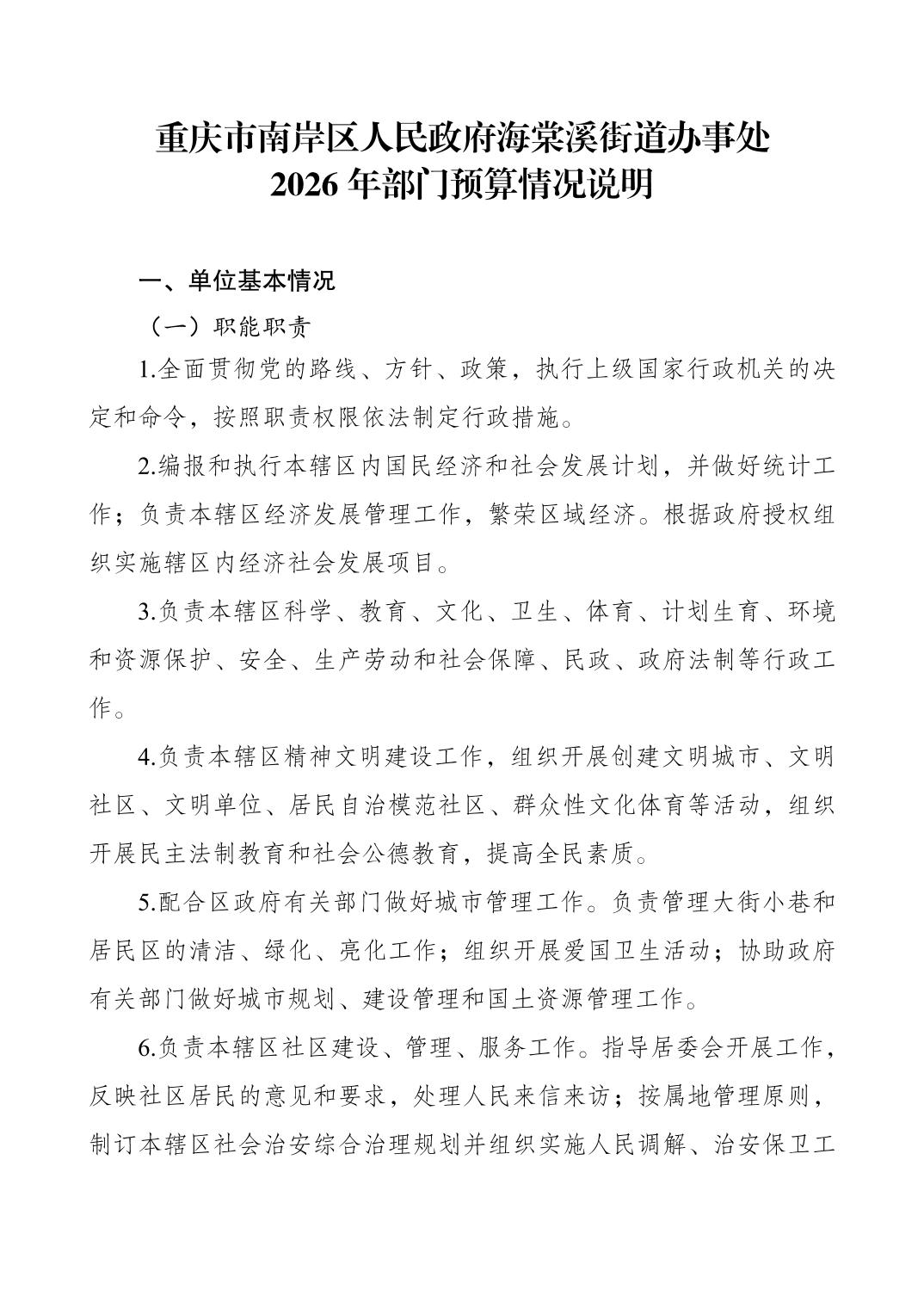 重庆市南岸区人民政府海棠溪街道办事处2026年部门预算情况说明