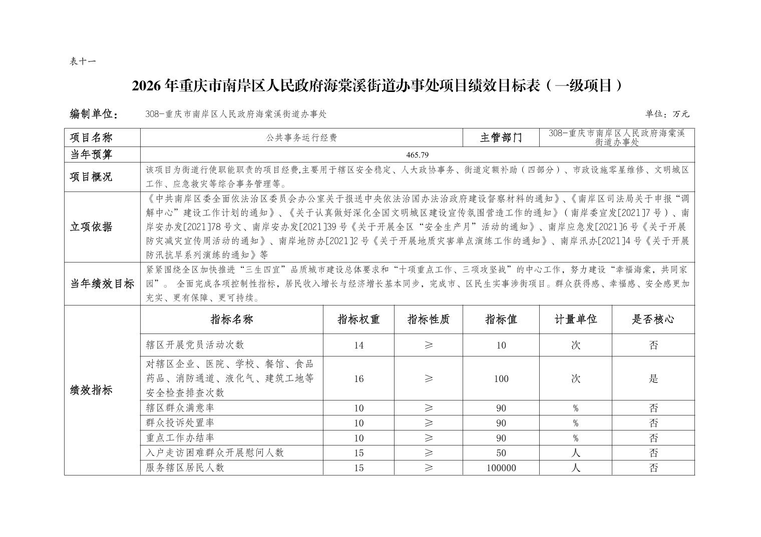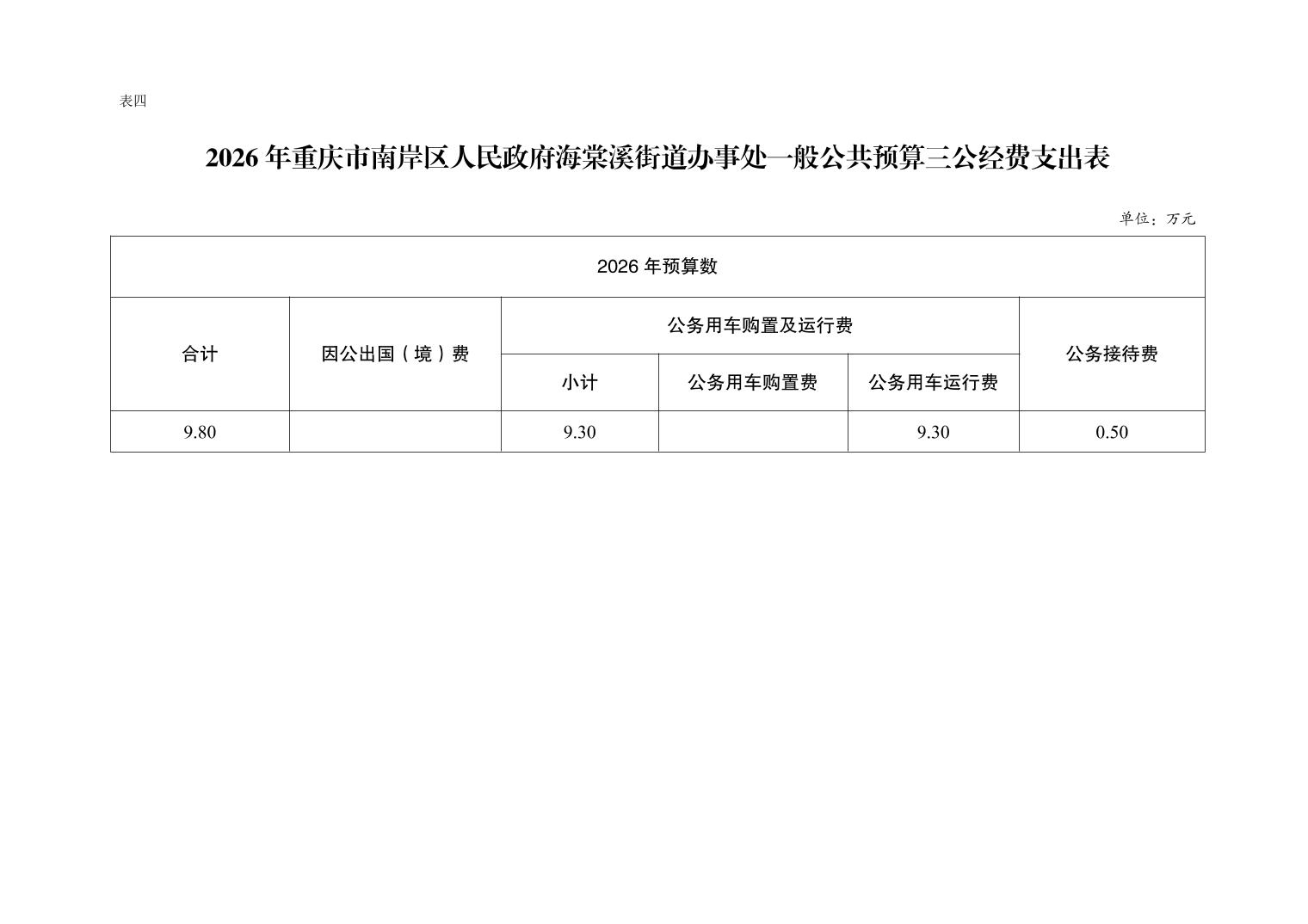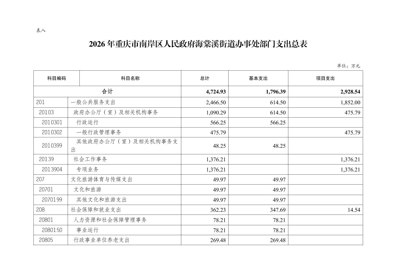 重庆市南岸区人民政府海棠溪街道办事处2026年部门预算情况说明